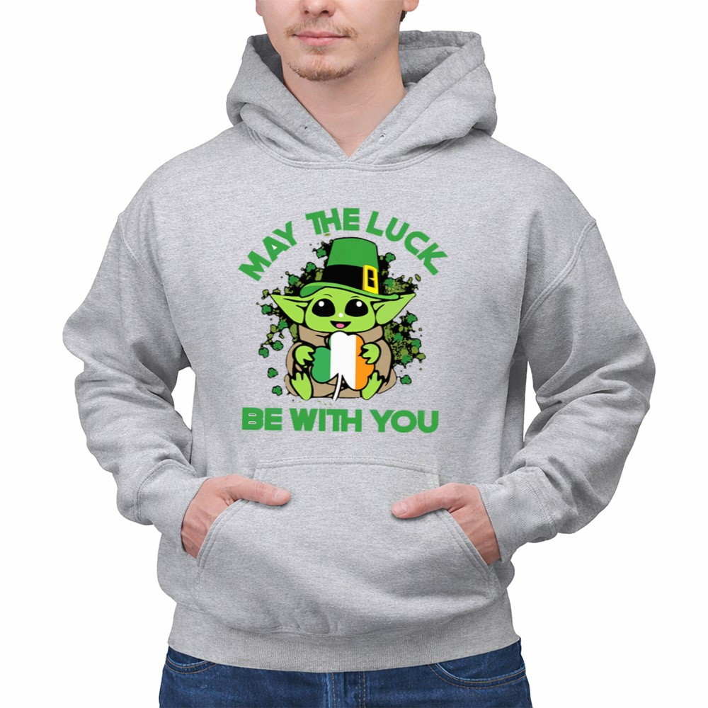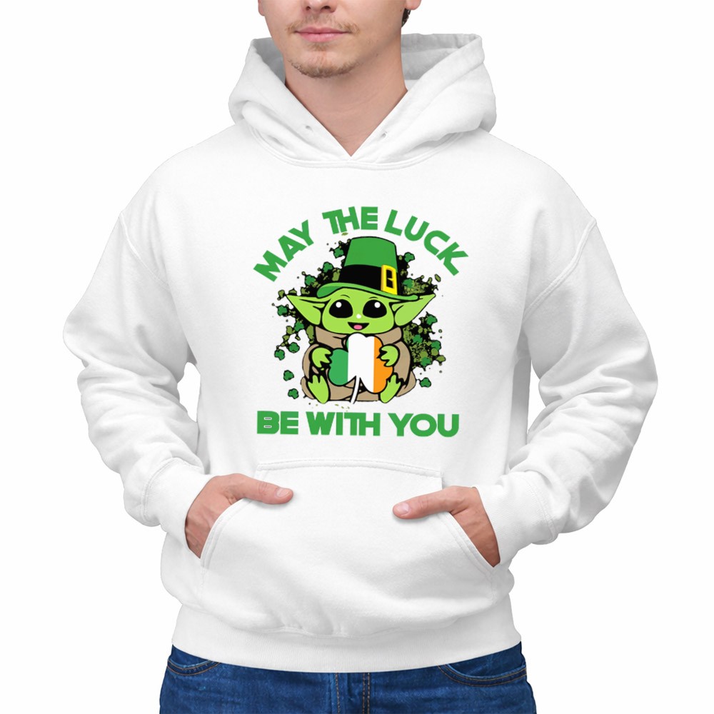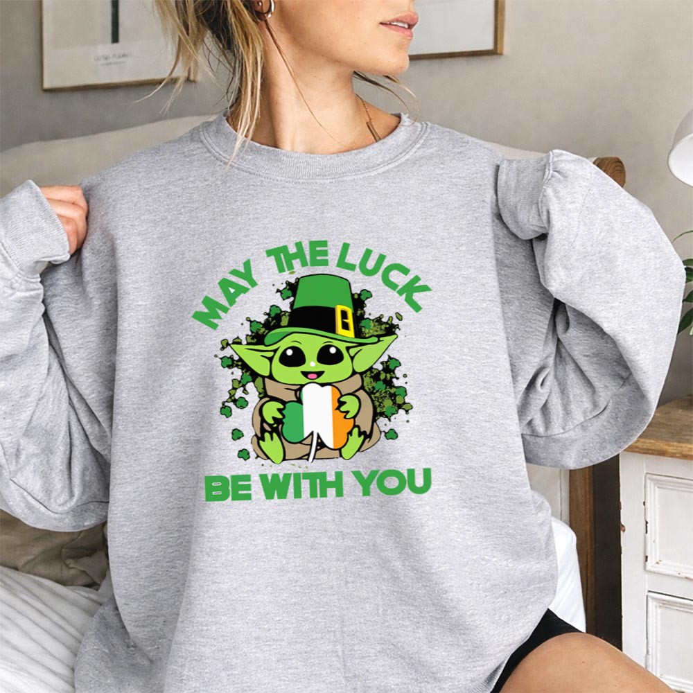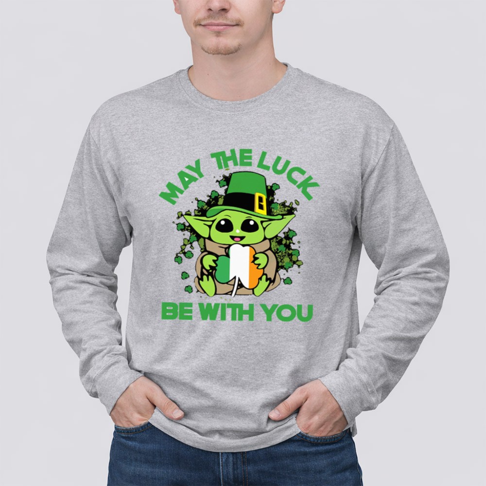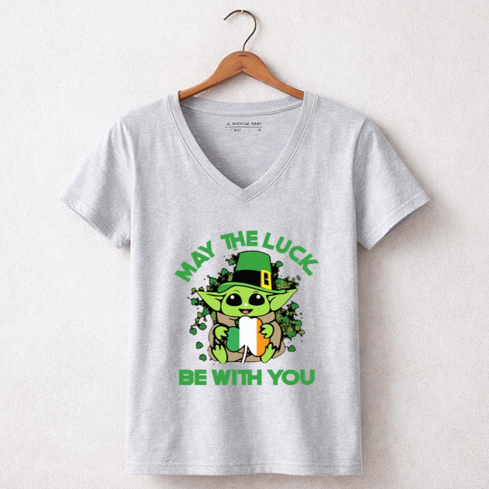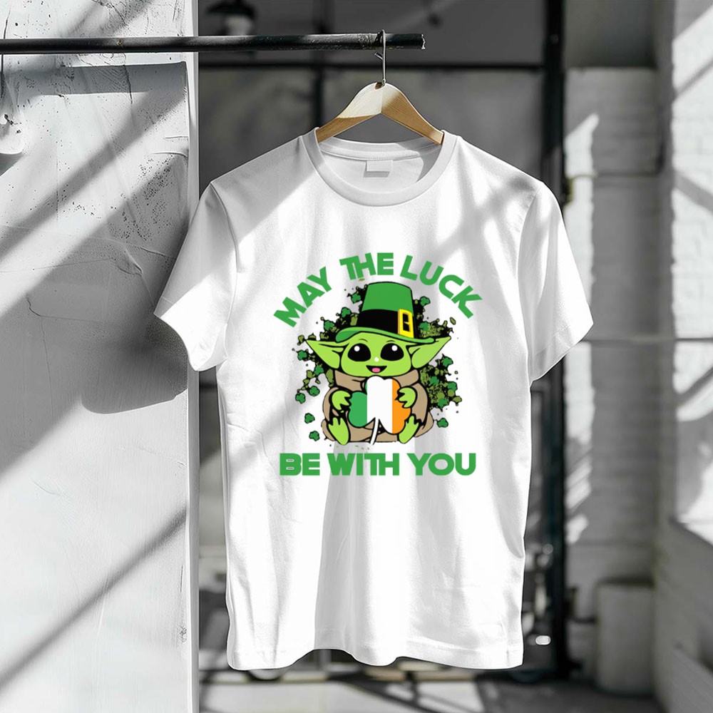 St. Patrick's Day t-shirt, Yoda luck design, Star Wars fan apparel, festive green shirt, leprechaun theme, shamrock graphics, fun holiday gift, pop culture mashup