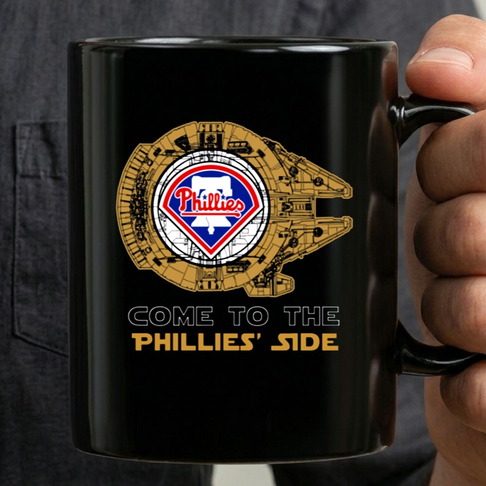 This design invites fans to ‘Come to the Phillies’ Side,’ blending the thrill of baseball with the epic saga of Star Wars. It captures the spirit of unity and pride among Philadelphia Phillies supporters, making it a tribute that resonates deeply with those who cherish their team. The playful mashup reflects a shared love for both the game and the galaxy far, far away.