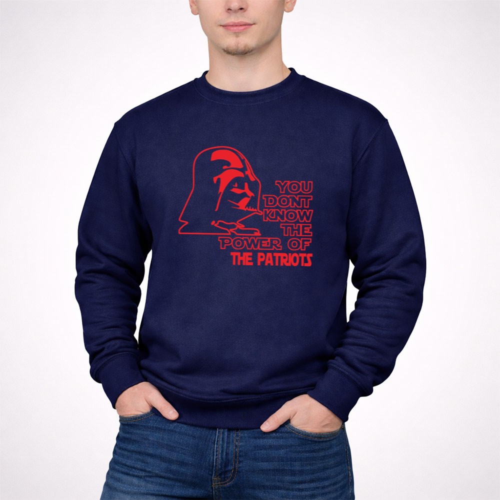 This design captures the essence of fandom, merging the iconic Darth Vader with the New England Patriots. The quote, ‘YOU DONT KNOW THE POWER OF THE PATRIOTS,’ reflects a deep-seated pride that resonates with sports enthusiasts and Star Wars fans alike. Its a tribute to the strength, legacy, and bold spirit that both the Patriots and the Star Wars saga embody.