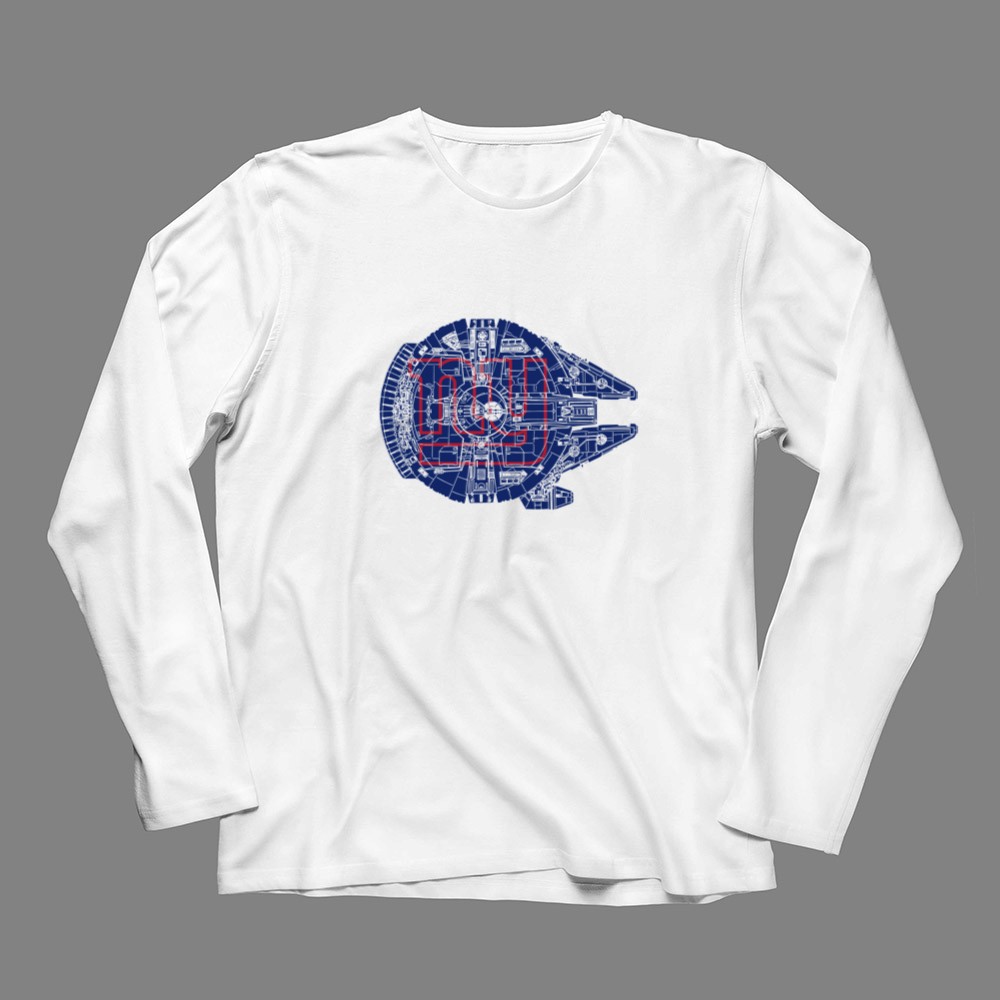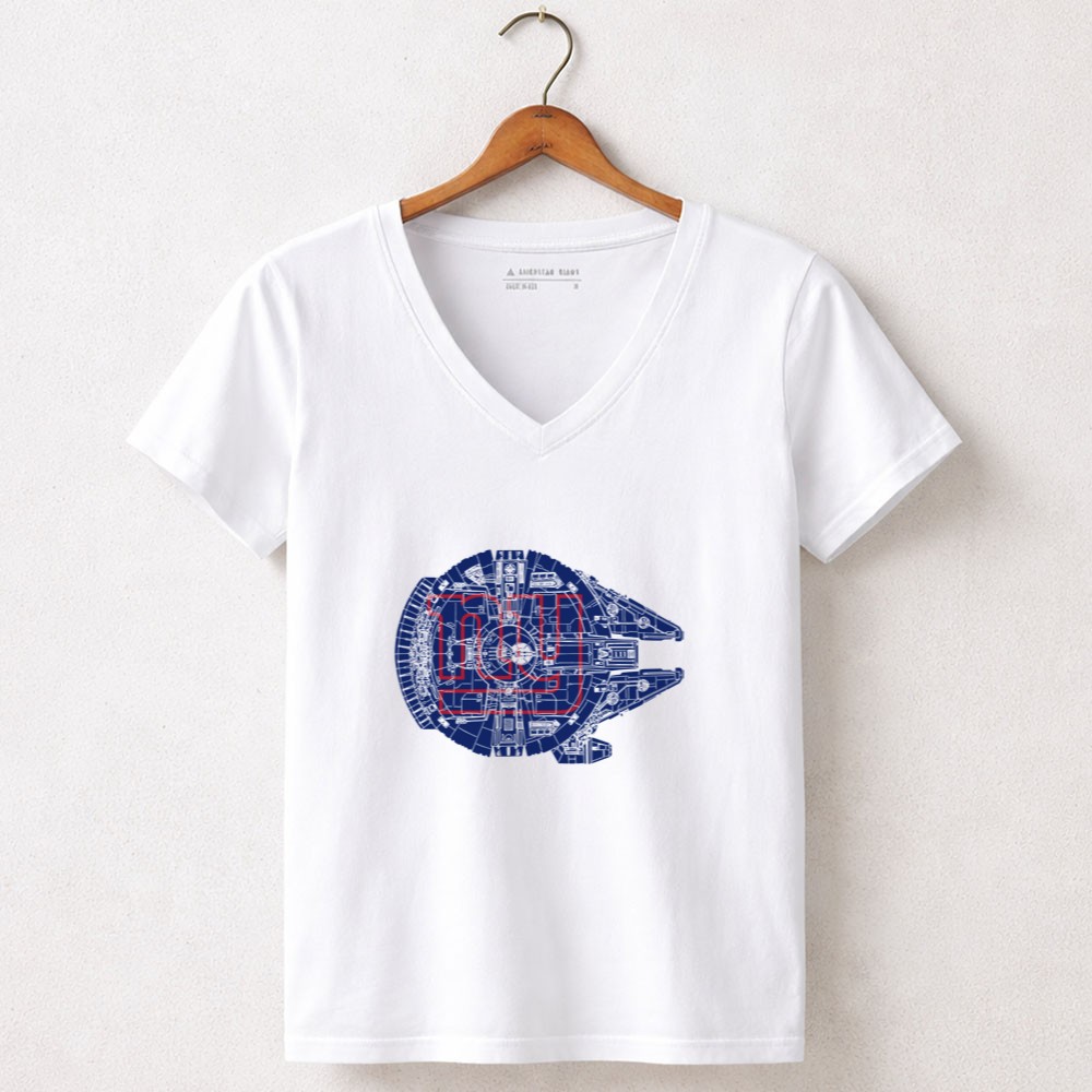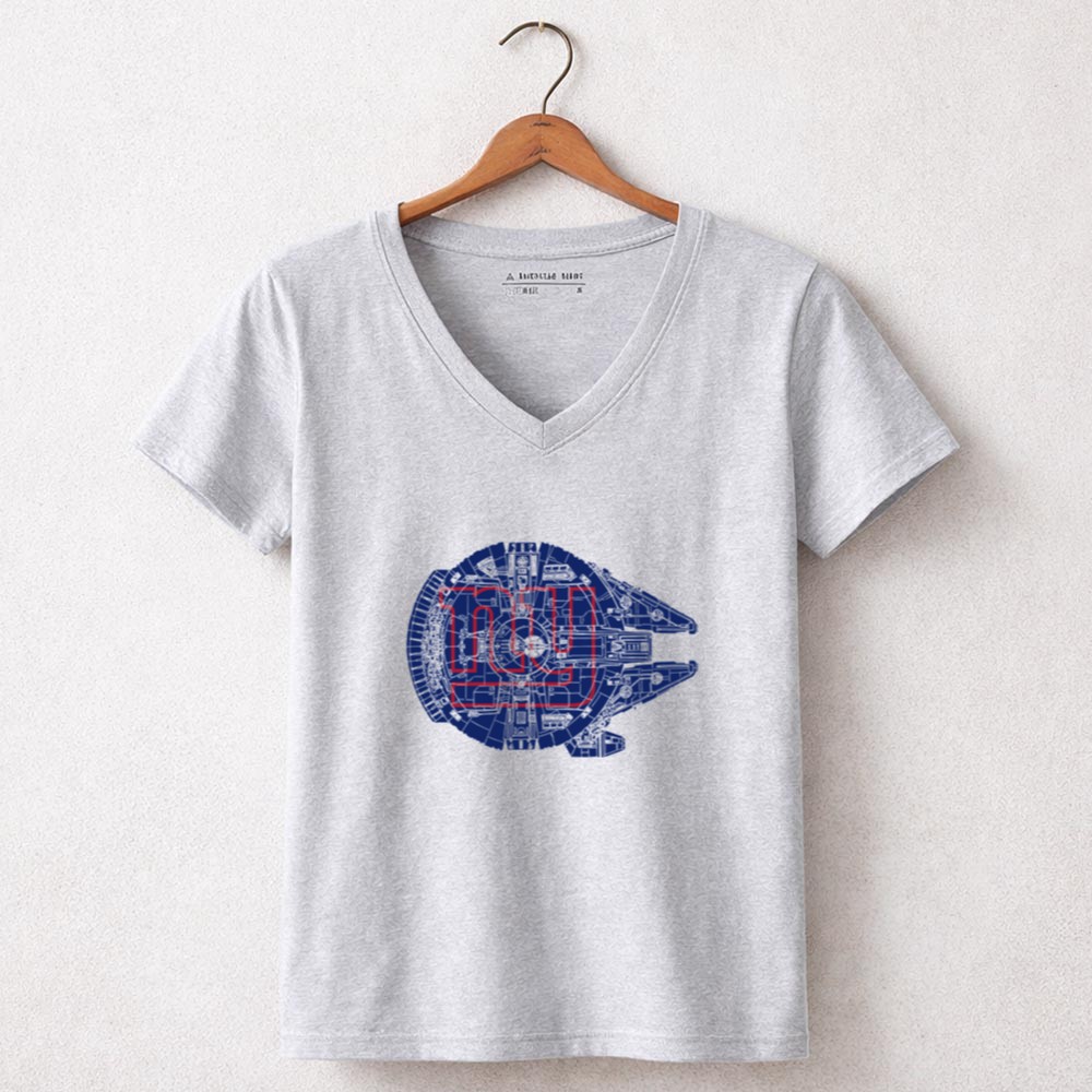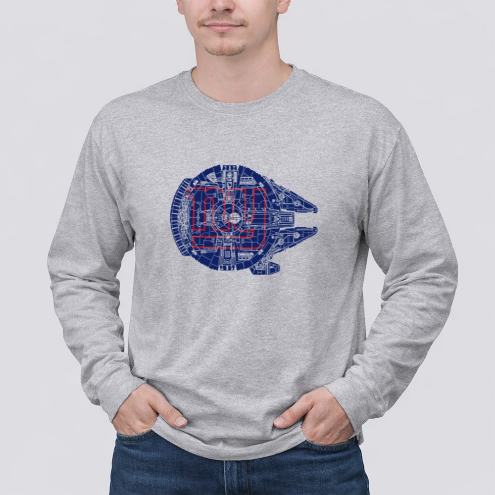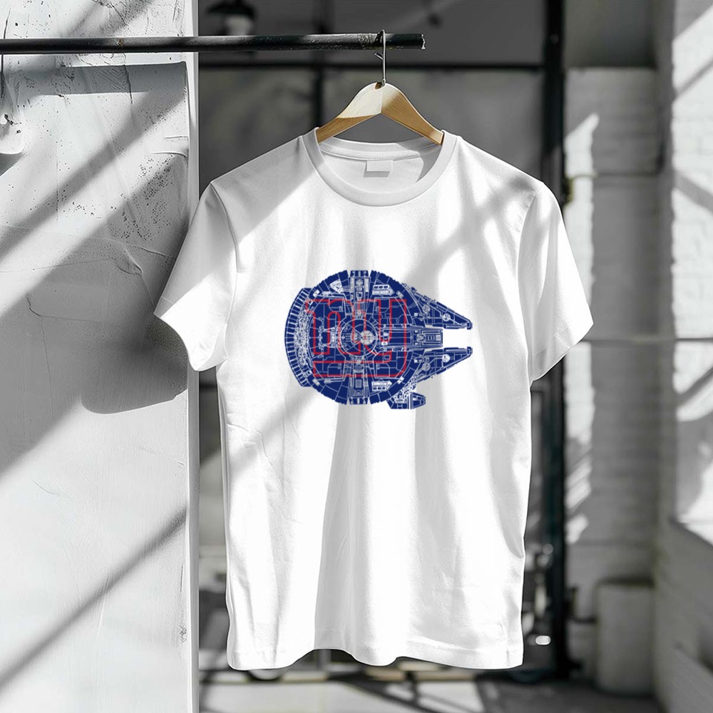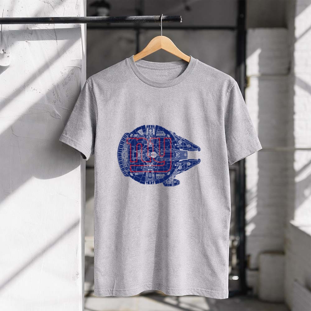 New York Giants fandom, Star Wars crossover apparel, sports sci-fi mashup, premium graphic t-shirt, Giants pride, Millennium Falcon design, pop culture sportswear, NYC team spirit