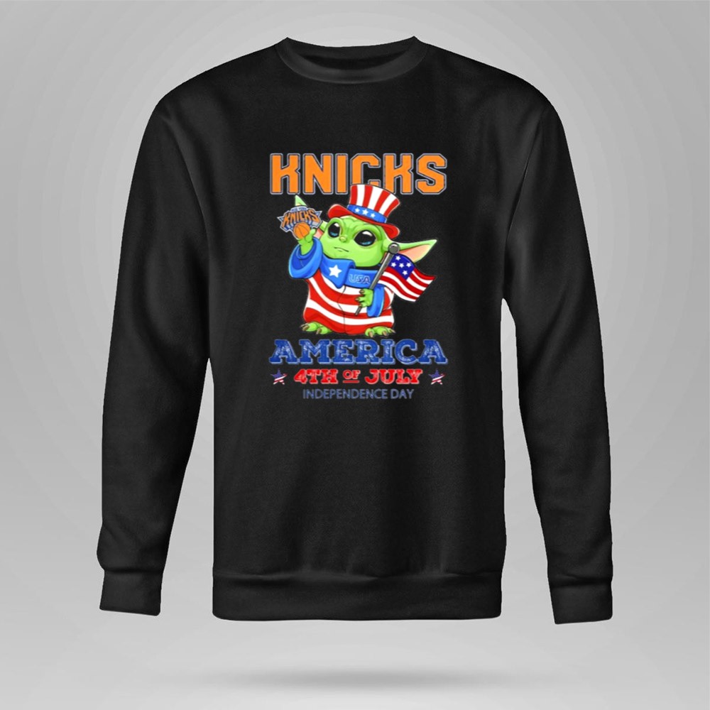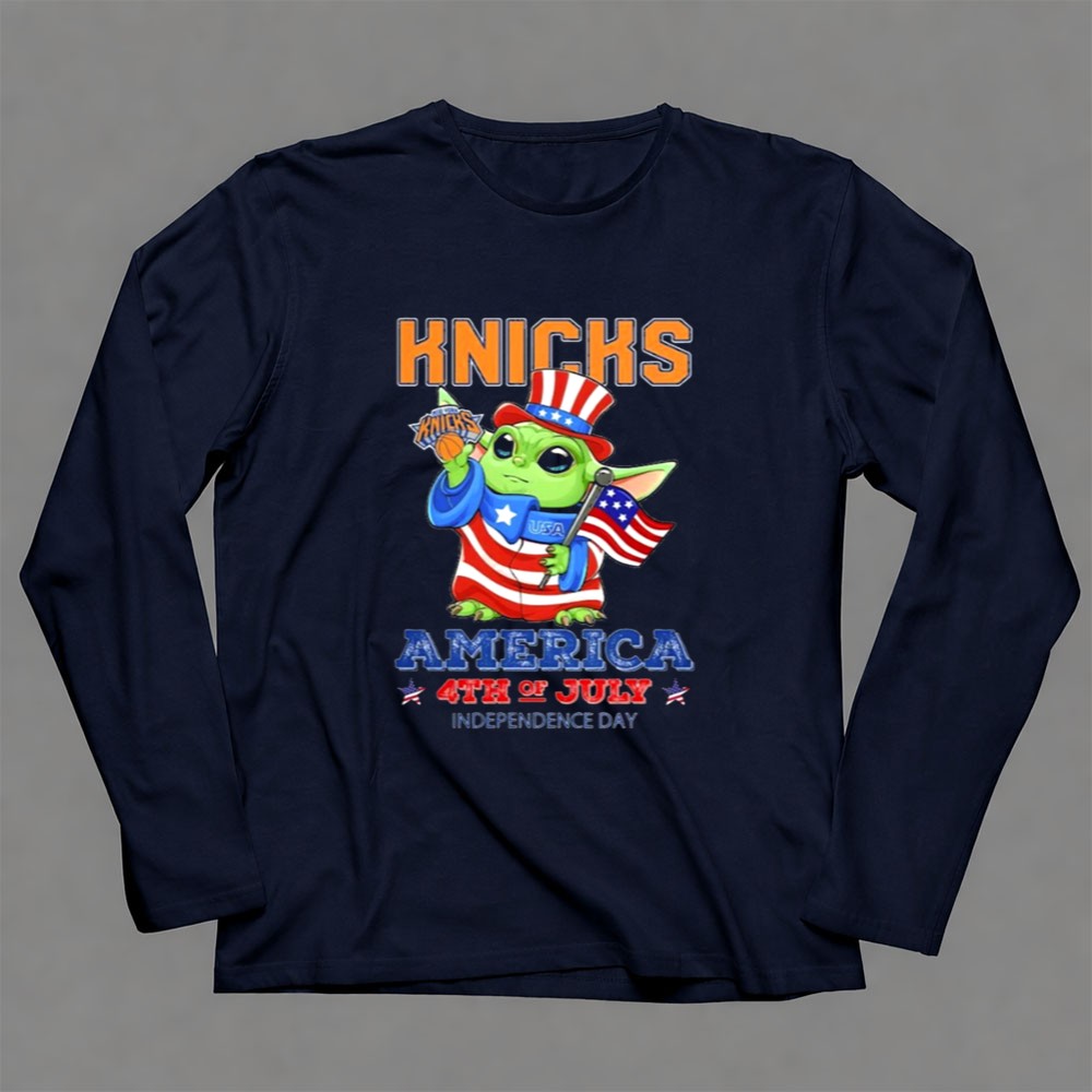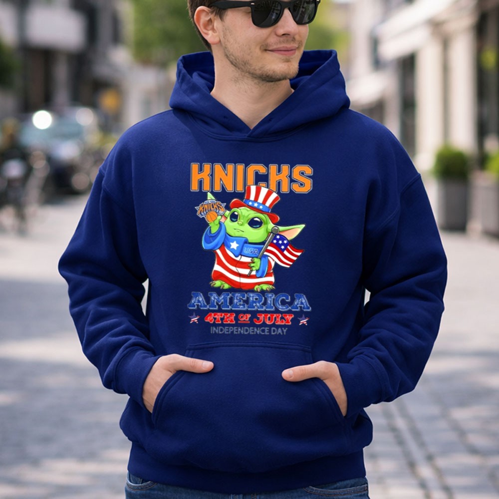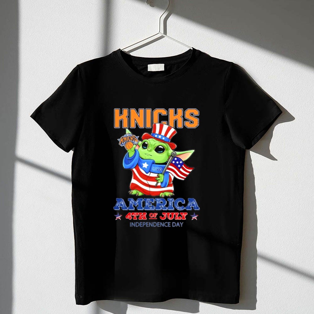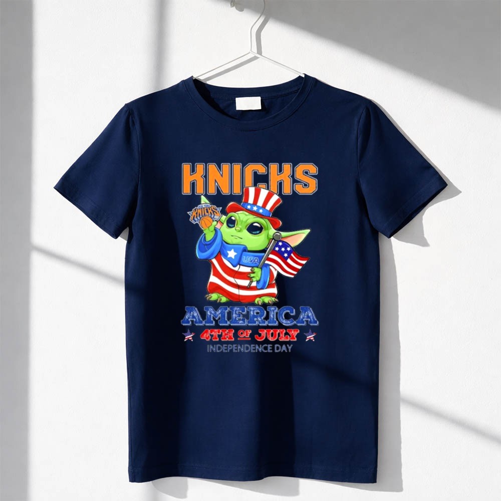 This design combines the iconic New York Knicks imagery with Baby Yoda dressed in patriotic flair, creating a joyful tribute to both American independence and beloved pop culture. Embracing the essence of unity and celebration, it invites families to share moments of joy while showcasing their sports pride on a day filled with fireworks and fun.