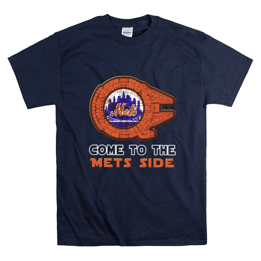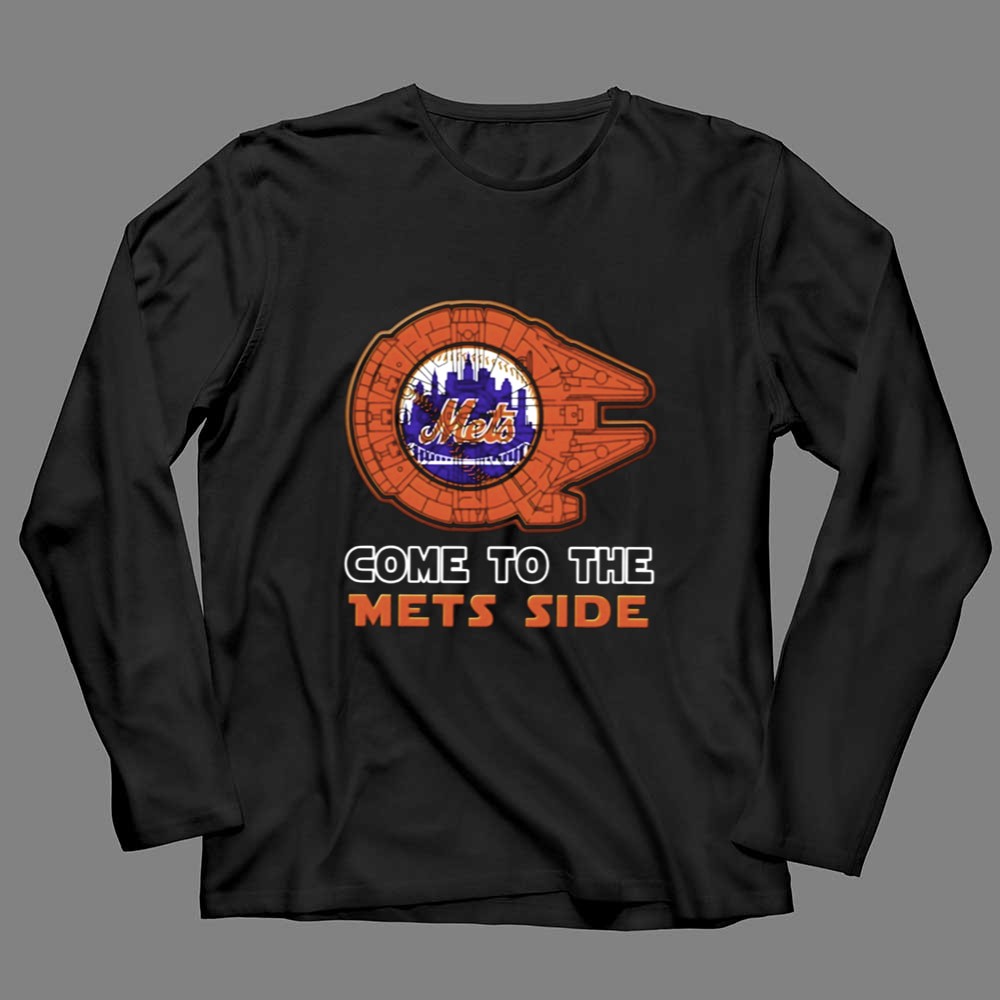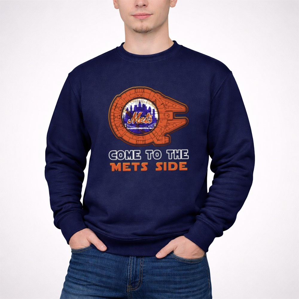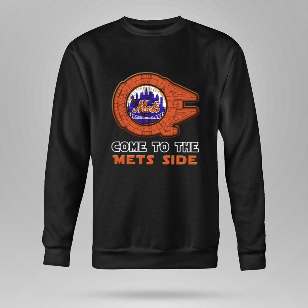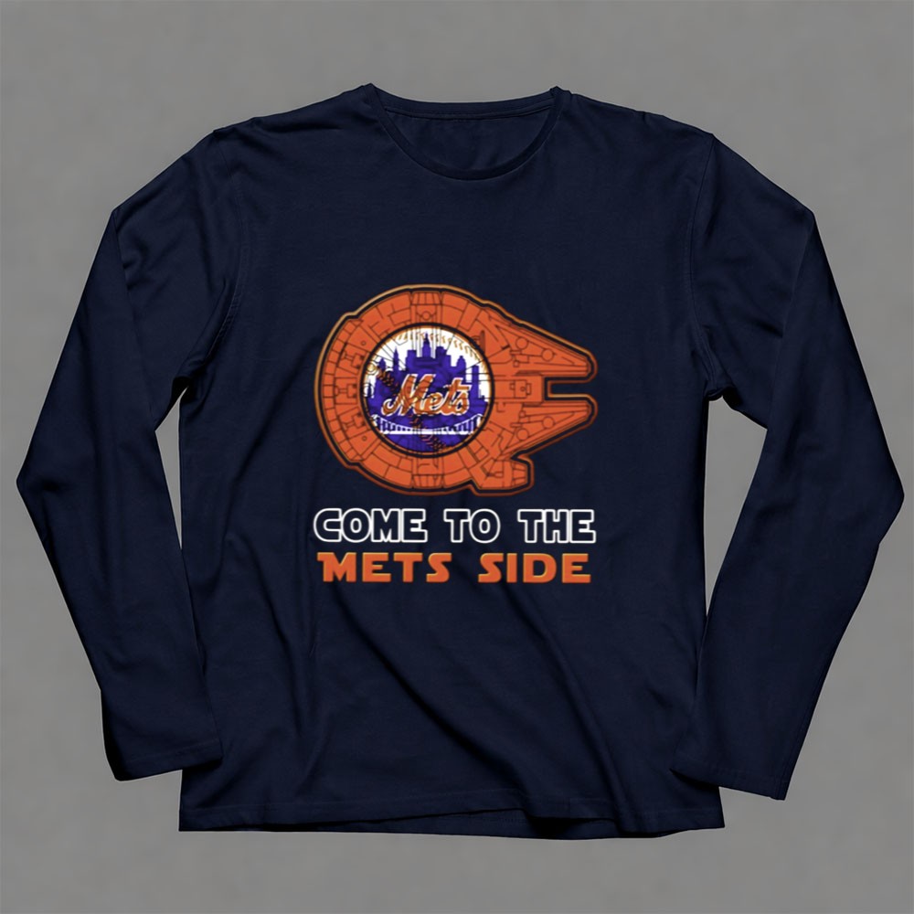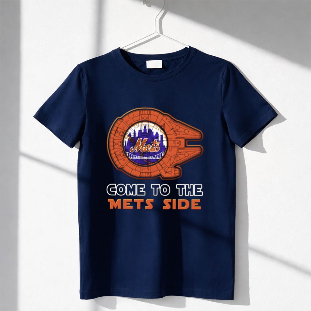 The ‘Come to the Mets Side’ design captures the essence of New York City and its devoted baseball culture. Featuring the iconic Mets logo against a backdrop of the New York skyline, this playful tribute evokes a sense of unity and pride among fans, celebrating the cherished memories made at Shea Stadium. It reflects the spirit of urban streetwear, inviting enthusiasts to wear their love for the Mets boldly.