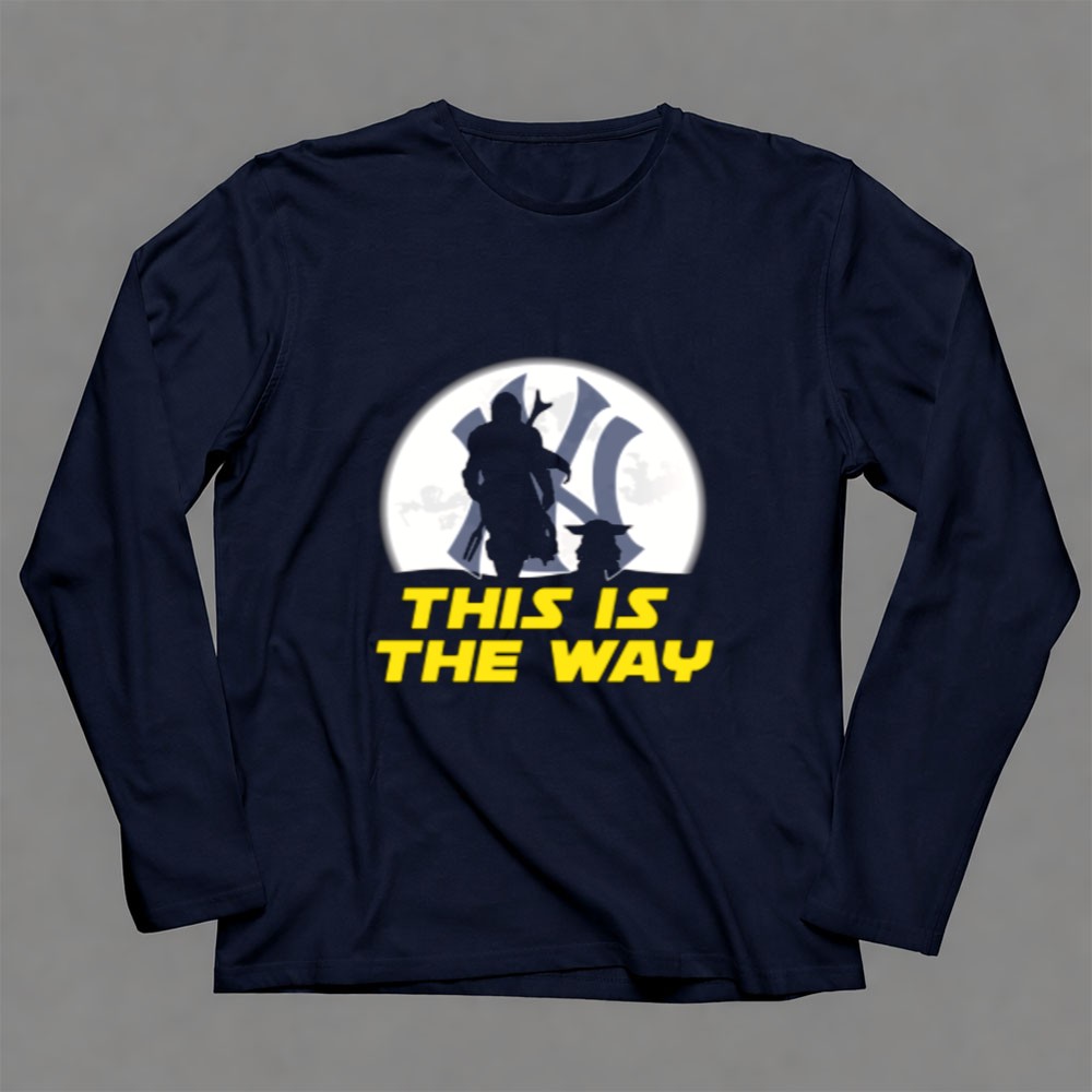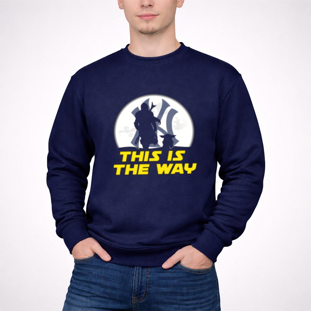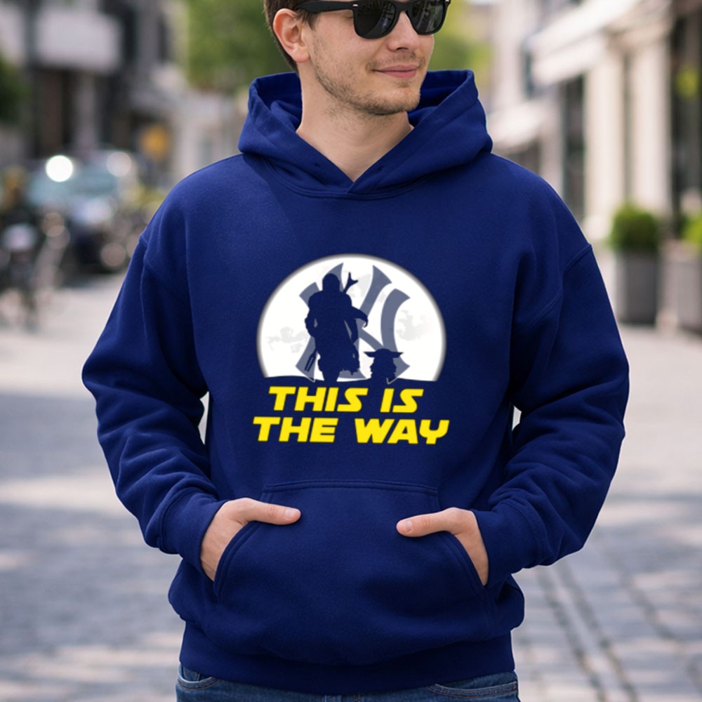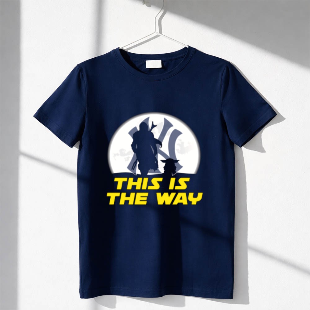 This design encapsulates the spirit of two beloved worlds, intertwining the rich legacy of the New York Yankees with the timeless wisdom of Yoda and the adventurous essence of the Mandalorian. The phrase ‘THIS IS THE WAY’ serves as a rallying cry for fans, representing a journey that celebrates both sports and the vibrant narratives of nerd culture.