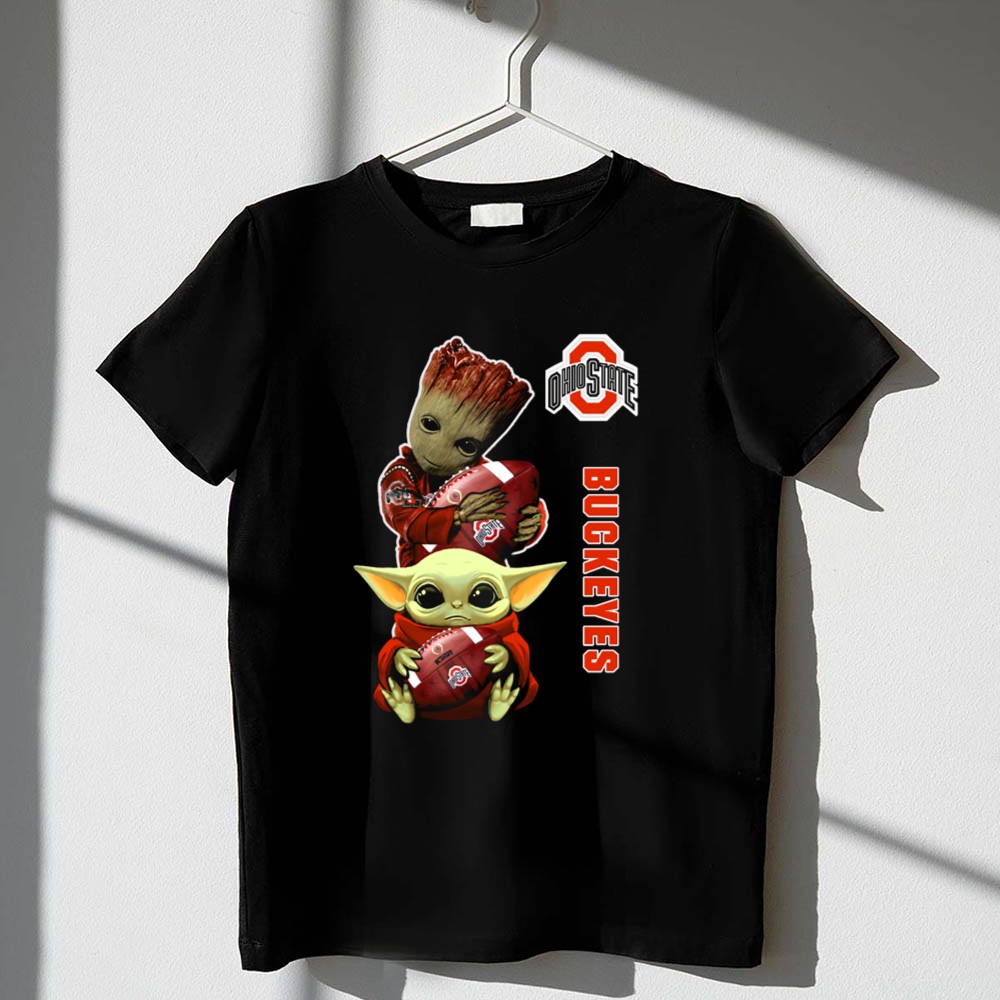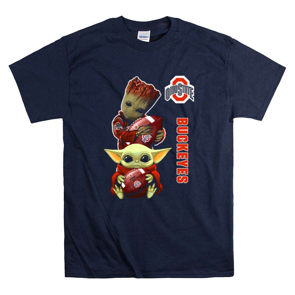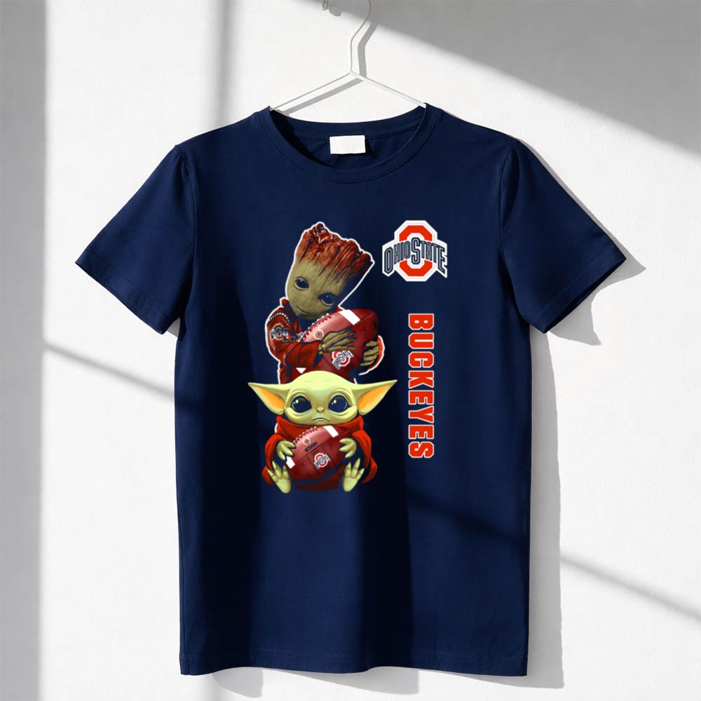 This design brings together the iconic Ohio State Buckeyes logo with the playful charm of Baby Groot and Baby Yoda, symbolizing the joy and unity of fandom. It reflects a lighthearted spirit that resonates with both young supporters and their parents, creating a fun and nostalgic connection to college football culture.