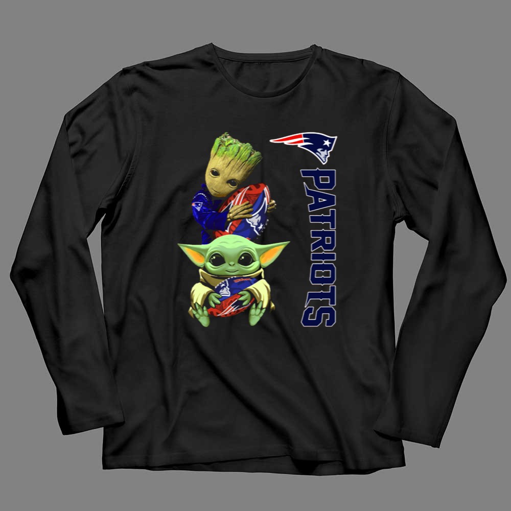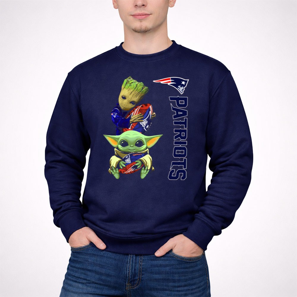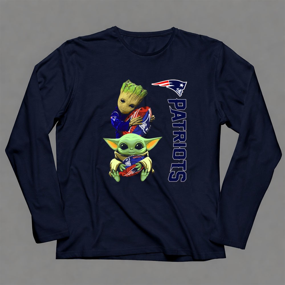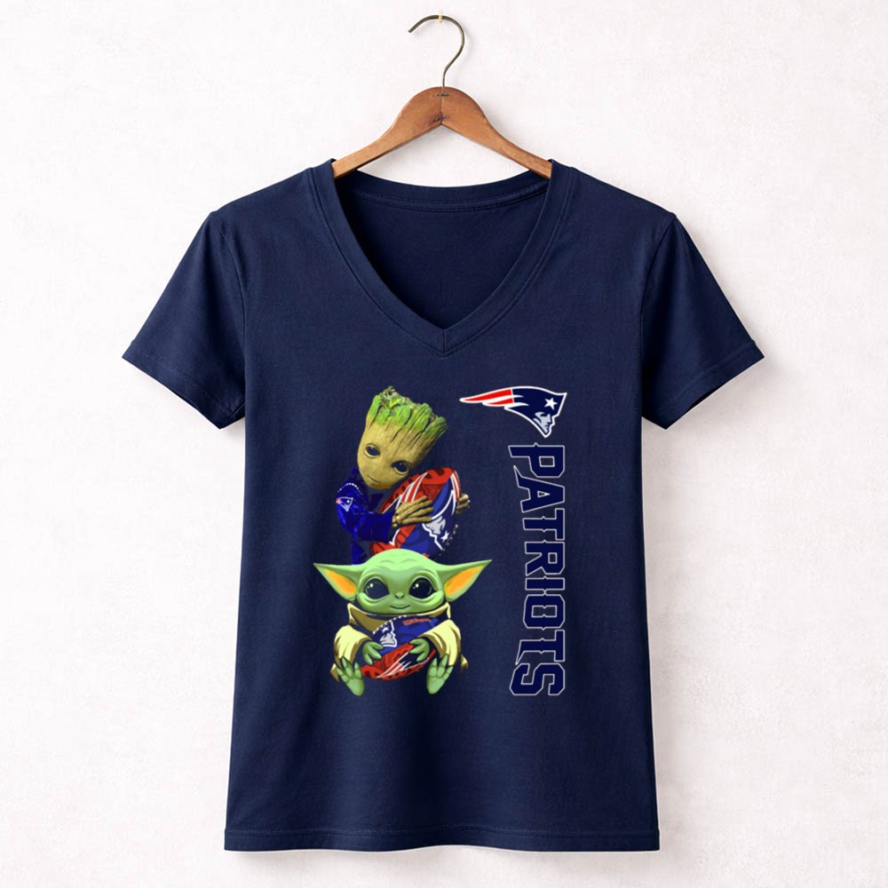 New England Patriots fandom, Groot and Baby Yoda apparel, football season fun, pop culture mashup, game day t-shirt, Boston sports pride, unique fan gear, NFL novelty shirt