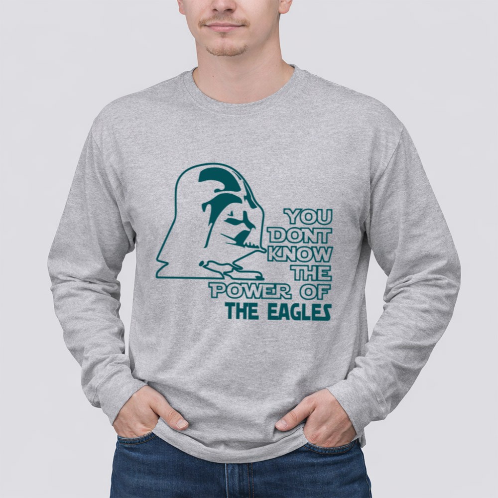 Philadelphia Eagles pride, NFL fan gear, Star Wars mashup, game day apparel, Eagles fandom, power of the Eagles, humorous sports shirt, pop culture crossover