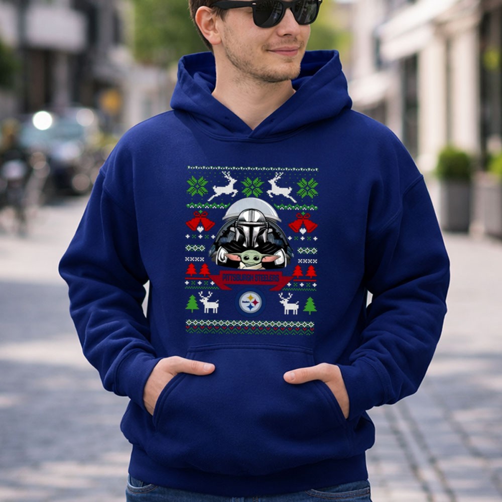 This design captures the joyous spirit of the holidays by merging the iconic imagery of Darth Vader and Baby Yoda with the pride of being a Pittsburgh Steelers fan. It’s a playful tribute that invites you to celebrate both your love for the game and the magic of the festive season, creating a delightful conversation starter at any gathering.