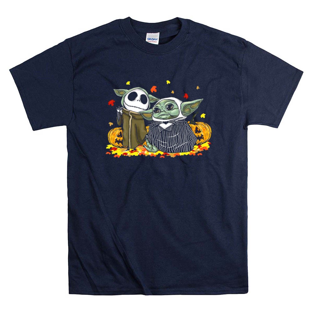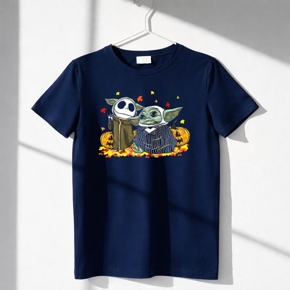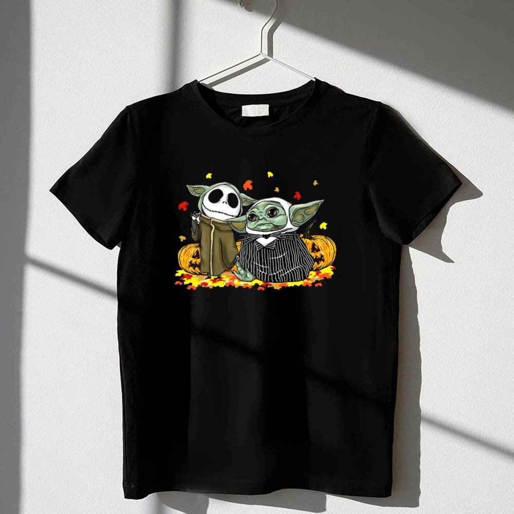 Pumpkin Halloween Baby Yoda Jack Skellington Autumn Leaves Shirt