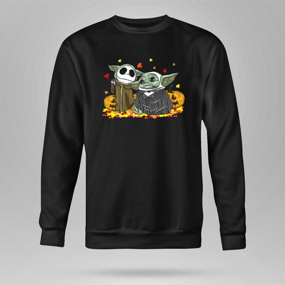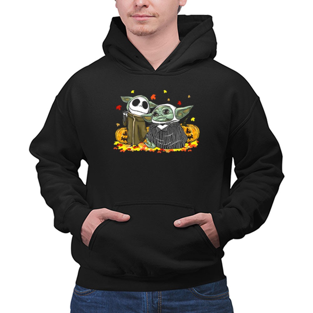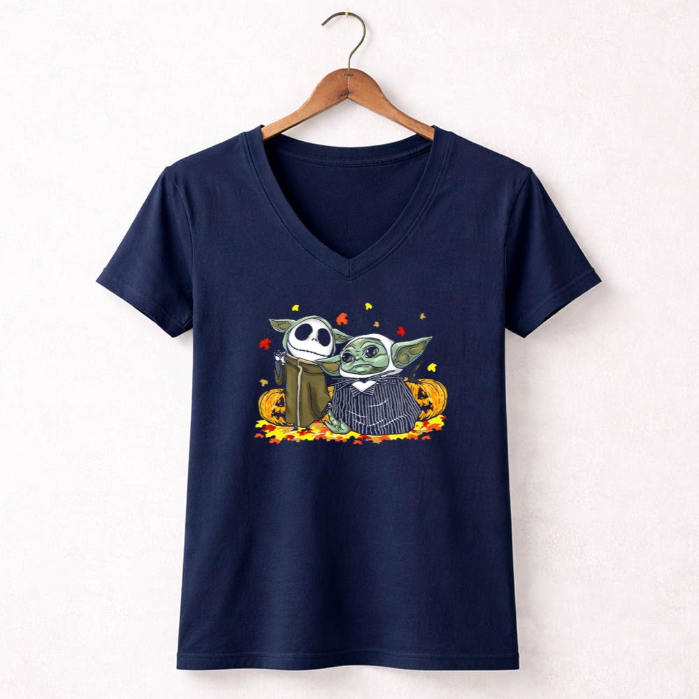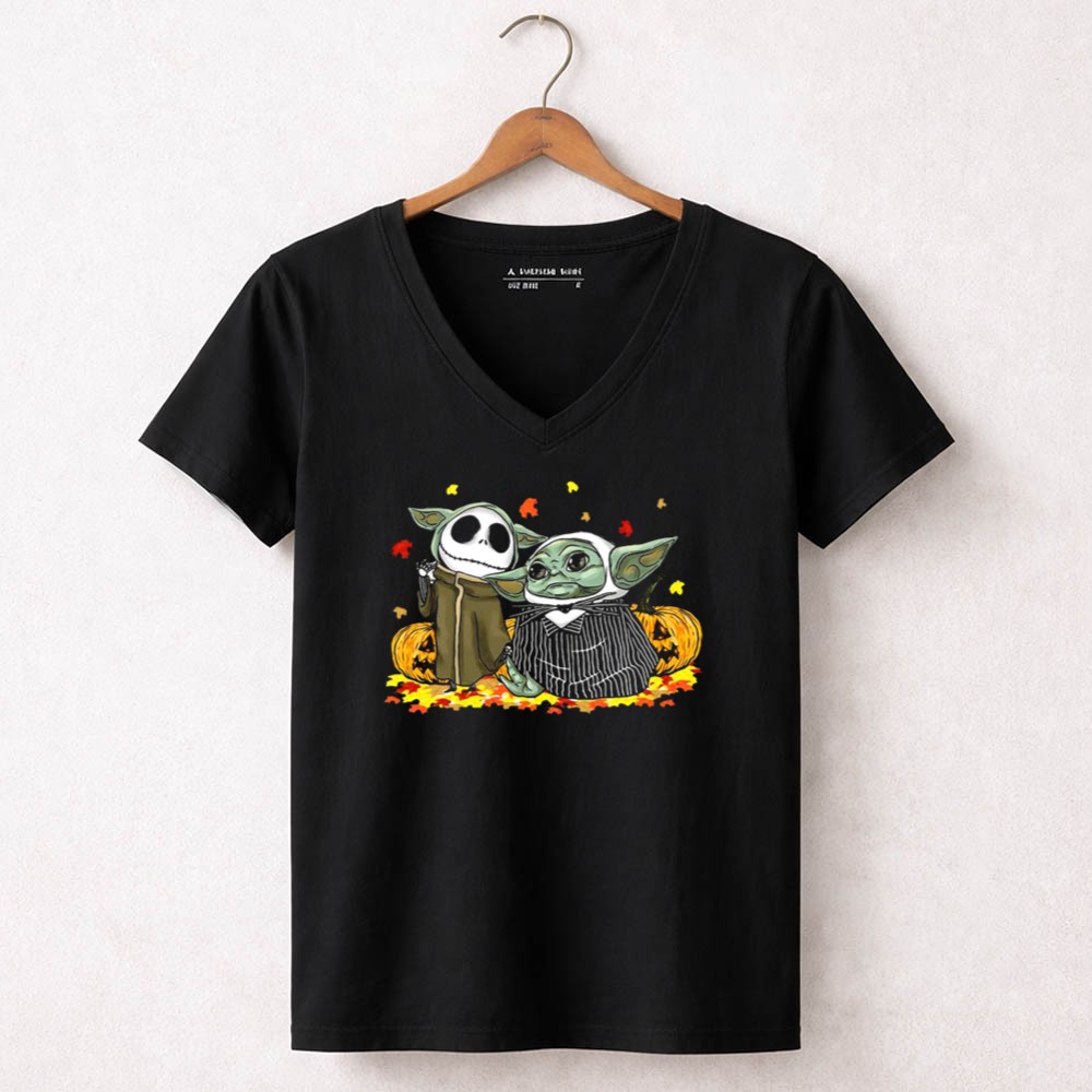 Pumpkin Halloween Baby Yoda Jack Skellington Autumn Leaves Shirt