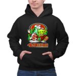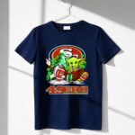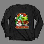 This shirt captures the joy of fandom through a whimsical blend of sports and pop culture, featuring the iconic San Francisco 49ers logo alongside a festive gnome and Baby Yoda. It’s a colorful celebration of St. Patrick’s Day, designed to bring a smile to every 49ers fan.