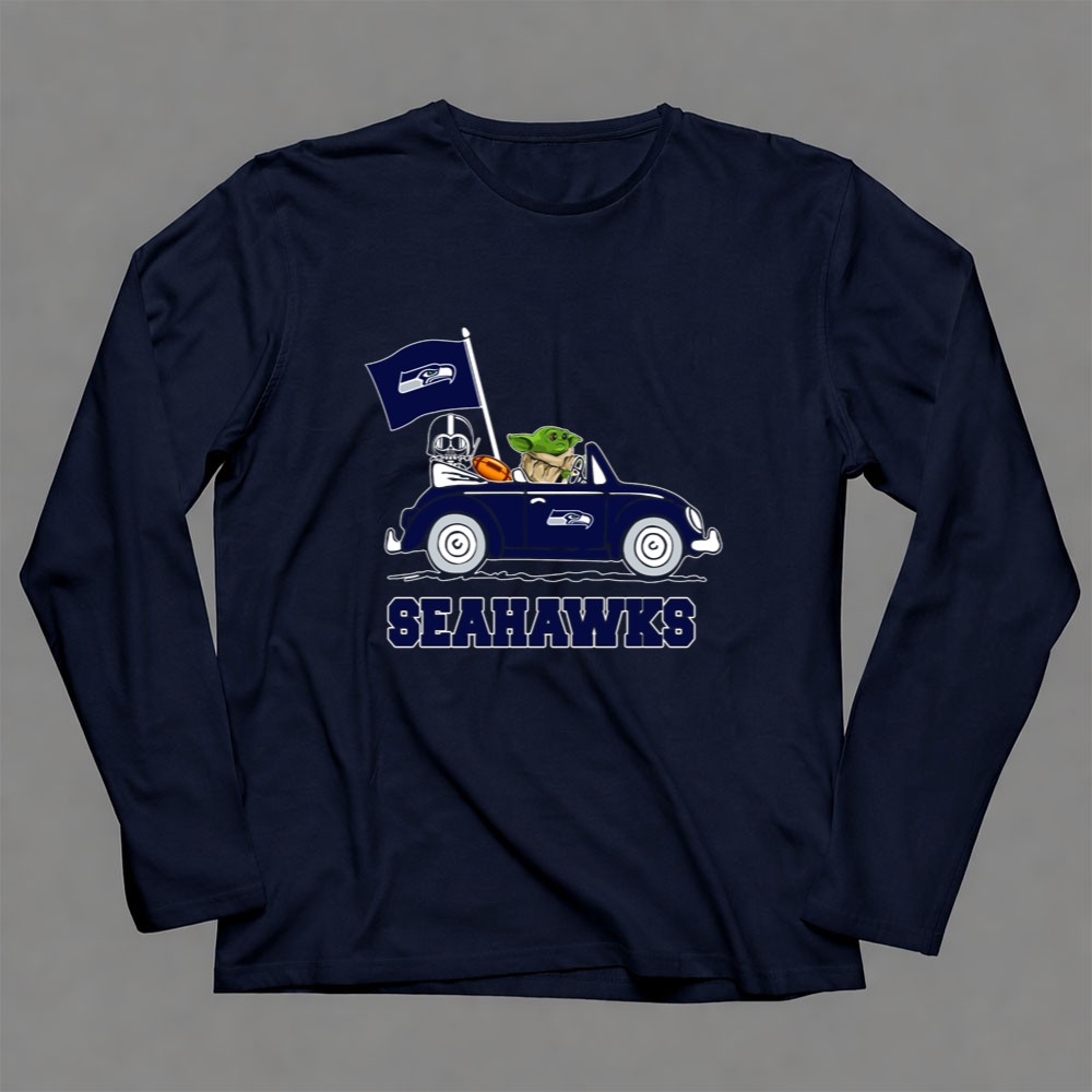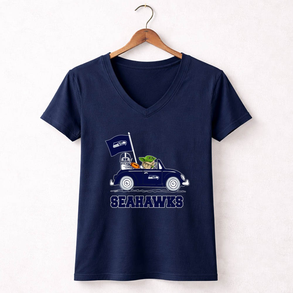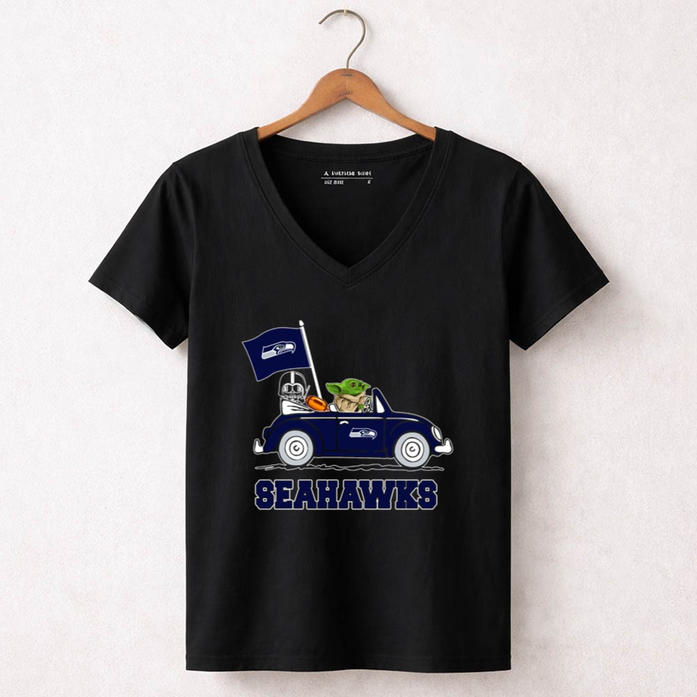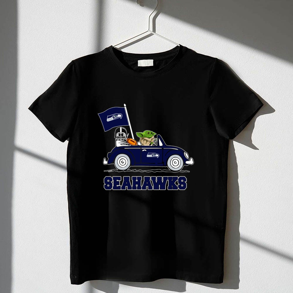 Seattle Seahawks merchandise, Star Wars fan gear, Baby Yoda apparel, Darth Vader design, game day t-shirt, pop culture sports mashup, unique fan gift, premium cotton t-shirt