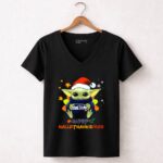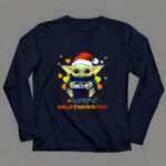 This design embodies the festive spirit of Hallothanksmas, where Baby Yoda dons a Santa hat while showcasing the Seattle Seahawks logo. It captures a joyful moment that celebrates both the holiday season and a shared love for football, creating a vibrant expression of community and cheer for fans.