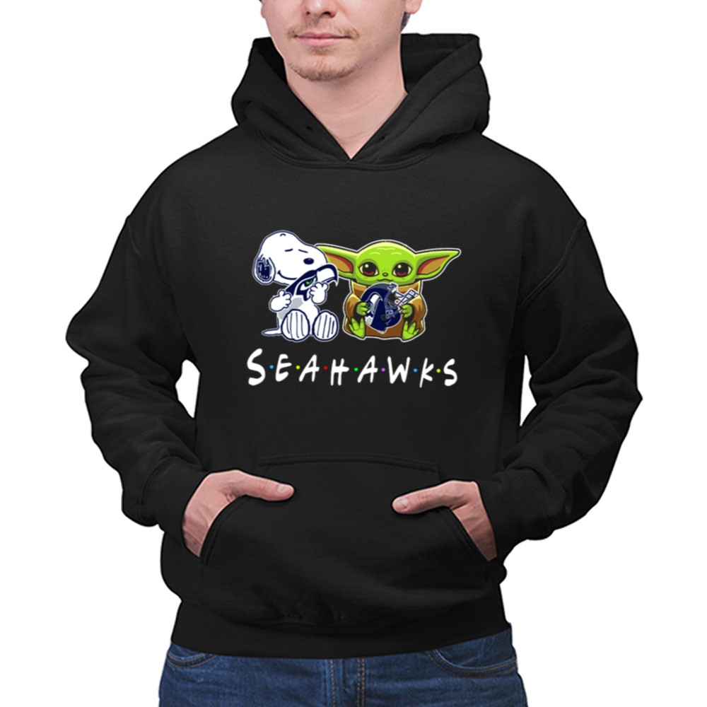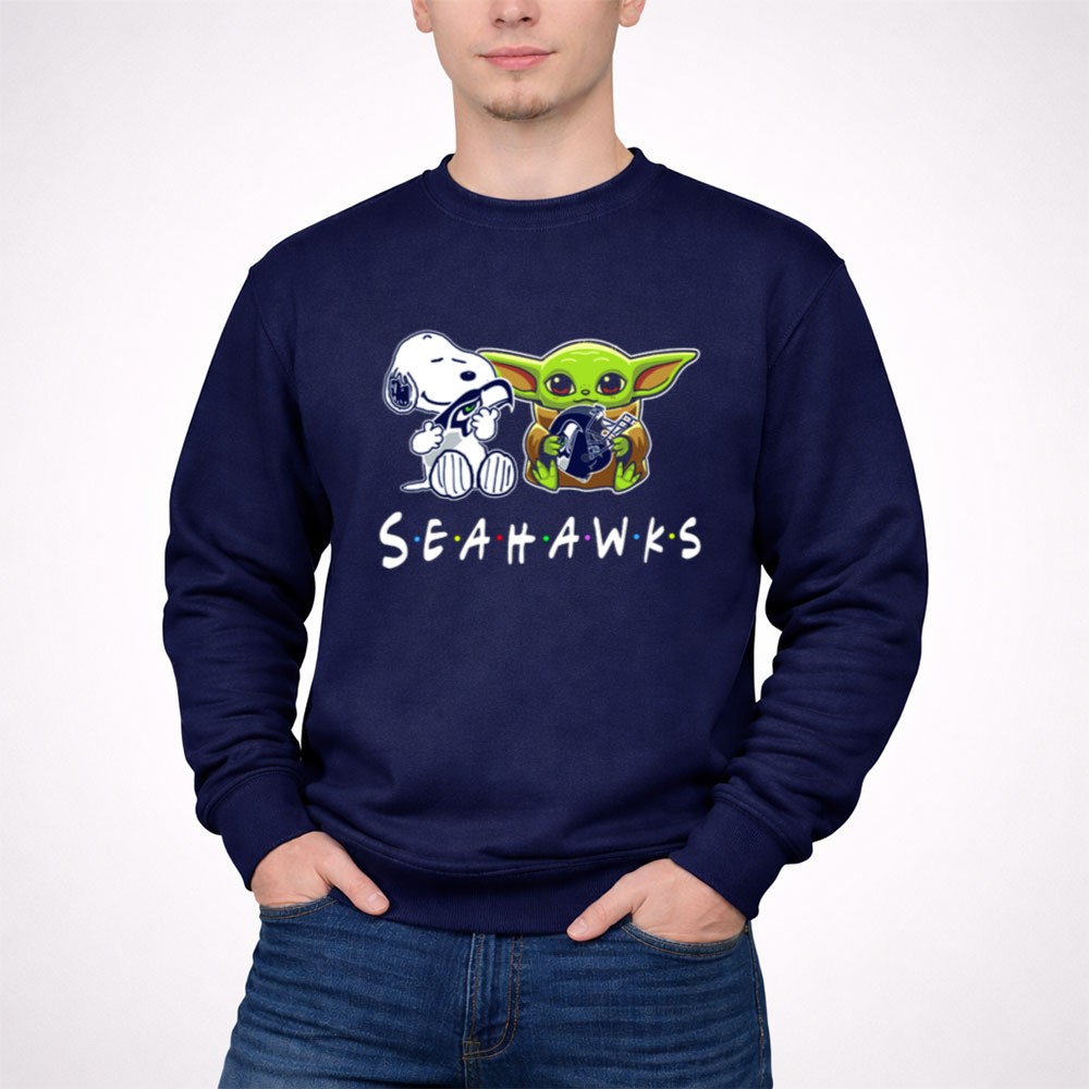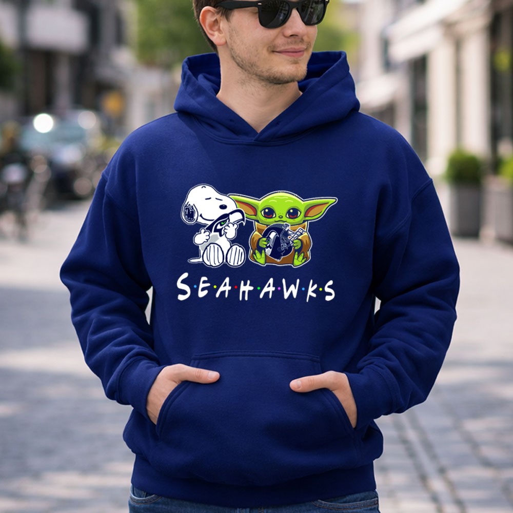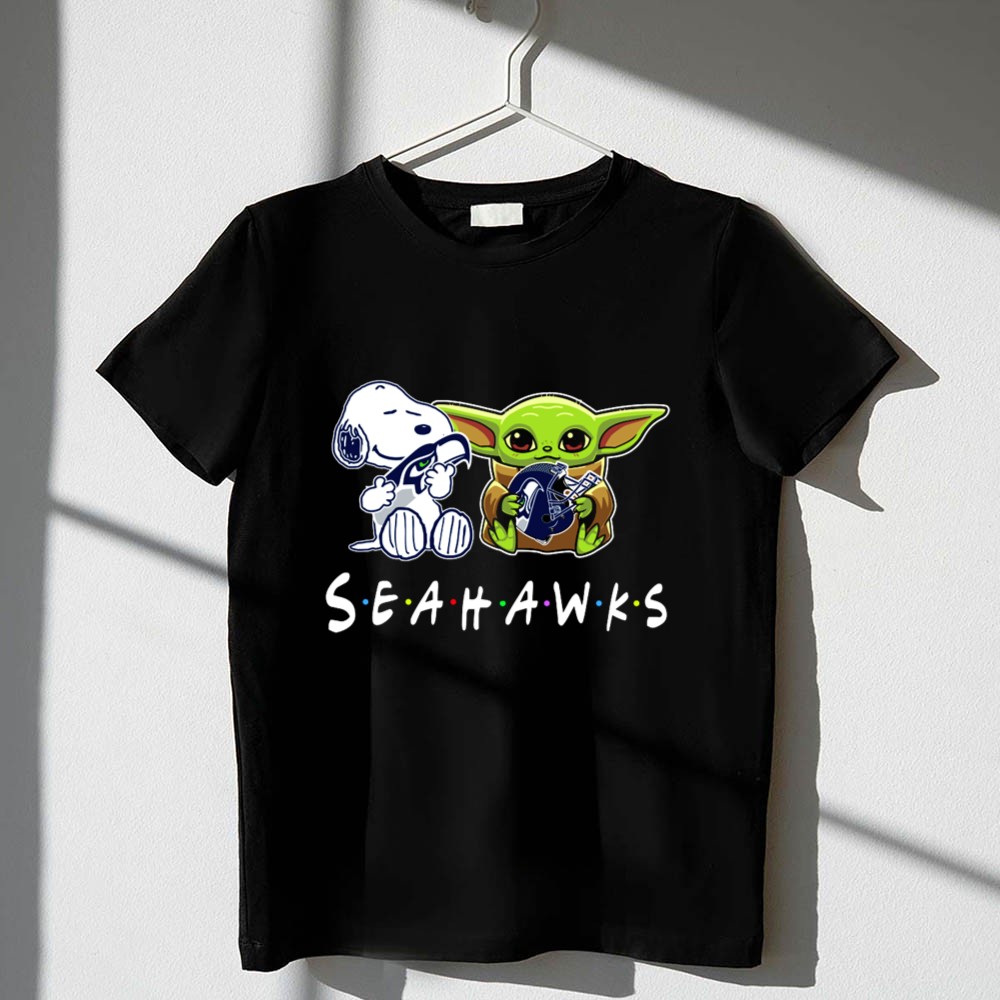 Seattle Seahawks apparel, Snoopy Baby Yoda collaboration, pop culture sports tee, fan gear for kids, game day shirt, Seattle pride, family-friendly Seahawks merch, premium cotton t-shirt