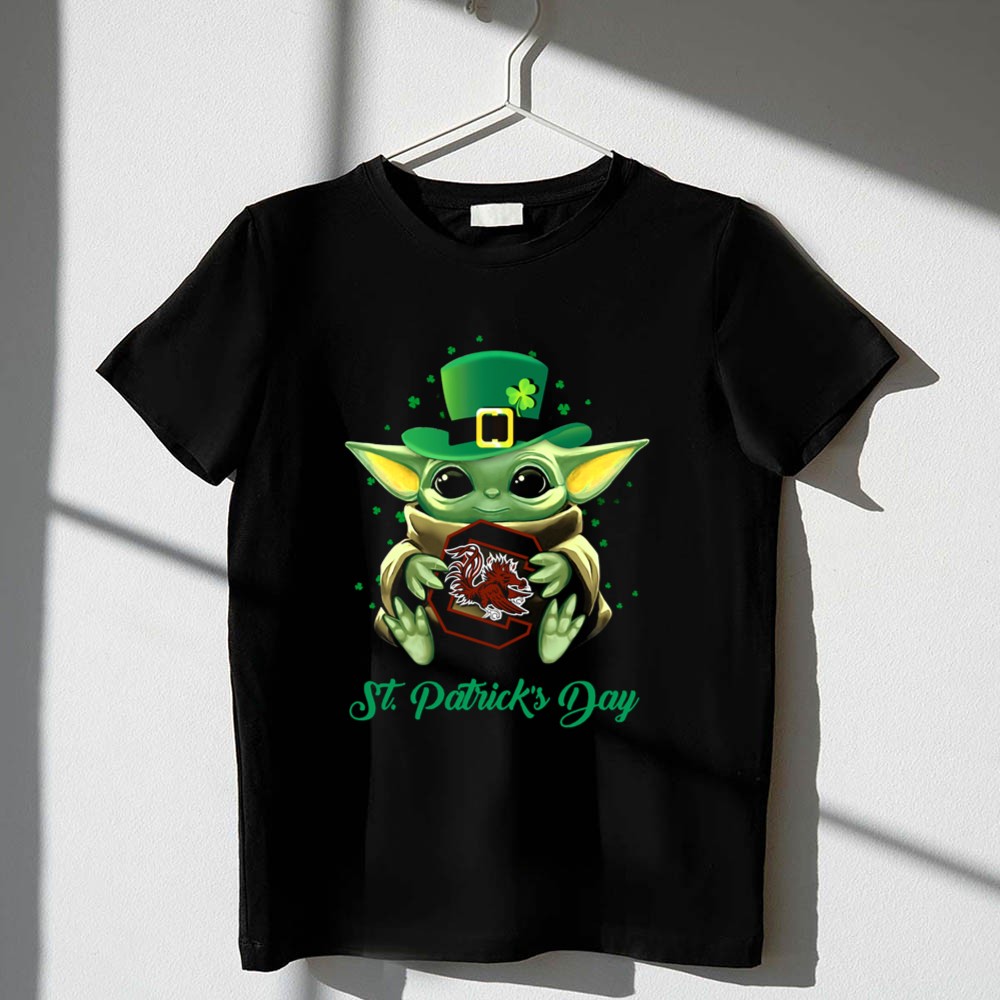 South Carolina Gamecocks apparel, St. Patrick's Day shirt, Baby Yoda merchandise, Gamecock pride, college sports fan gift, festive t-shirt, pop culture crossover, lucky charm