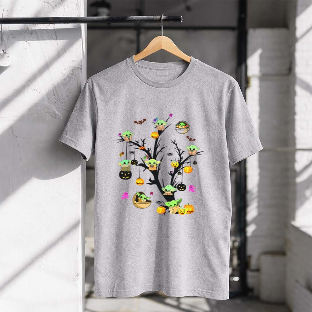 This enchanting design captures the playful essence of Halloween, featuring Grogu joyfully hanging from a tree, surrounded by vibrant pumpkins and whimsical bats. It’s a celebration of the season’s magic, inviting families to embrace the joy and laughter that comes with trick-or-treating and festive gatherings. A perfect way to honor the beloved Star Wars universe while creating cherished memories.
