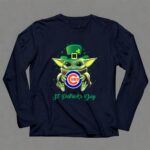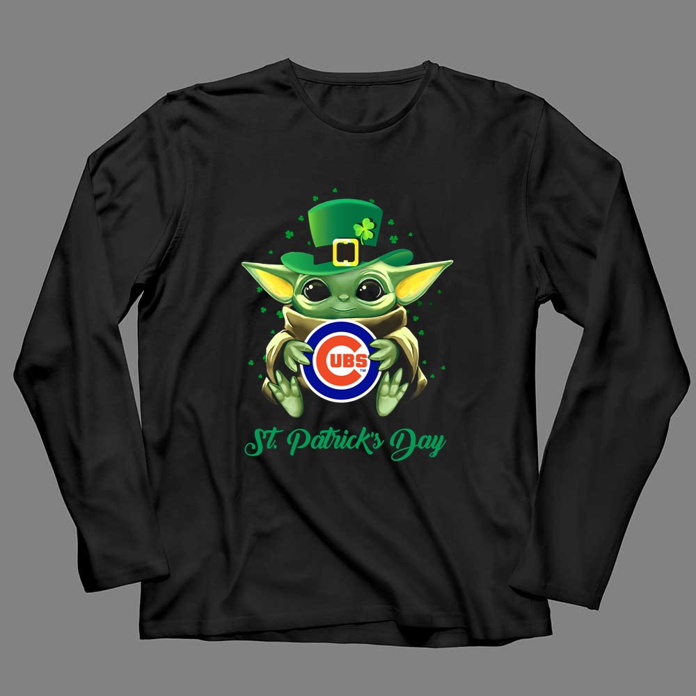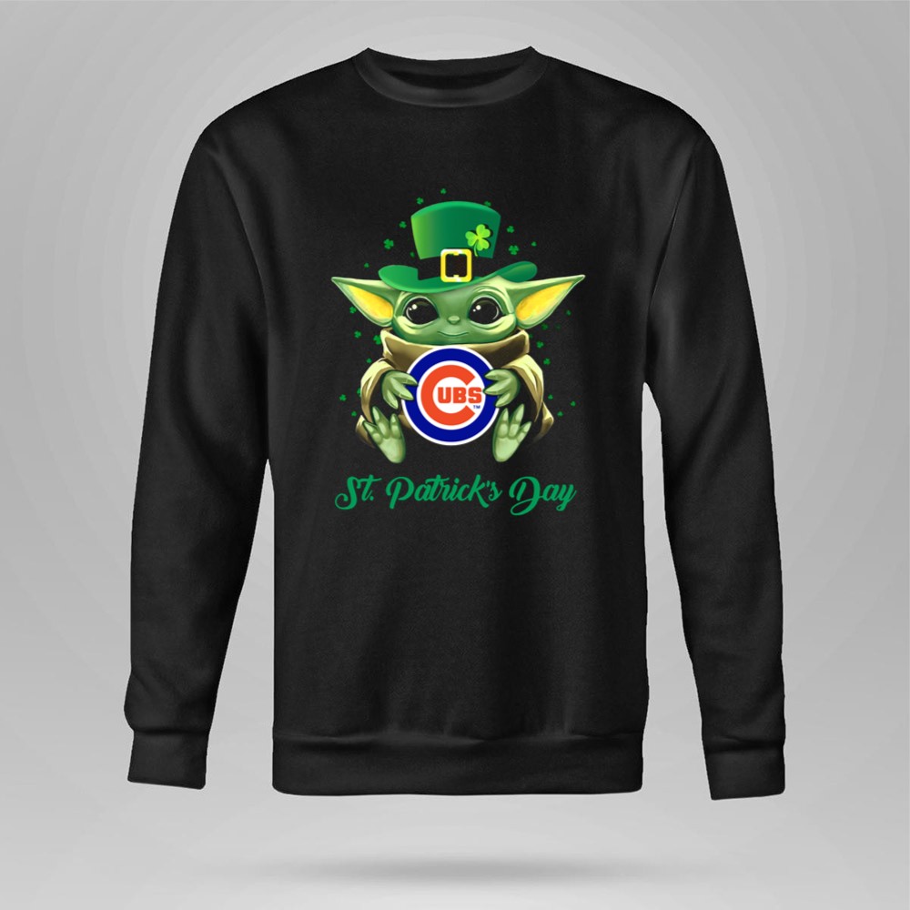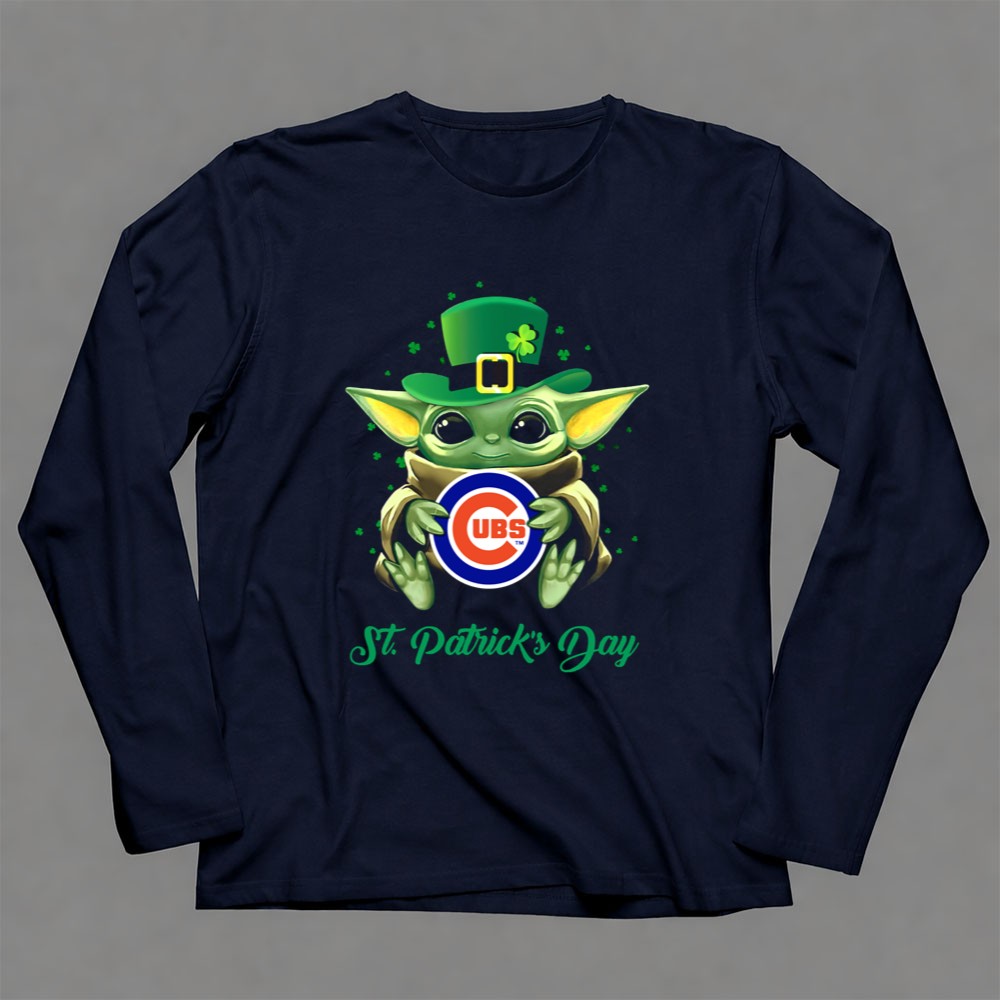 Chicago Cubs gear, St. Patrick's Day shirt, Baby Yoda merchandise, Cubs fan apparel, playful sports design, holiday celebration, pop culture fandom, cute sports gifts