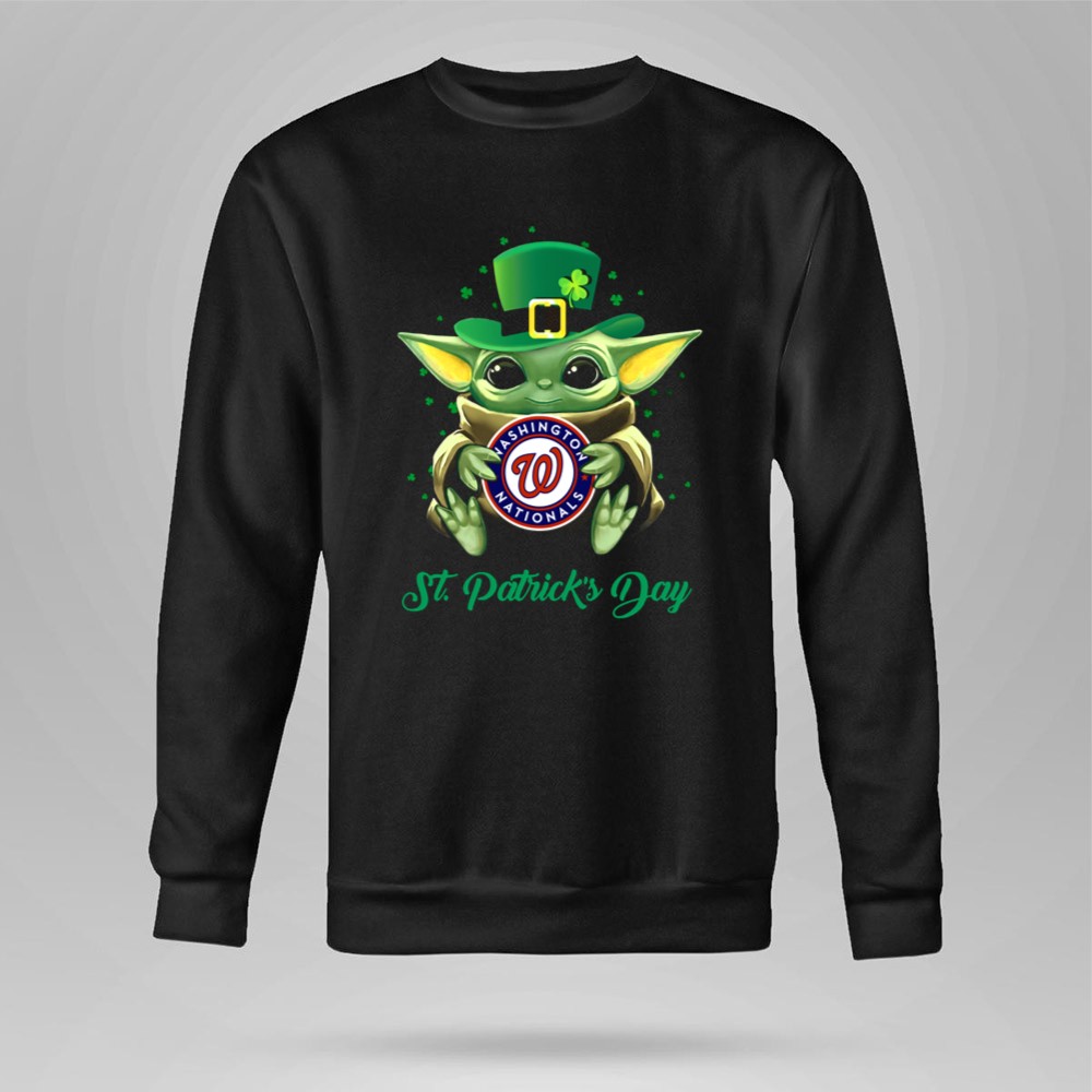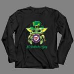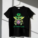 Washington Nationals gear, Baby Yoda merchandise, St. Patrick's Day apparel, MLB fan shirt, festive baseball tee, spring training celebration, family-friendly sportswear, unique gifts for fans