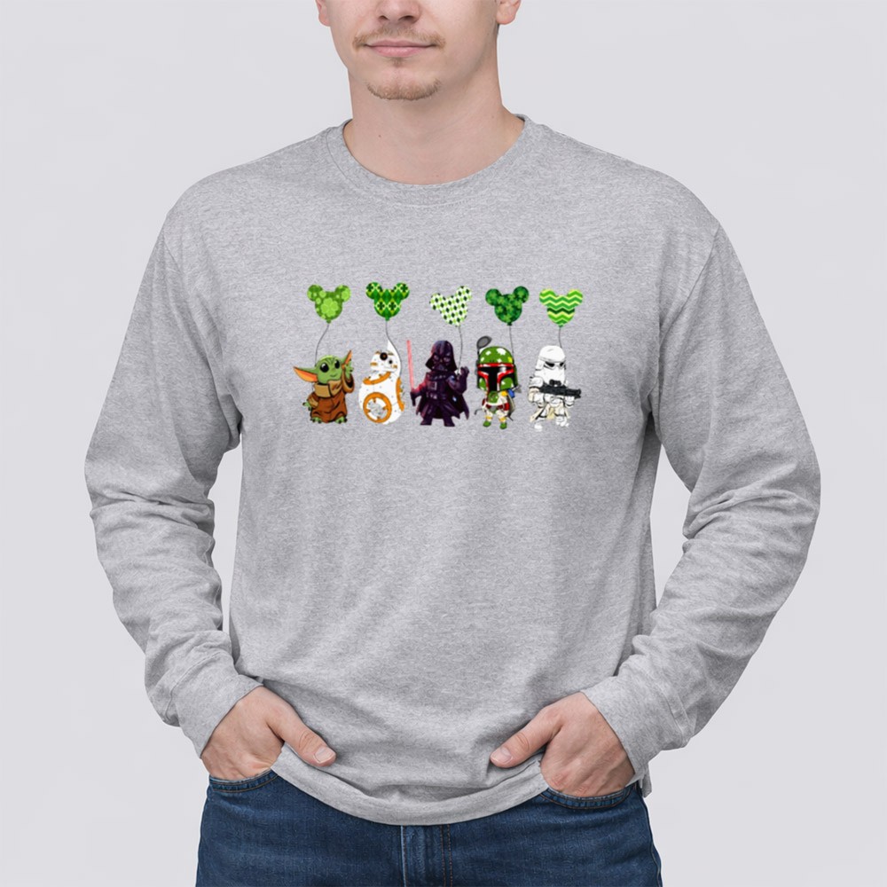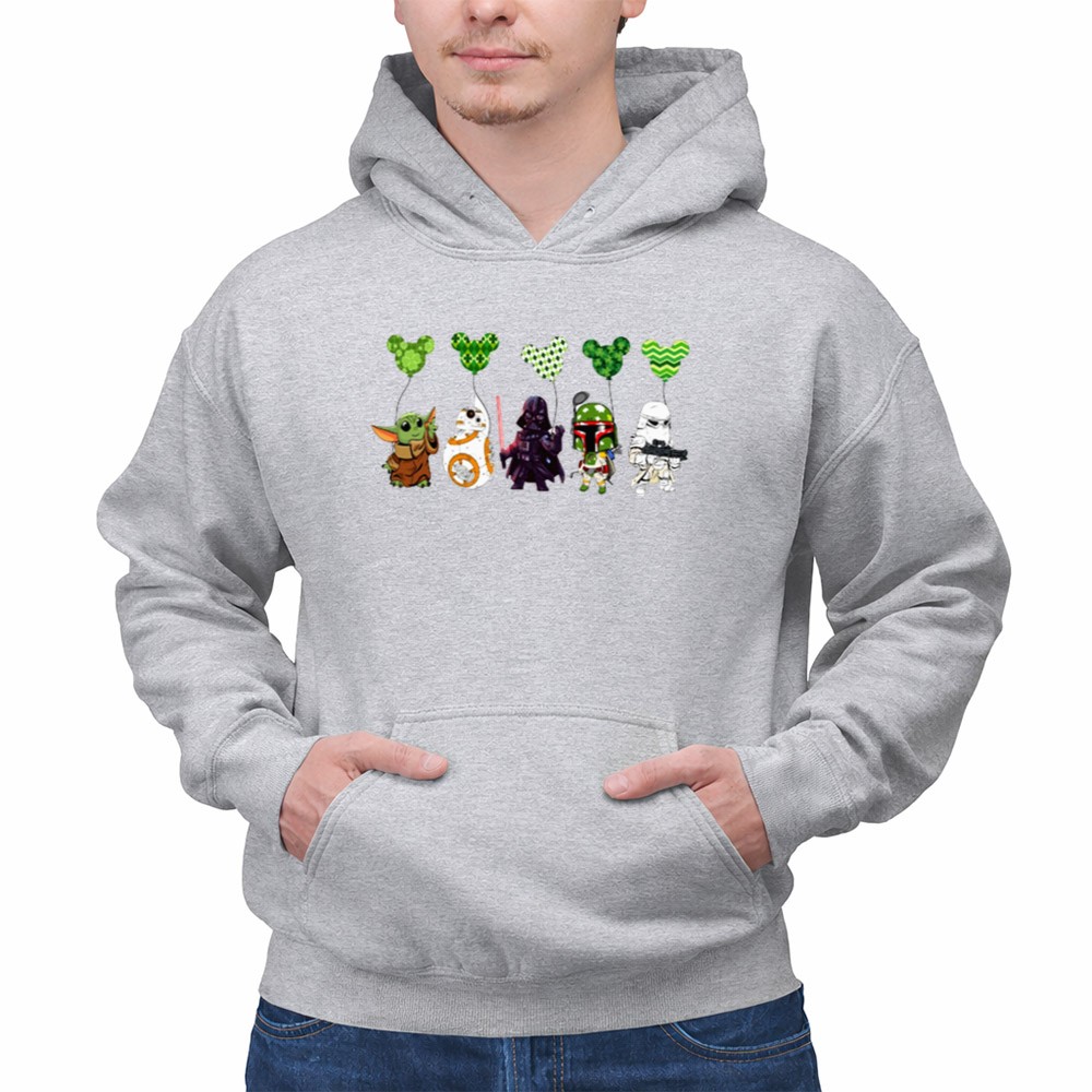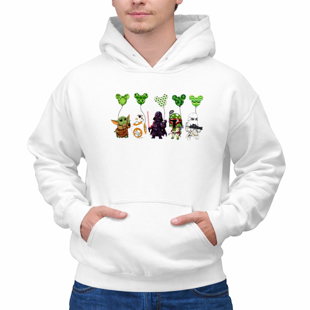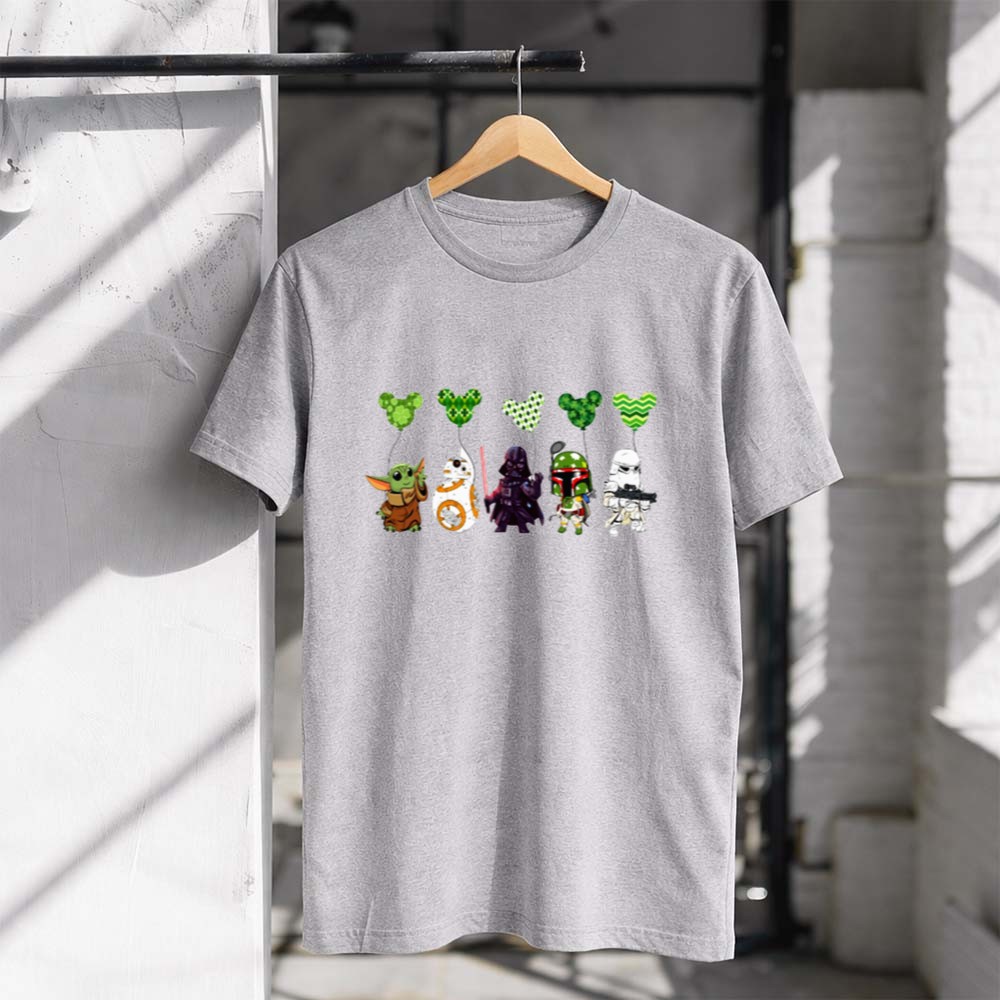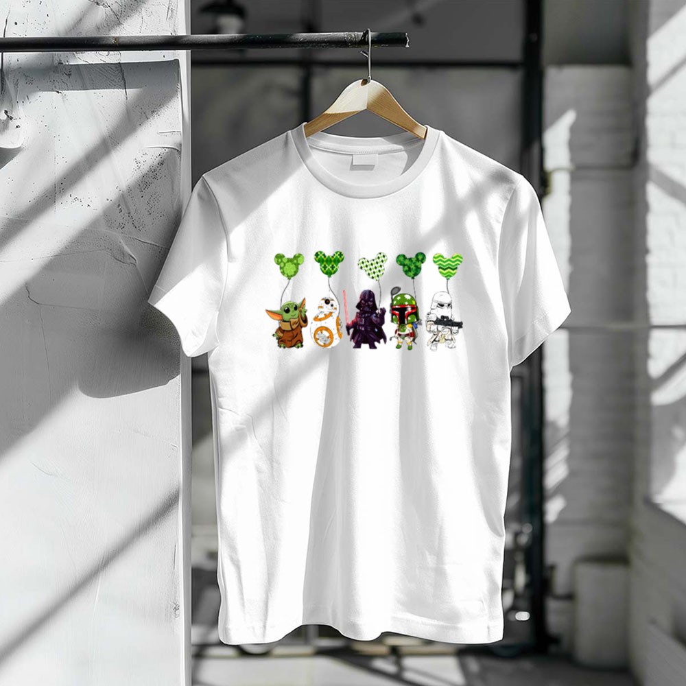 Star Wars characters, Mickey Mouse ears, St. Patrick's Day, Disney fans, Yoda and Darth Vader, festive apparel, holiday celebrations, family-friendly gifts