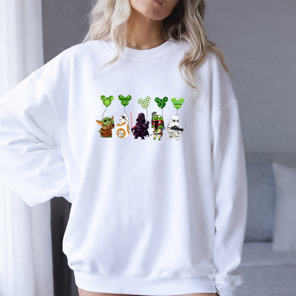This design embodies the joy of celebrating St. Patrick’s Day with a Star Wars twist. Featuring characters like Yoda and Darth Vader holding cheerful green Mickey ears balloons, it invites fans to embrace the holiday spirit in a fun, family-friendly way. Each character adds a layer of whimsy, making this design a delightful tribute to both beloved franchises.