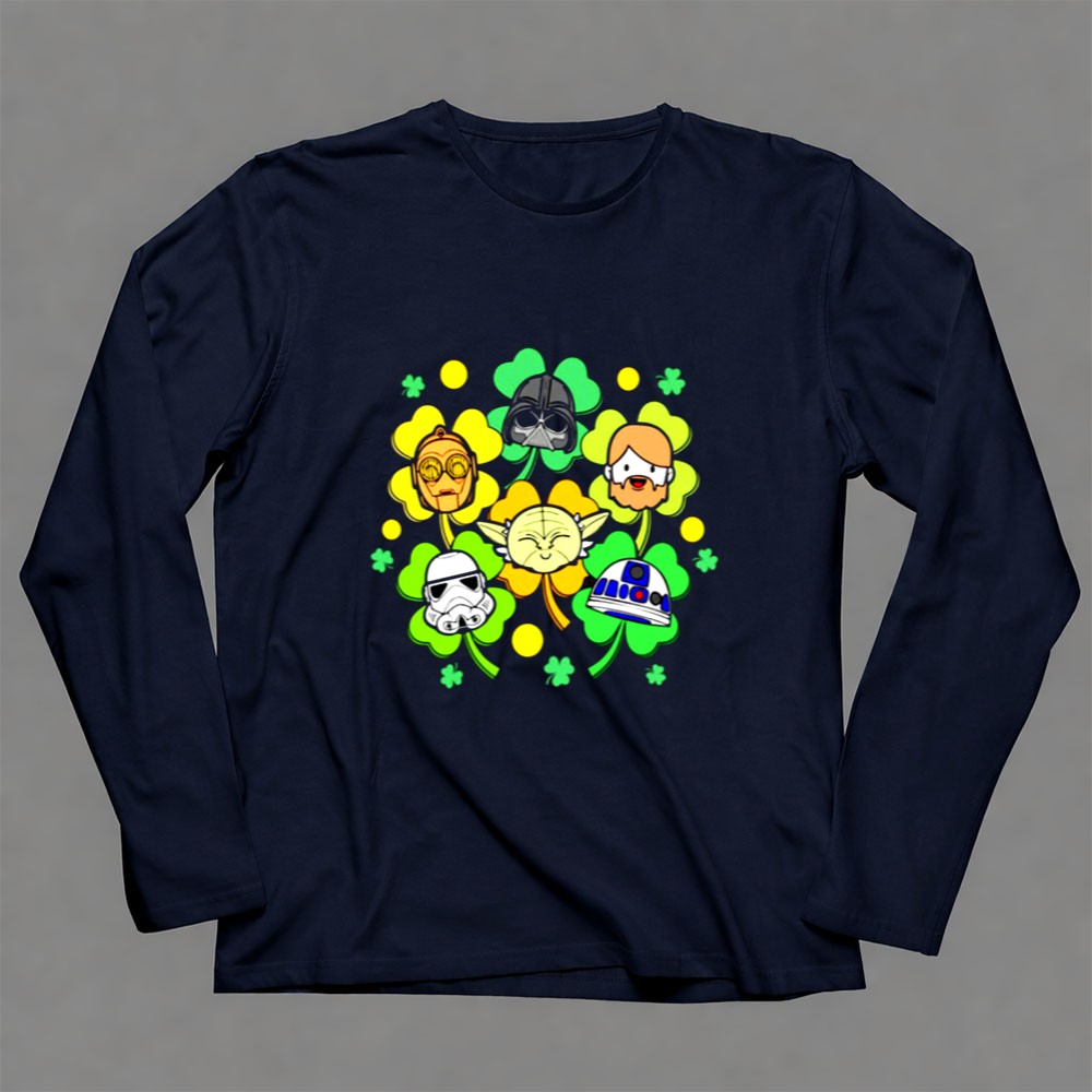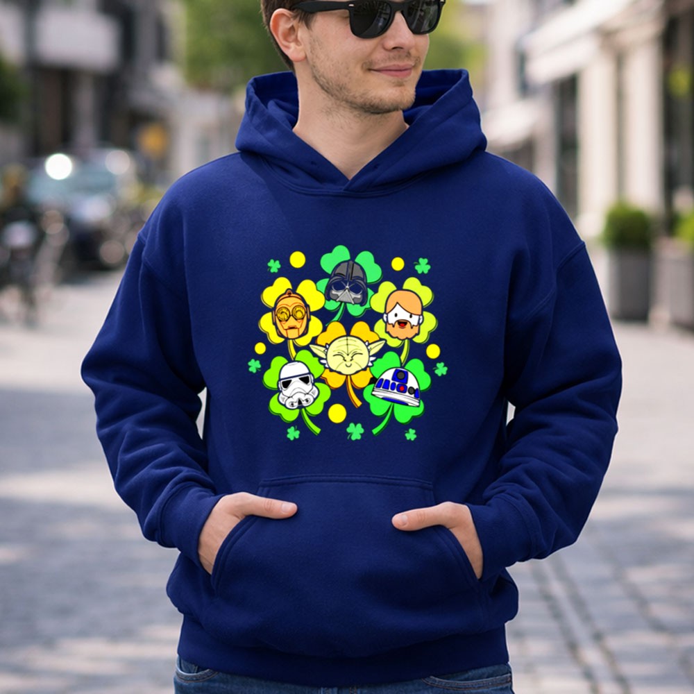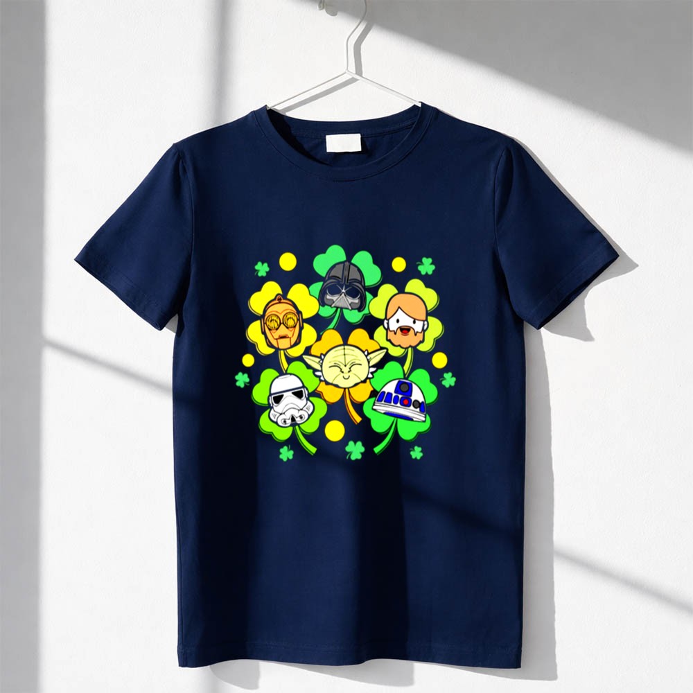 This vibrant t-shirt brings together beloved Star Wars characters like Darth Vader and Yoda, wrapped in festive shamrock designs. It embodies the spirit of St. Patrick’s Day, inviting fans to celebrate their love for the galaxy far, far away with a playful twist. The colorful mashup evokes joy and connection, perfect for creating memorable moments with fellow enthusiasts.