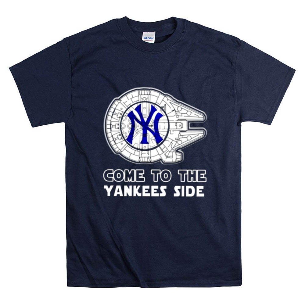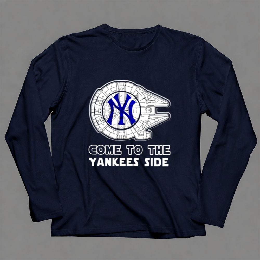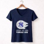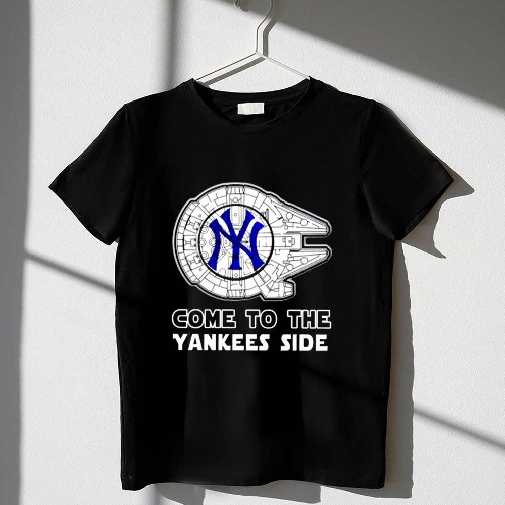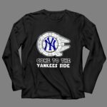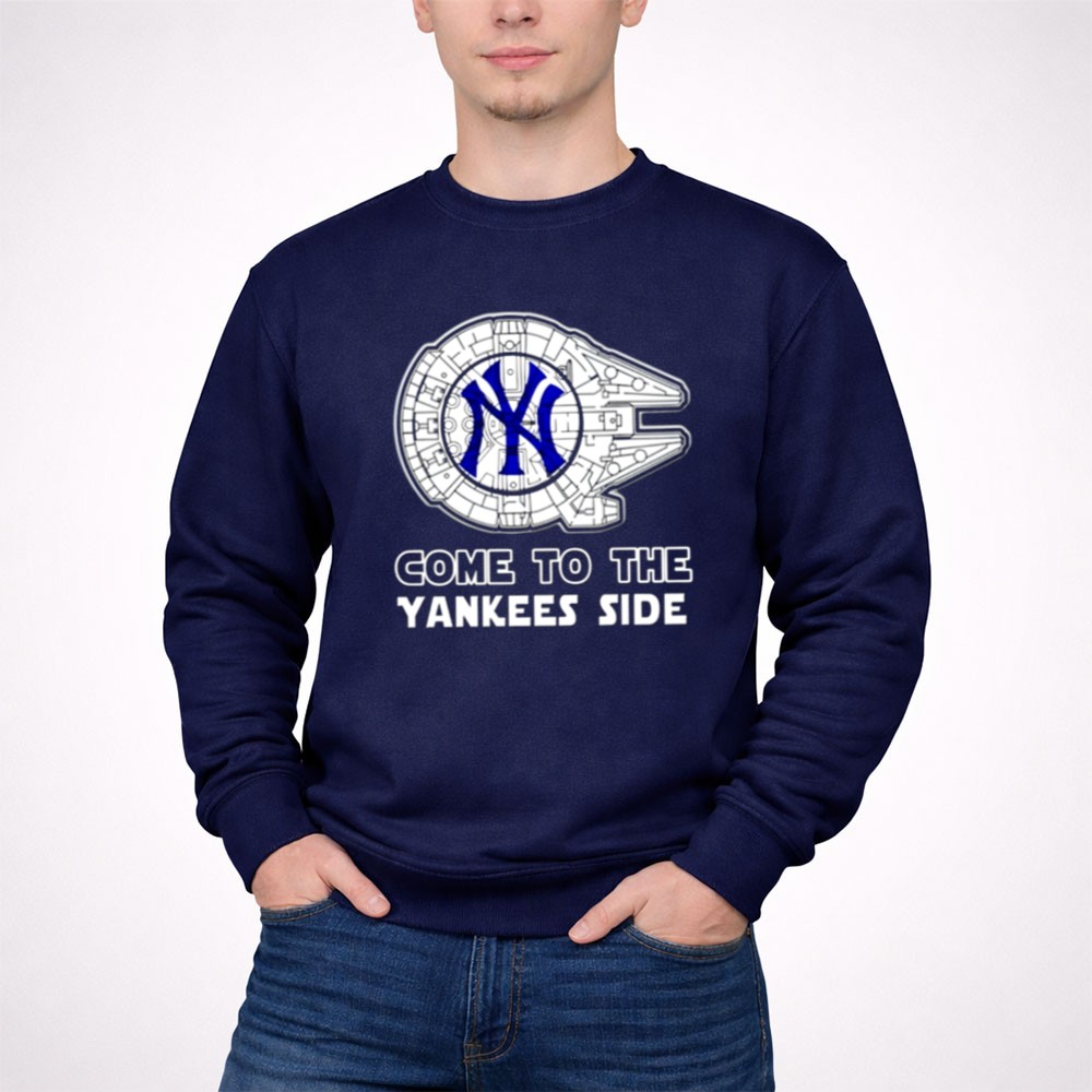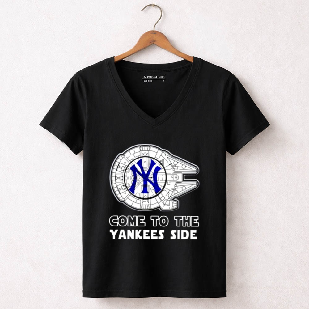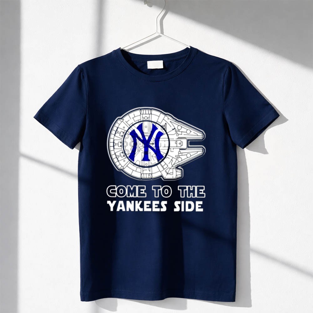 New York Yankees pride, Millennium Falcon tribute, Star Wars fandom, Bronx baseball culture, premium graphic tee, game day apparel, Jedi sports fans, NYY logo mashup