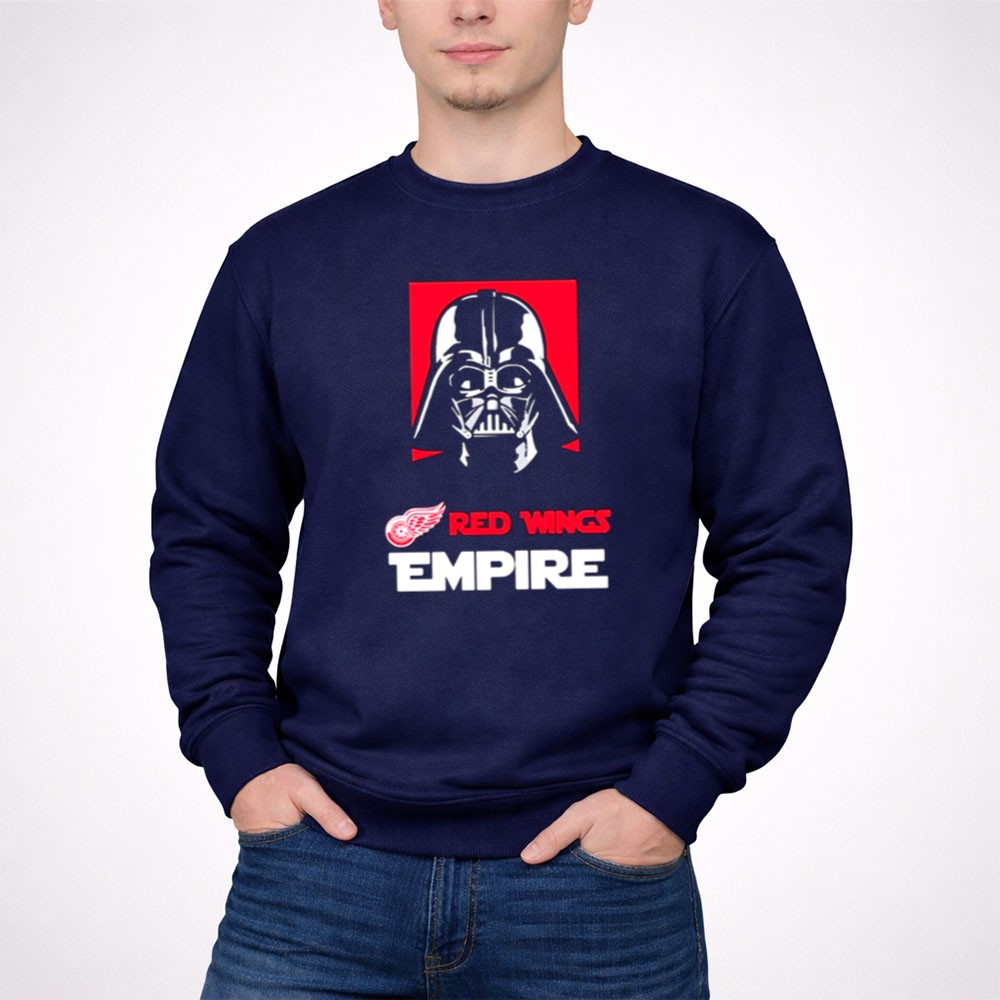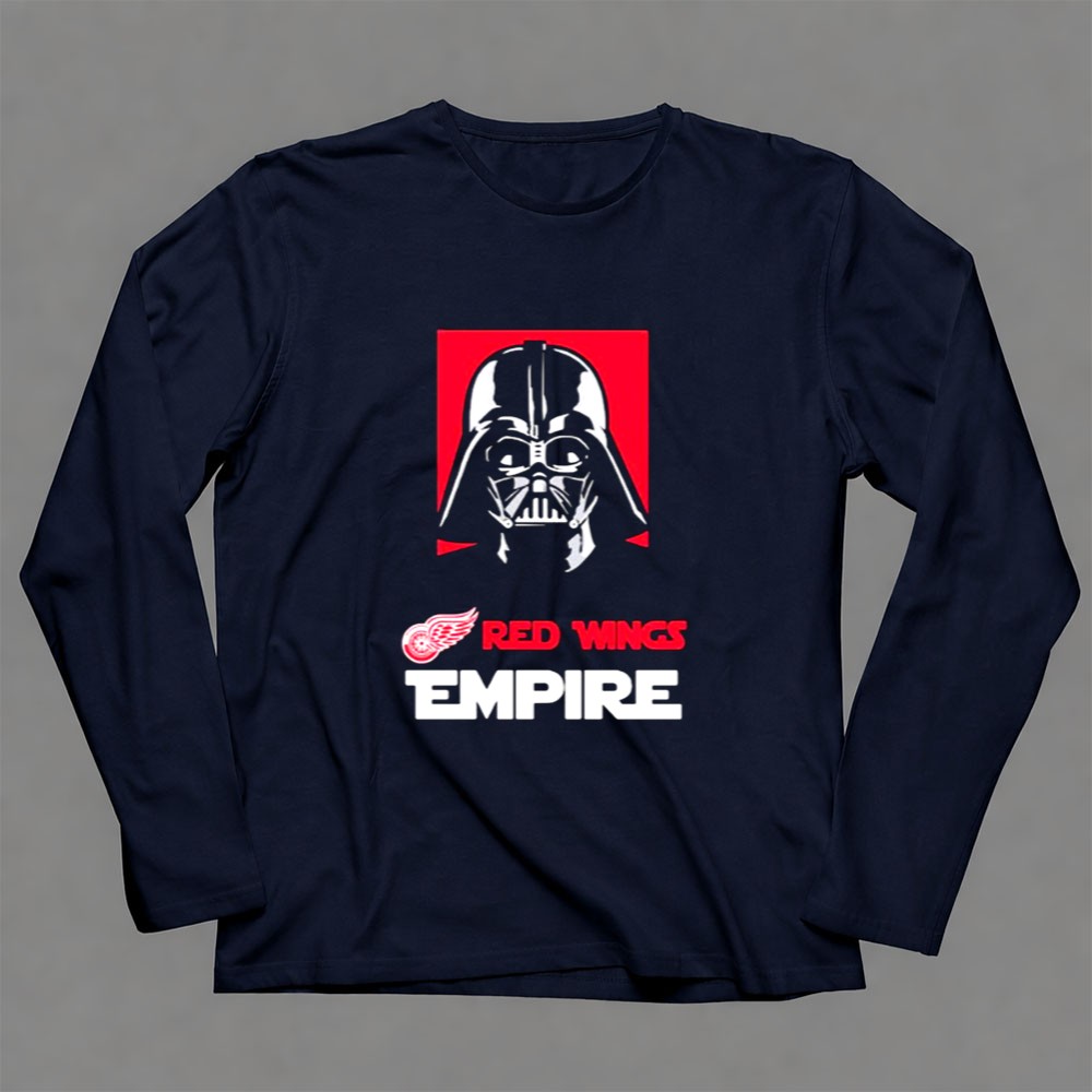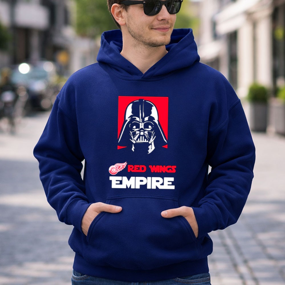 This design captures the essence of two beloved worlds: the fierce loyalty of Red Wings hockey culture and the epic saga of Star Wars. Featuring a graphic of Darth Vader alongside the ‘RED WINGS EMPIRE’ text, it invites fans to celebrate their passions while honoring the legacy of both franchises. It’s a bold statement piece that resonates deeply with those who appreciate the intersection of sports and pop culture.