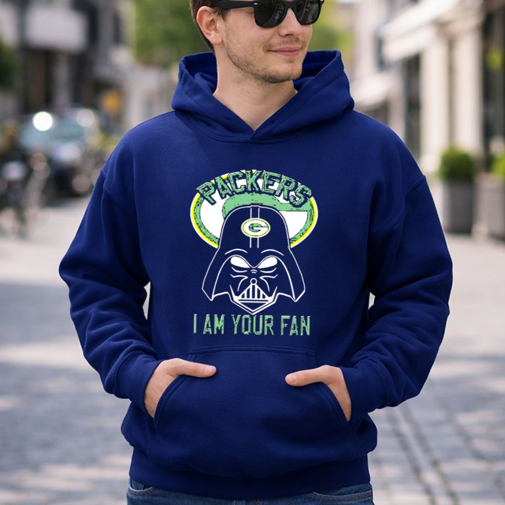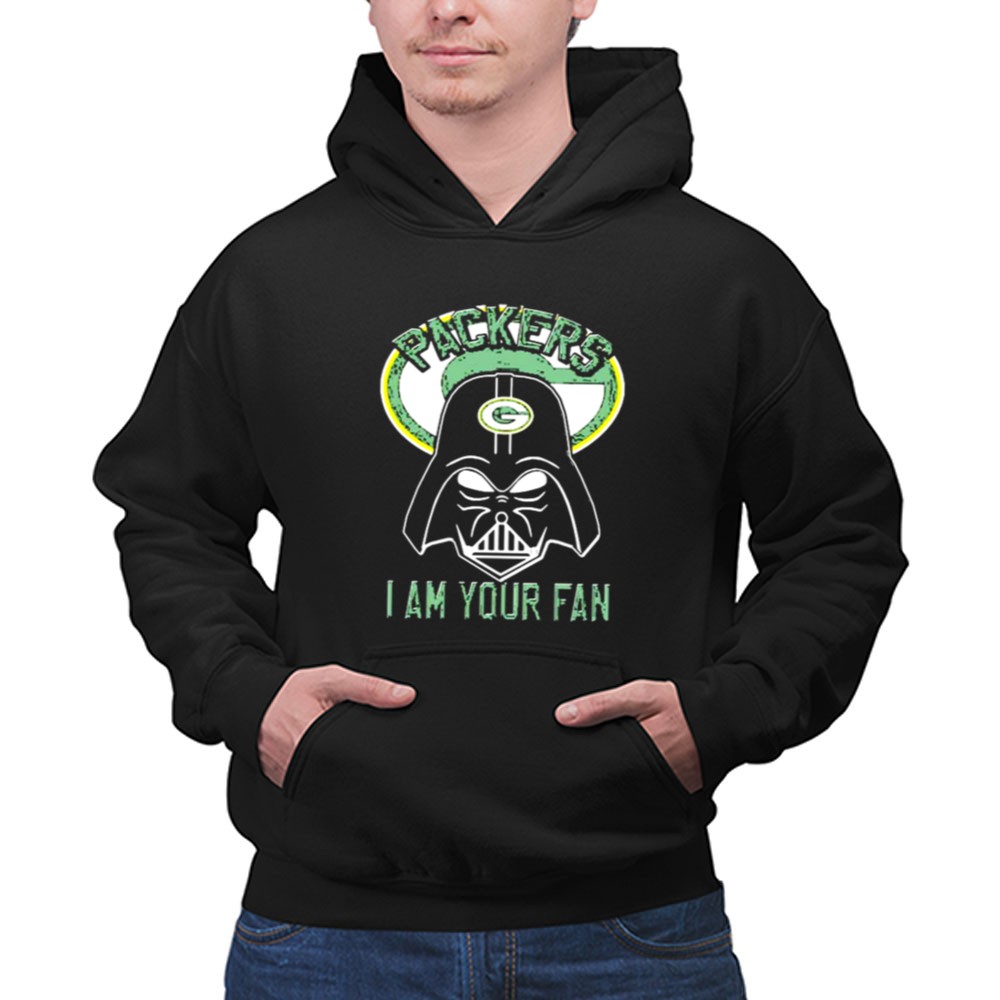 This design captures the essence of fandom, blending the iconic Darth Vader with the spirited enthusiasm of Green Bay Packers supporters. It playfully declares your loyalty with the bold ‘I AM YOUR FAN’ text, making it a perfect tribute for those who cherish both sports and sci-fi. The humorous twist invites smiles while celebrating your unwavering team spirit.