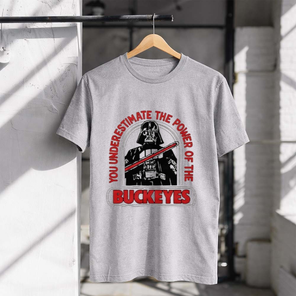 This design captures the essence of college sports enthusiasm by merging the powerful message of Darth Vader with the fierce pride of Ohio State. The bold typography and comic mashup style evoke a sense of fun and nostalgia, reminding fans that their loyalty to the Buckeyes is as strong as the Force itself. It’s a celebration of what it means to be a part of this spirited community.
