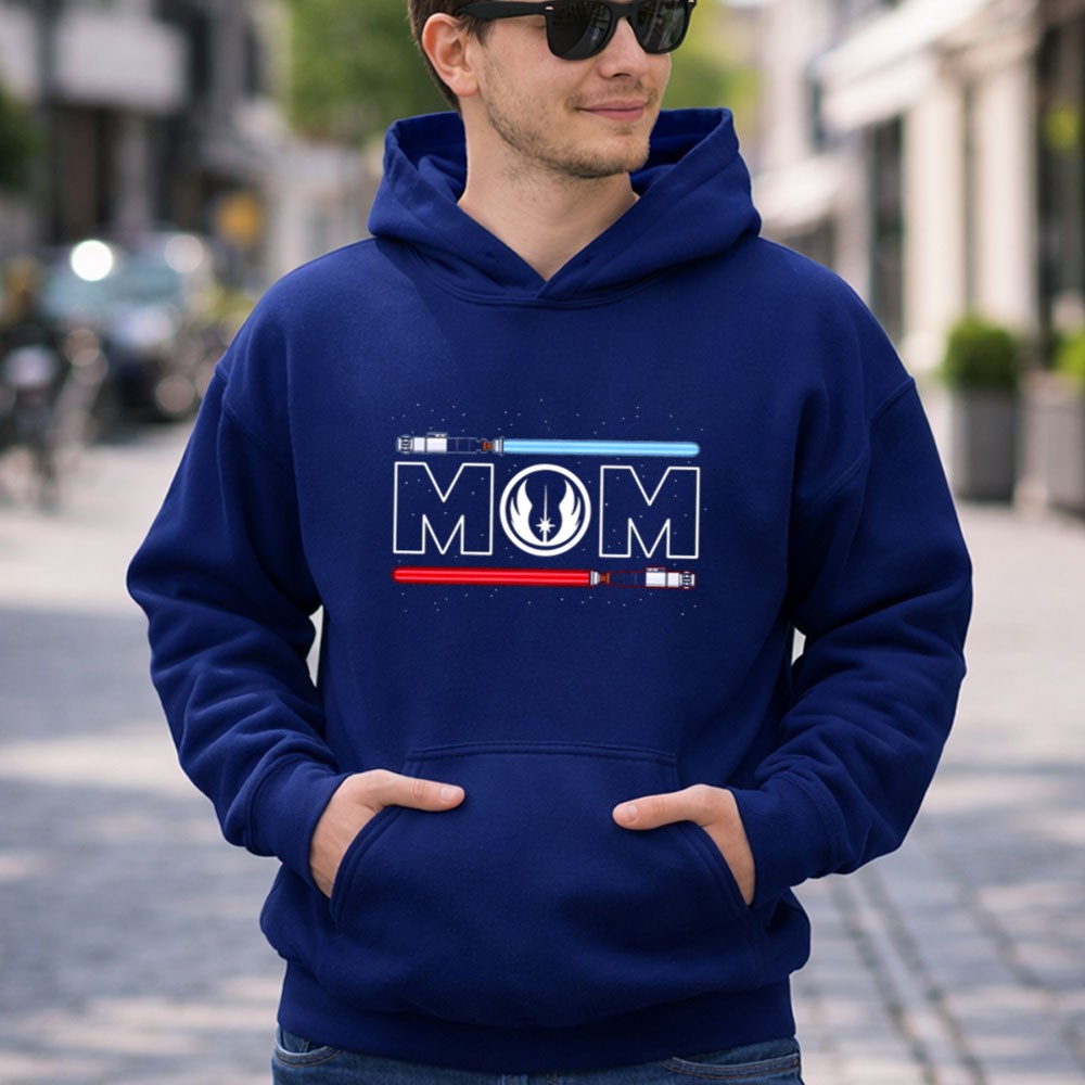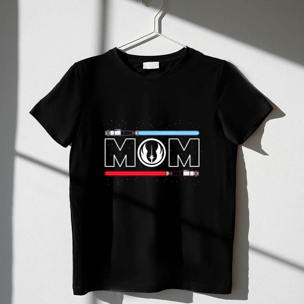This design encapsulates the essence of motherhood, blending the nurturing spirit of moms with the adventurous heart of the Jedi Order. The blue and red lightsabers symbolize the duality of love and strength, honoring the mothers who guide us through the galaxy of life. It’s a minimalist yet striking tribute that resonates with both fan culture and family pride.