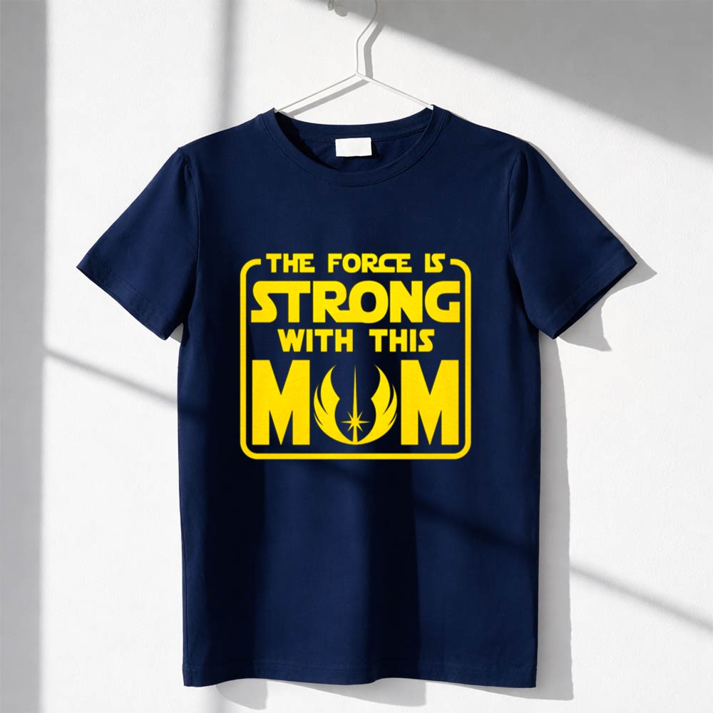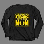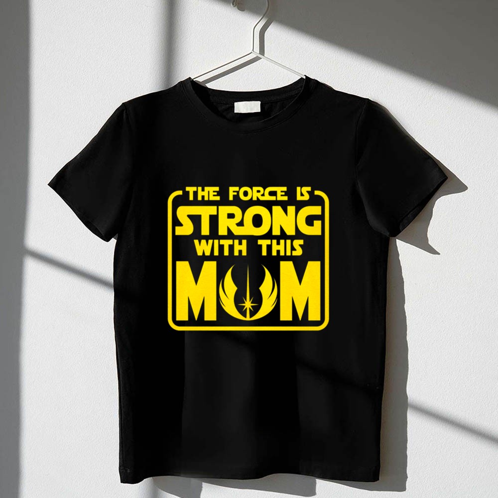 This design captures the essence of motherhood with a playful nod to the beloved Star Wars universe. The quote, ‘THE FORCE IS STRONG WITH THIS MOM,’ embodies the unwavering strength and love that every mother possesses, while the minimalist style and bold graphics pay homage to the enduring legacy of the Jedi Order. It’s a celebration of both family and fandom, merging two powerful forces in a single, impactful statement.