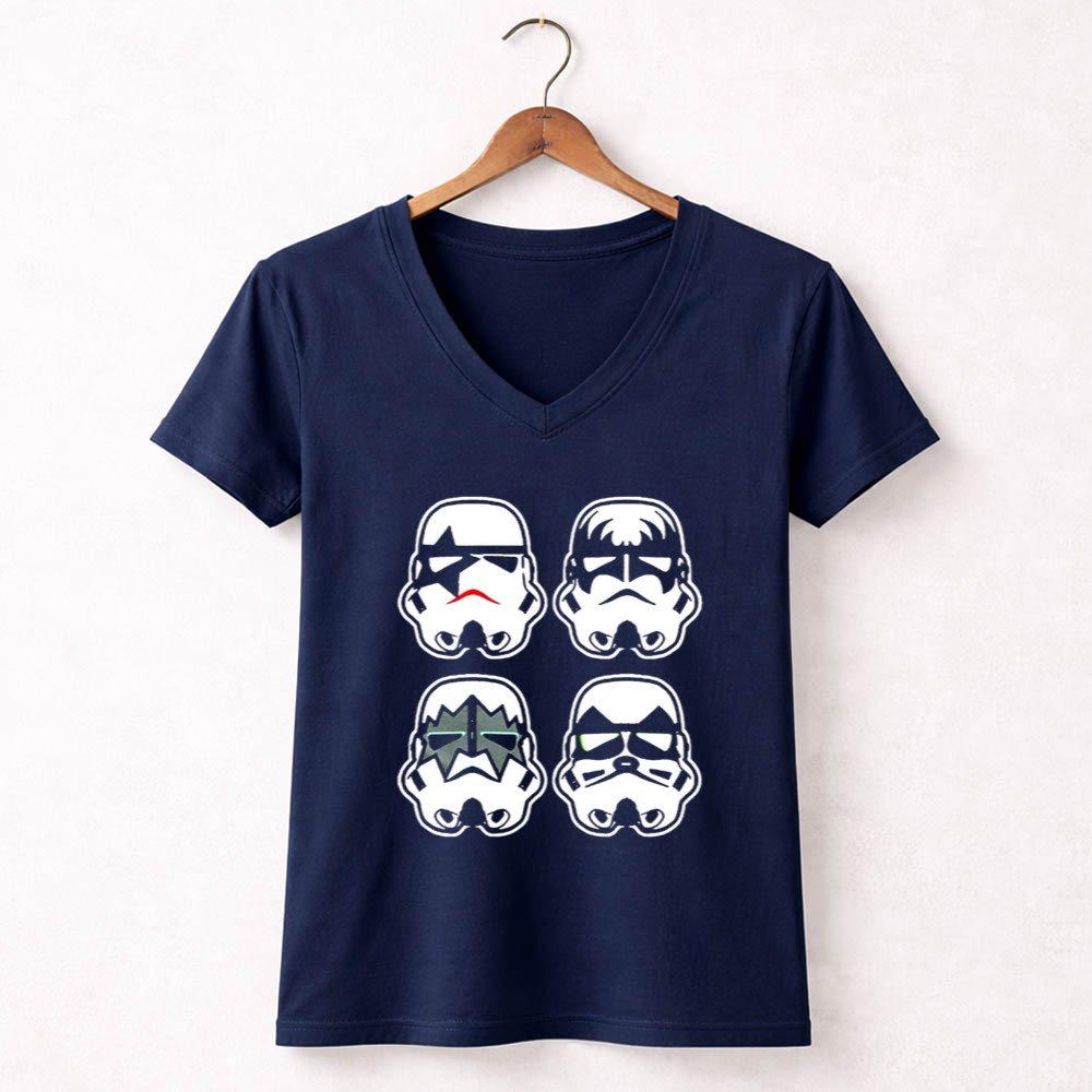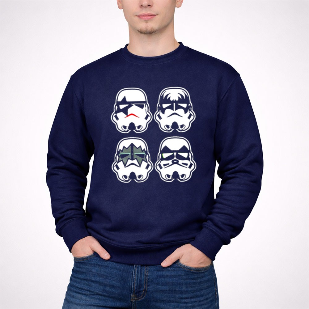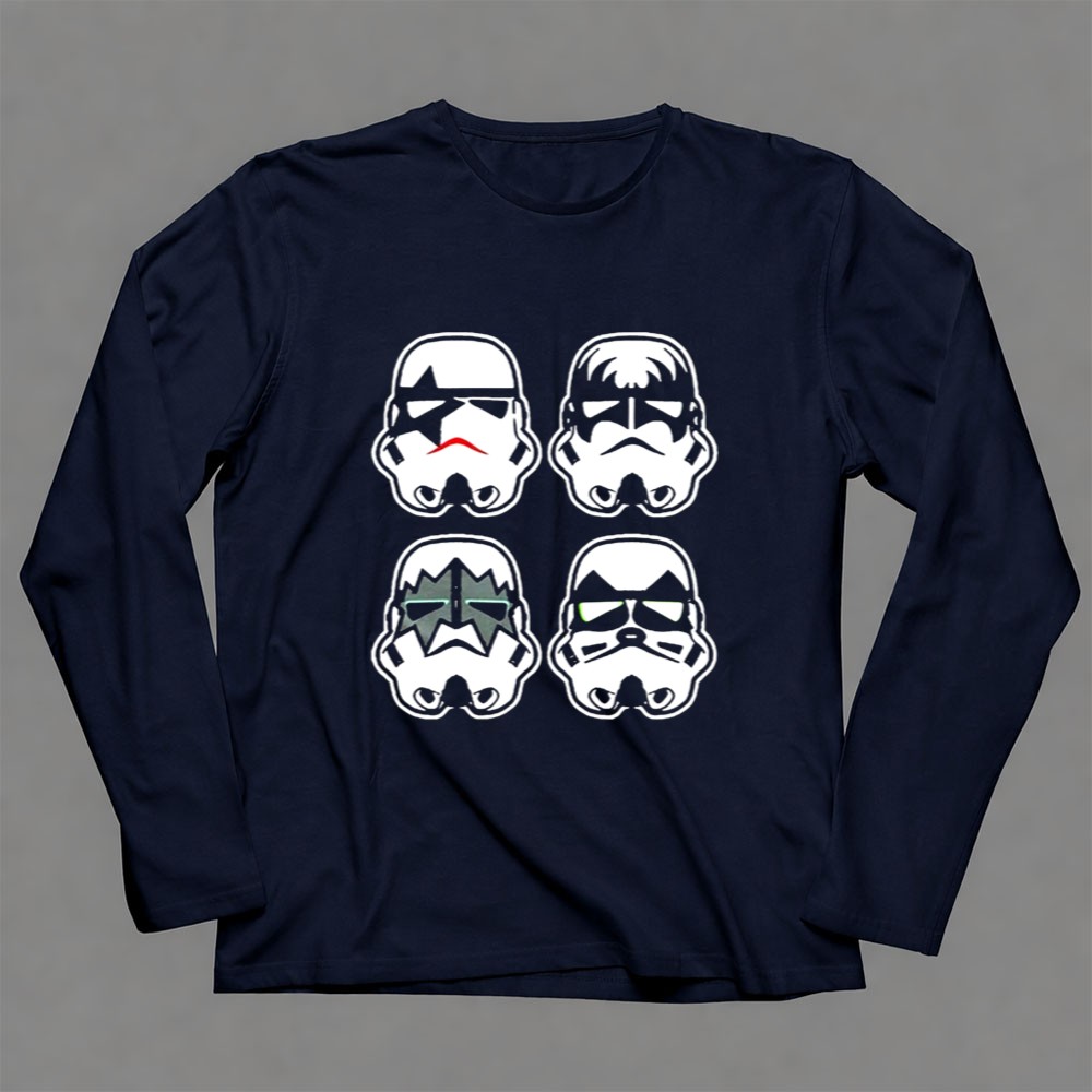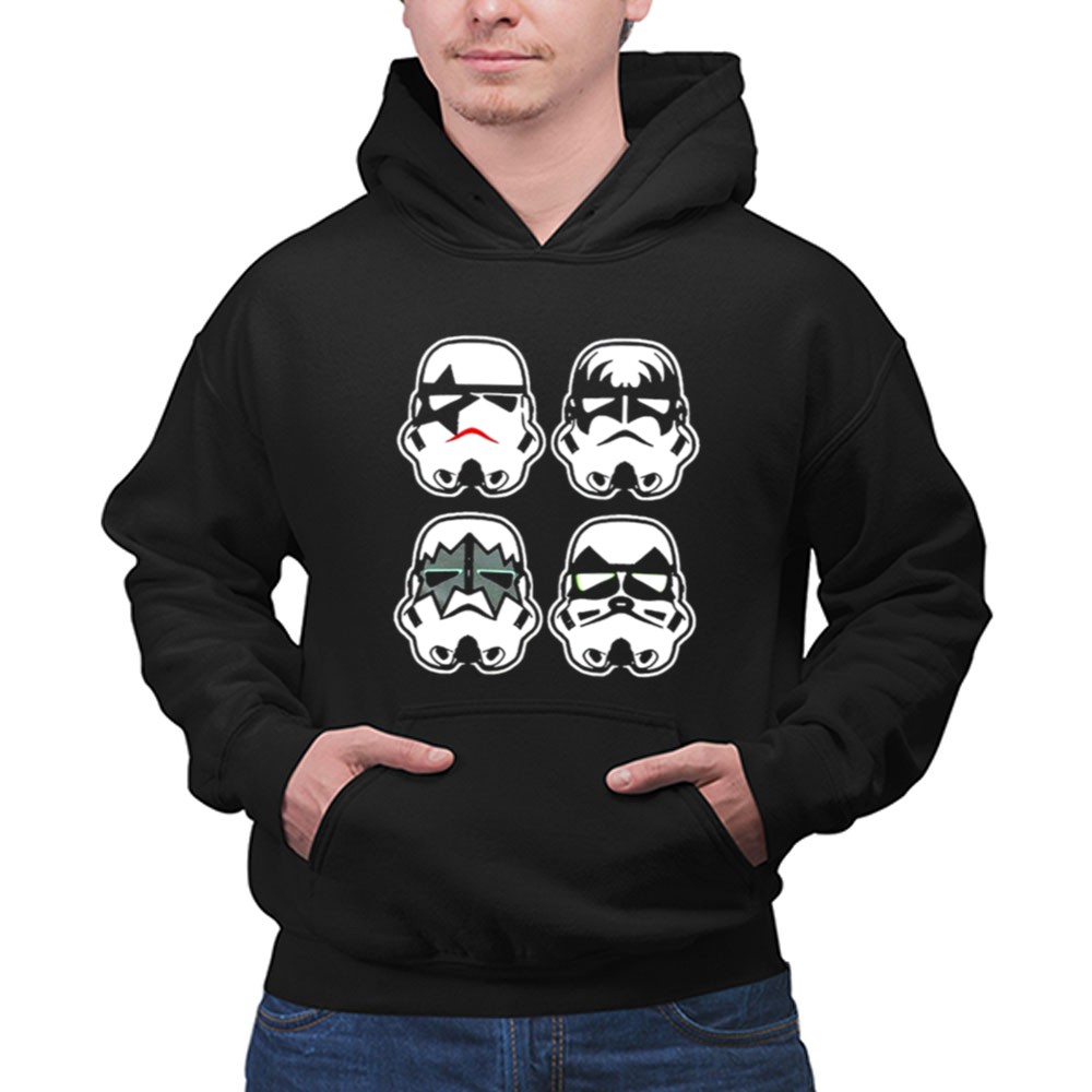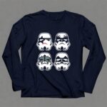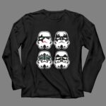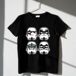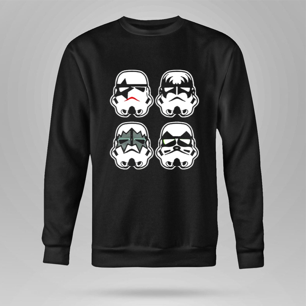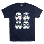 This design captures the essence of two beloved cultures, merging the iconic Stormtrooper faces with the bold style of the rock band Kiss. It speaks to a shared love of creativity and fun, inviting wearers to celebrate their fandoms with a humorous twist. Each element resonates with those who cherish the joy of mashups that reflect their unique identities.