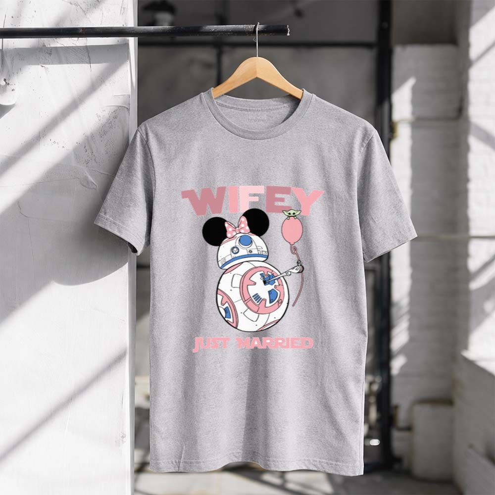 This enchanting design features R2D2 and Mickey Mouse ears joyfully holding a balloon, symbolizing the excitement of embarking on a new journey together. Infused with a whimsical spirit, it celebrates the magic of love and shared passions, making it a perfect keepsake for any couple who cherishes both pop culture and romance.