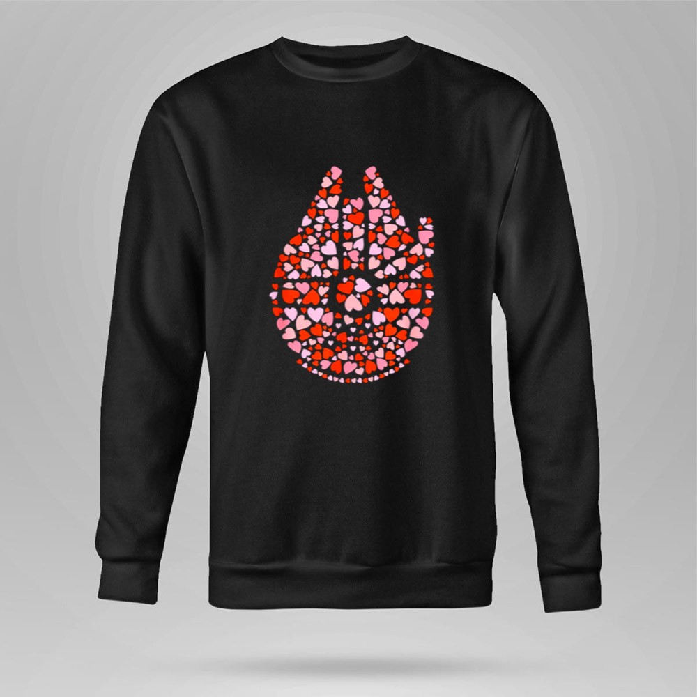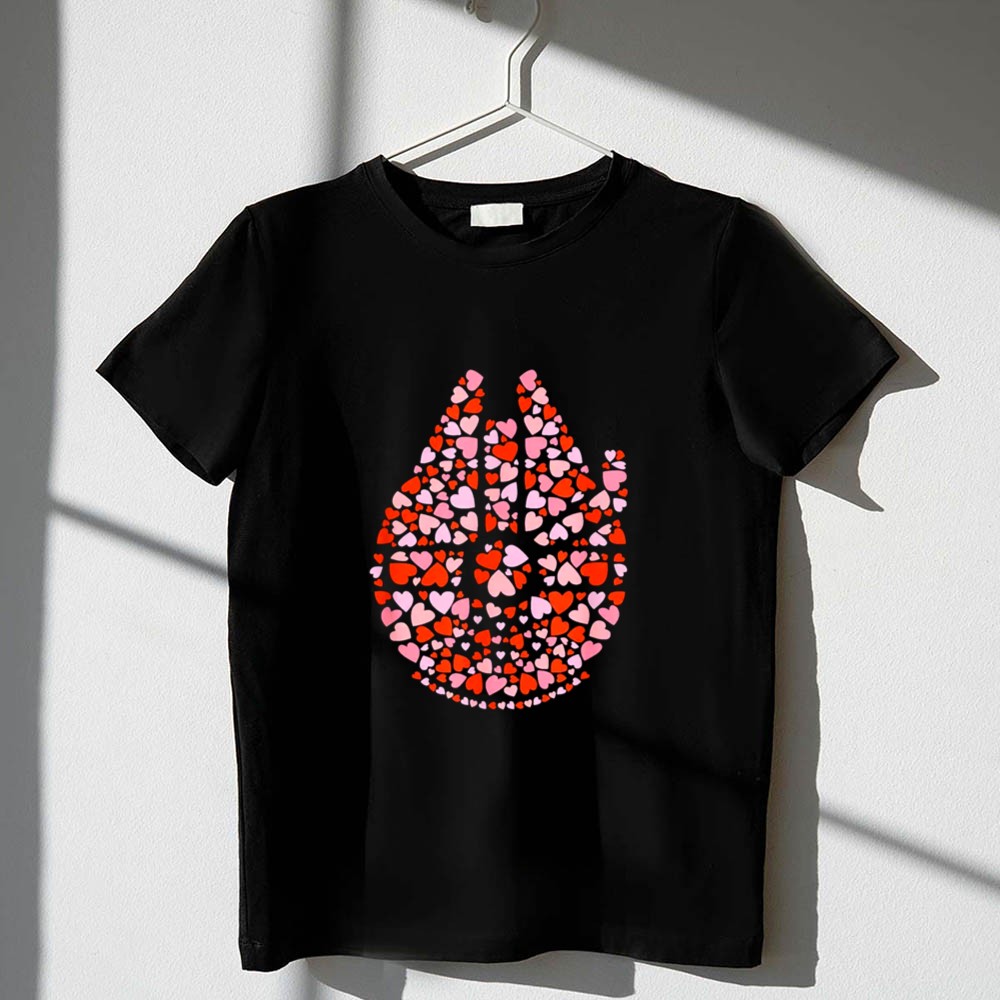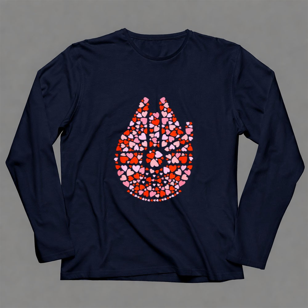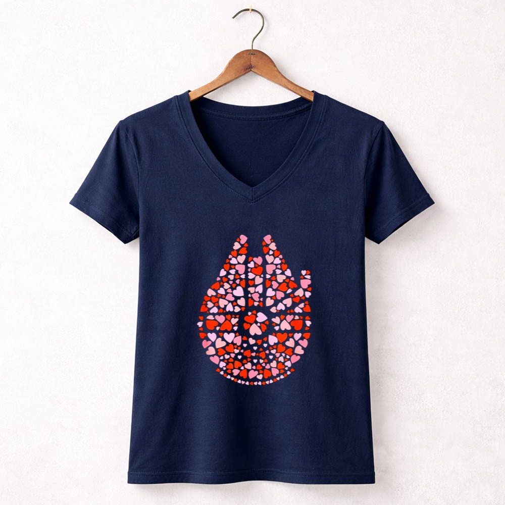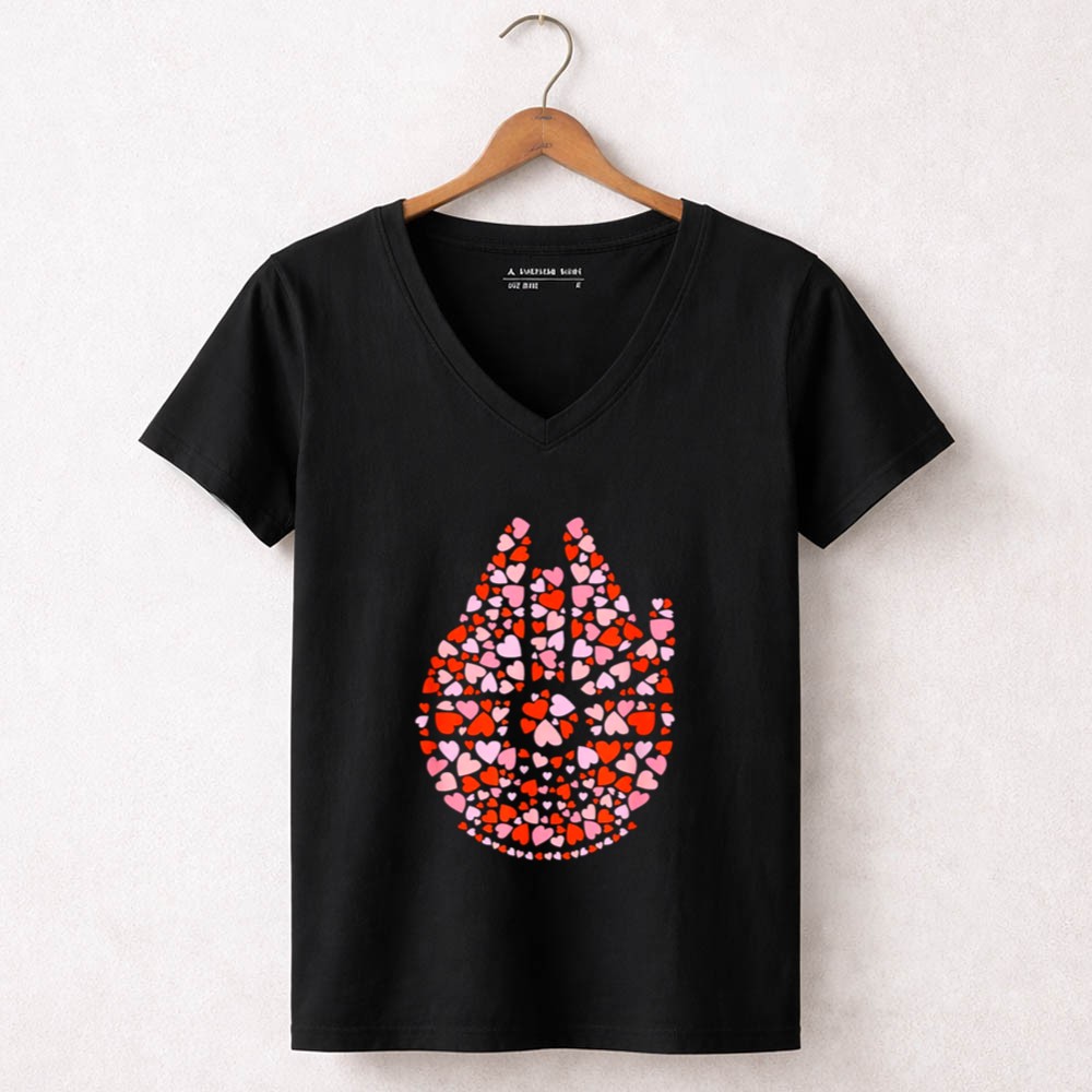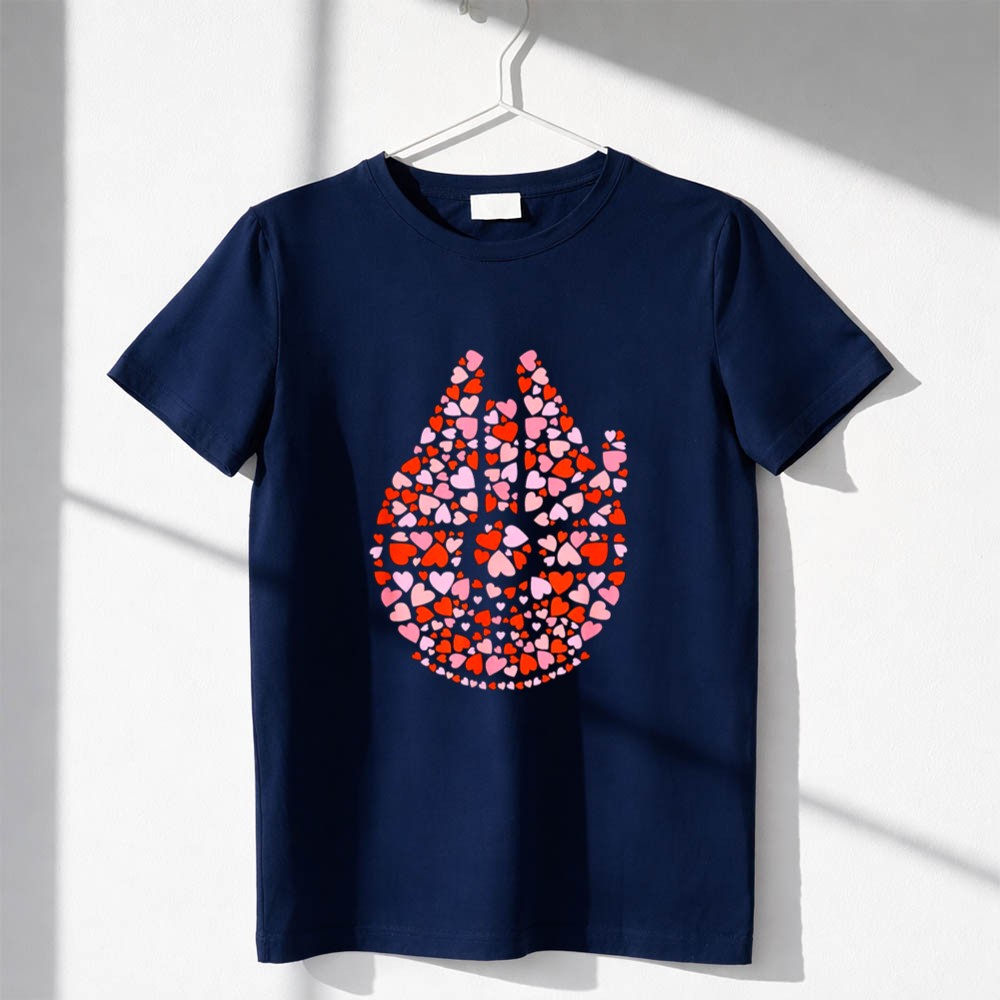 This playful design showcases the Millennium Falcon, filled with vibrant hearts in shades of red and pink, symbolizing the love shared by fans of the Star Wars saga. It captures the essence of romance intertwined with the excitement of galactic adventures, making it a heartfelt tribute to shared experiences in a universe filled with wonder and imagination.
