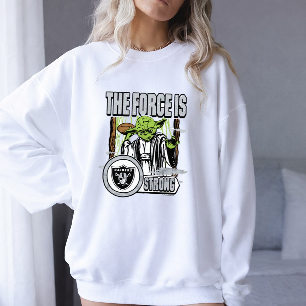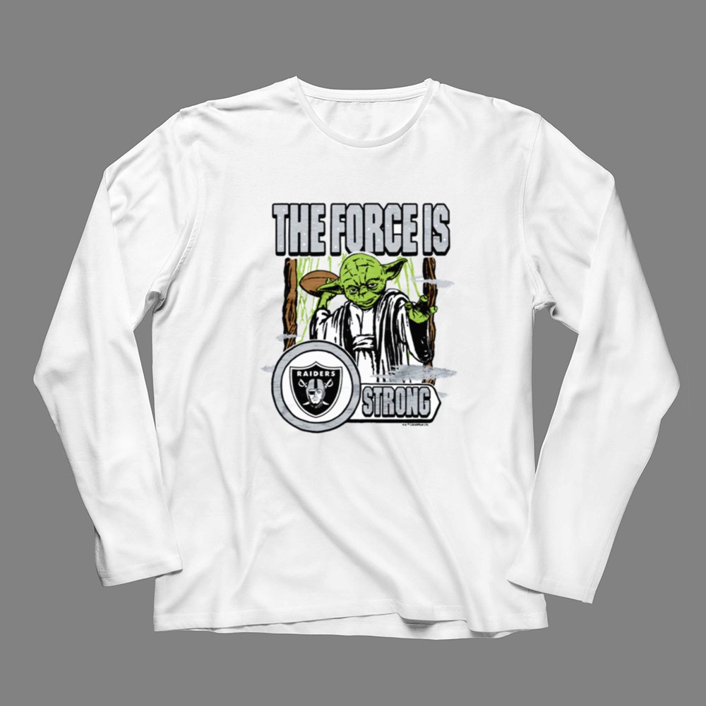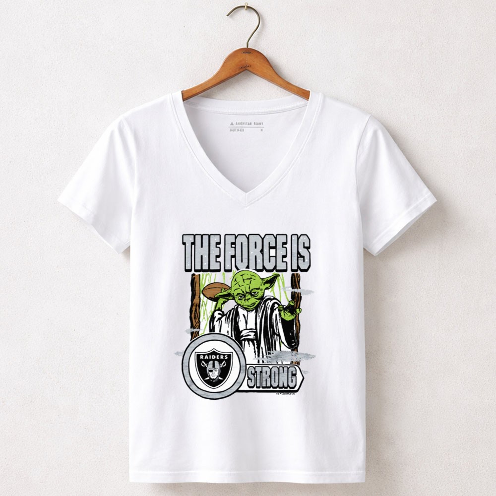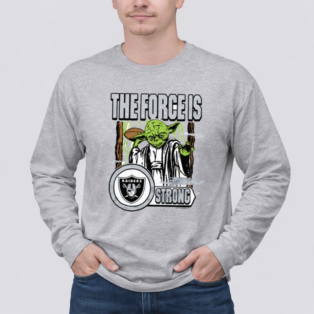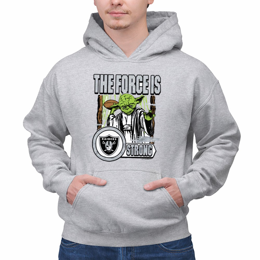 Las Vegas Raiders fans, Star Wars crossover, Yoda fan gear, Force is strong slogan, Raiders loyalty, premium graphic tee, pop culture apparel, sci-fi sports fusion