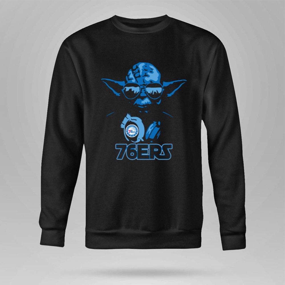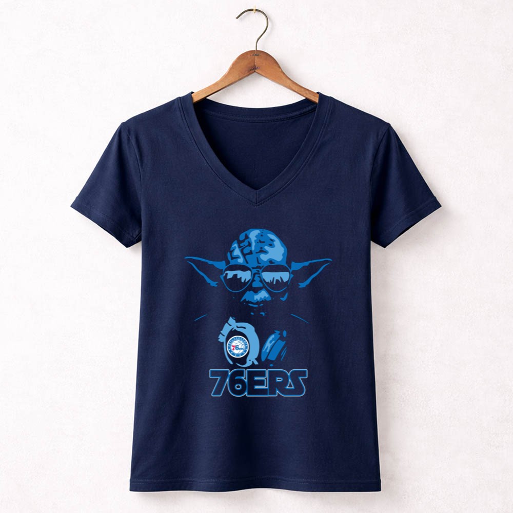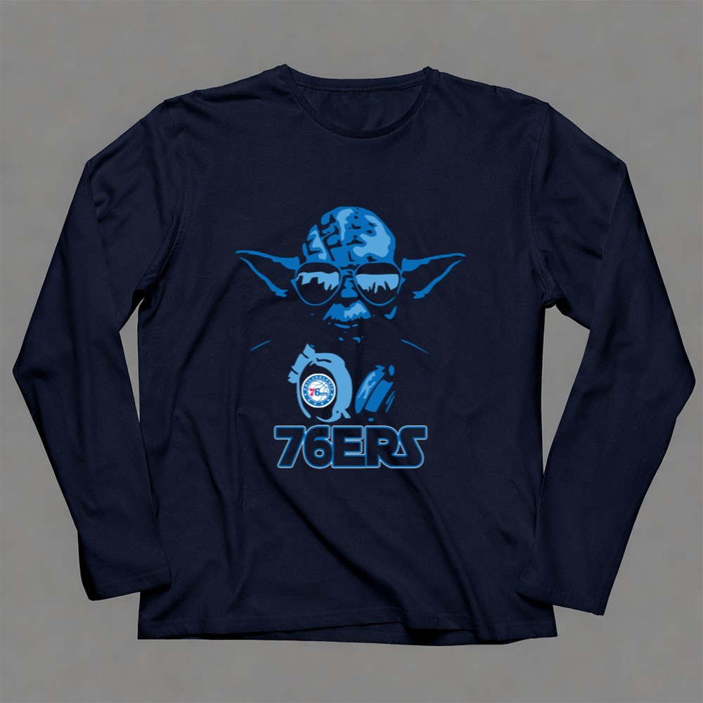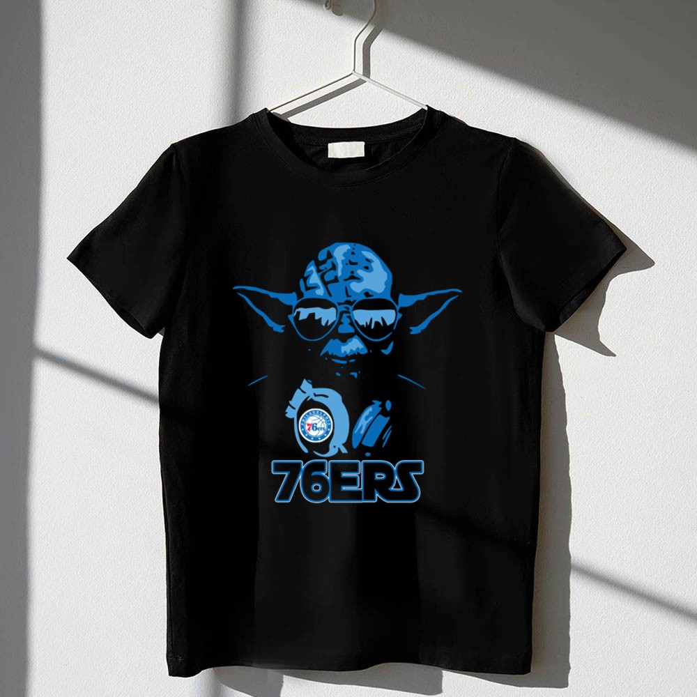 This design captures the essence of two beloved worlds, merging the wisdom of Yoda with the excitement of Sixers basketball. The playful imagery of Yoda in sunglasses flaunting the 76ers logo speaks to the joyful celebration of sports culture and fandom. It’s a unique tribute that evokes nostalgia while honoring city pride.