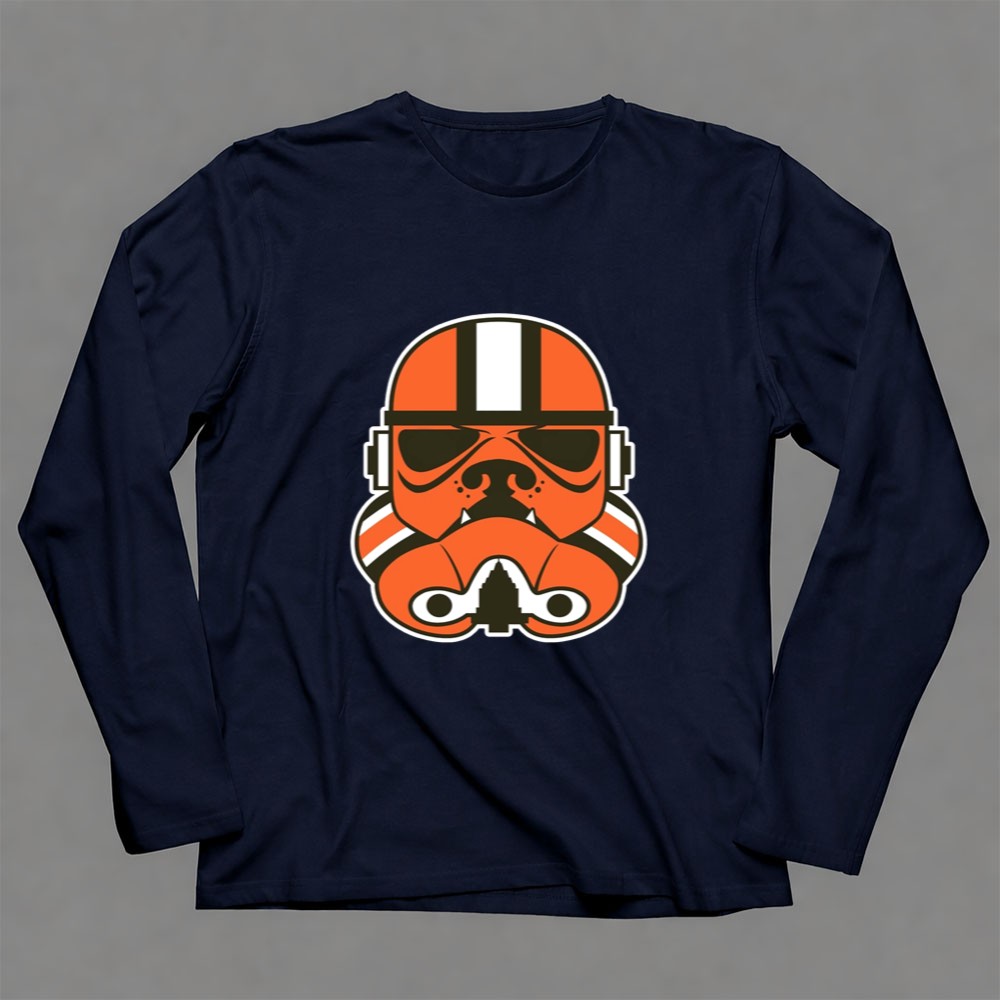 This design captures the essence of two passionate worlds, blending the iconic Stormtrooper helmet with the bold orange and white stripes of the Cleveland Browns. It celebrates the unique camaraderie found in sports and fandom, allowing fans to express their pride in a creative, minimalist way. This piece isn’t just apparel; it’s a statement of identity and love for the game.