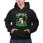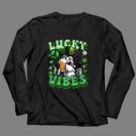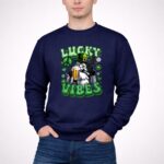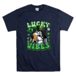 This design captures the joy of St. Patrick’s Day through the lens of pop culture, featuring a Stormtrooper donning a green leprechaun hat while raising a beer. The phrase ‘LUCKY VIBES’ alongside shamrock graphics embodies the spirit of celebration and connection, making it a unique expression of both luck and fandom. It’s a whimsical nod to the camaraderie found in both the Star Wars universe and festive gatherings.