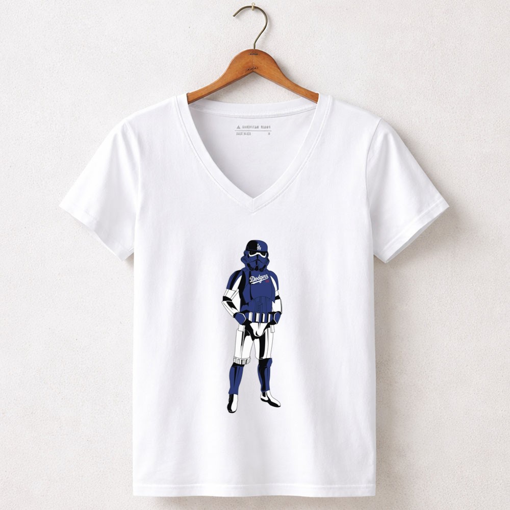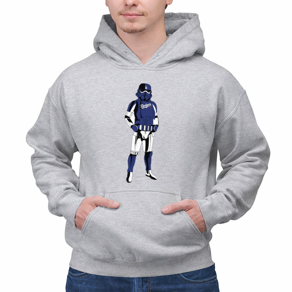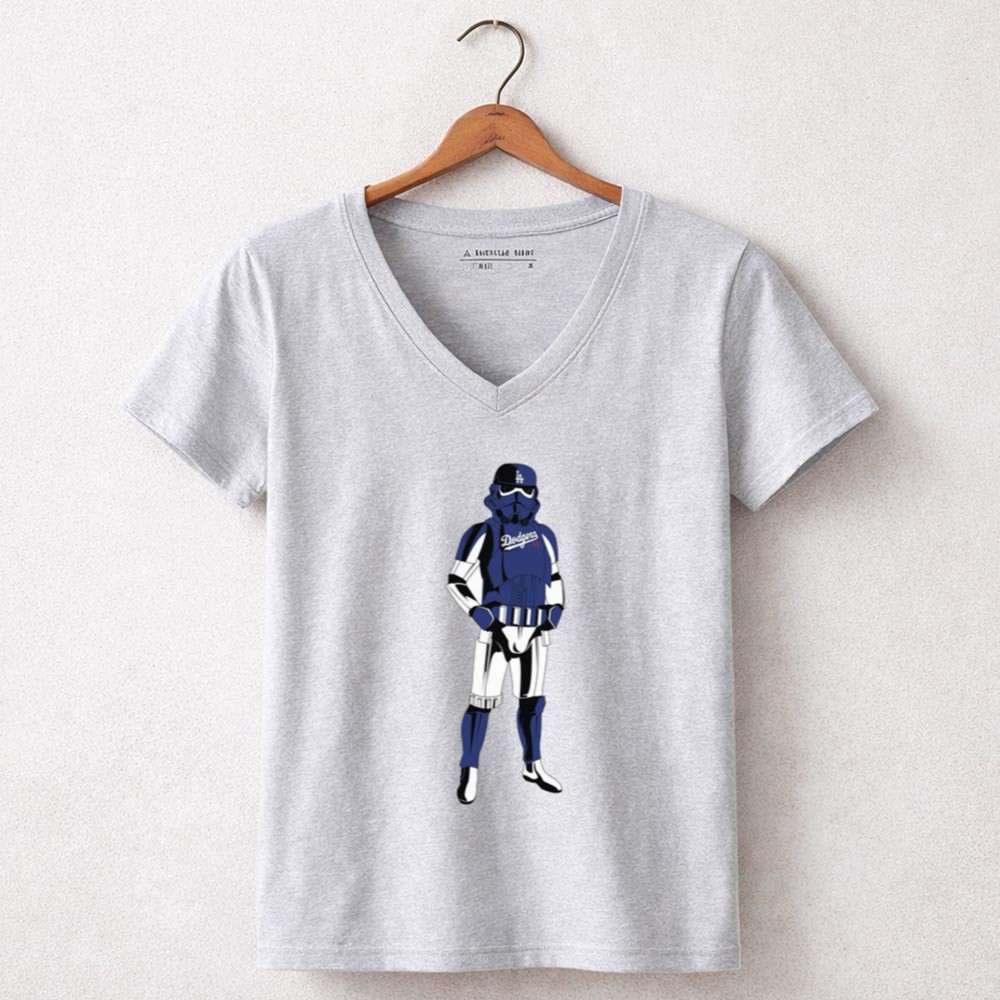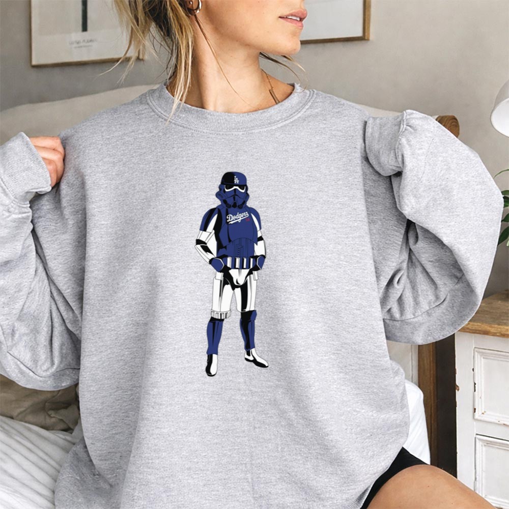 This design captures the essence of two iconic worlds collidingâimagine a Stormtrooper donning a blue Dodgers jersey and cap, symbolizing camaraderie among fans of baseball and the galaxy far, far away. Itâs a joyful tribute that evokes nostalgia while celebrating the shared spirit of sports and sci-fi culture.