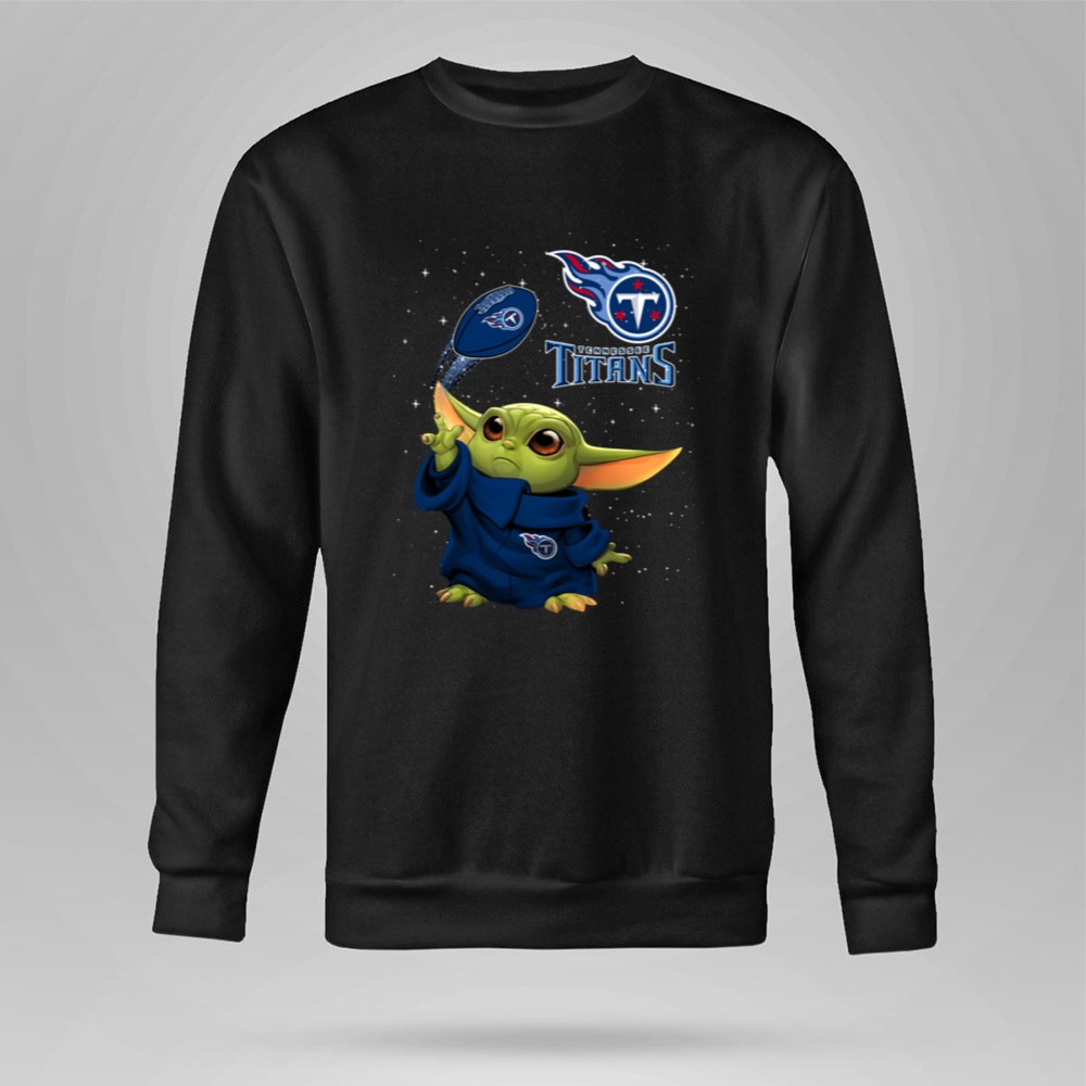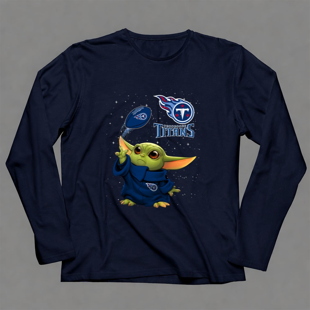 Celebrate your little one's team spirit with Baby Yoda in vibrant Tennessee Titans gear.