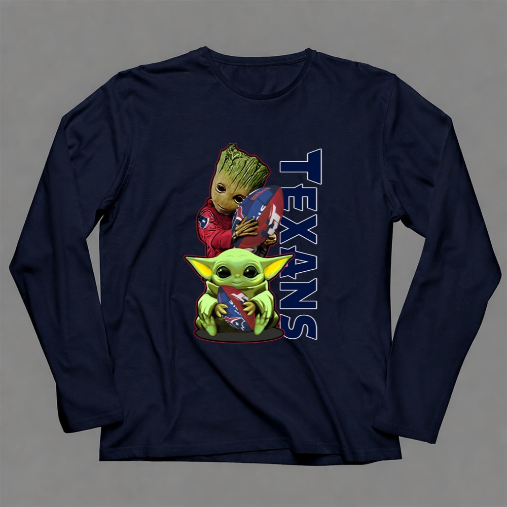 This whimsical design captures the essence of Houston sports culture by merging the playful energy of Groot and Baby Yoda with the passion of NFL fandom. It’s not just a shirt; it’s a celebration of family and fun that inspires young fans to embrace the joy of football, making every game day a delightful experience.