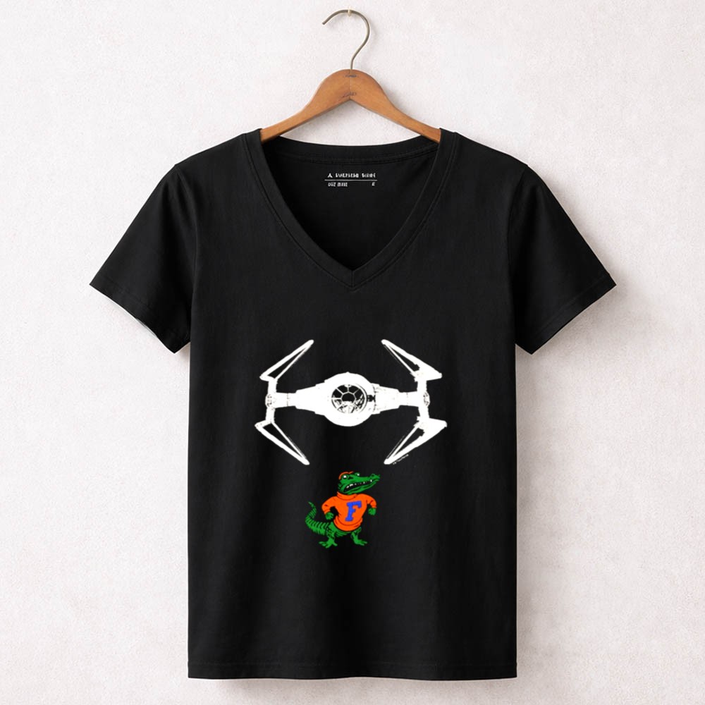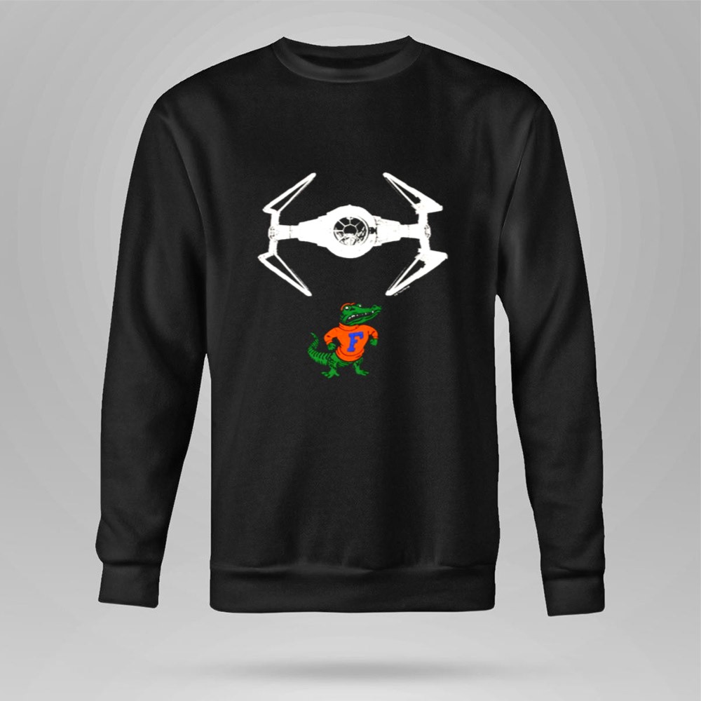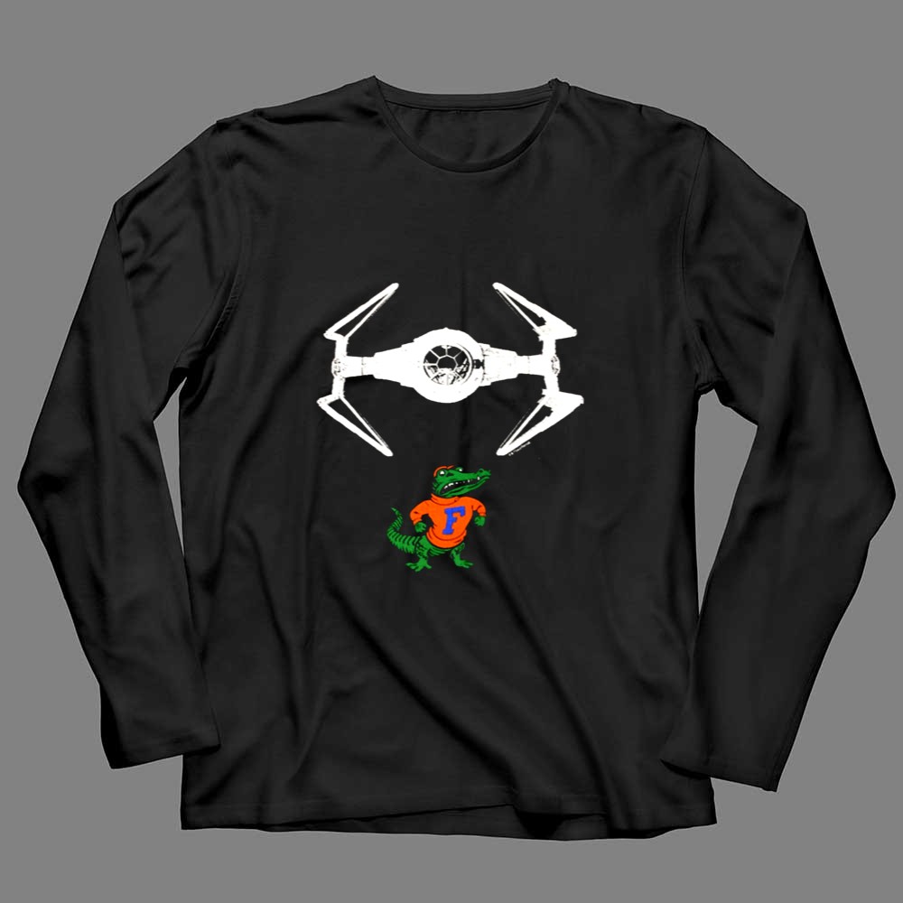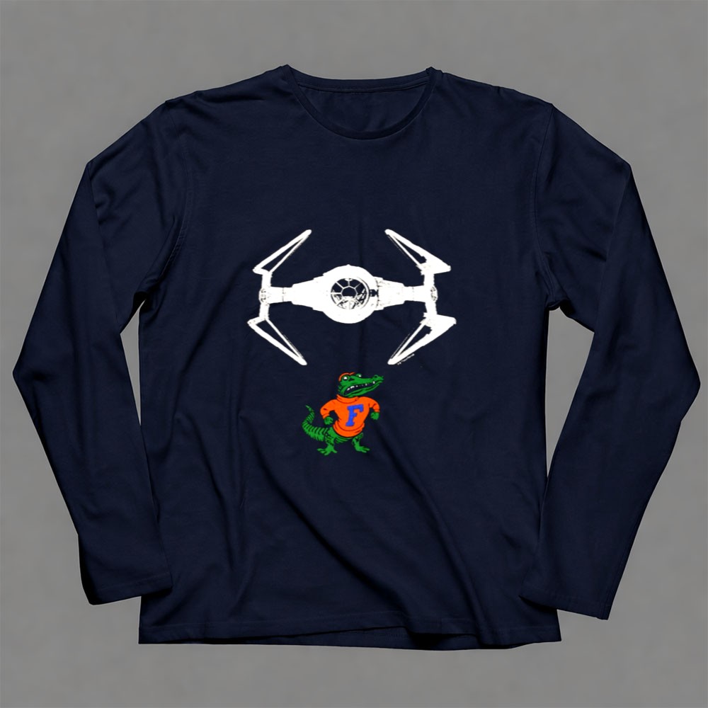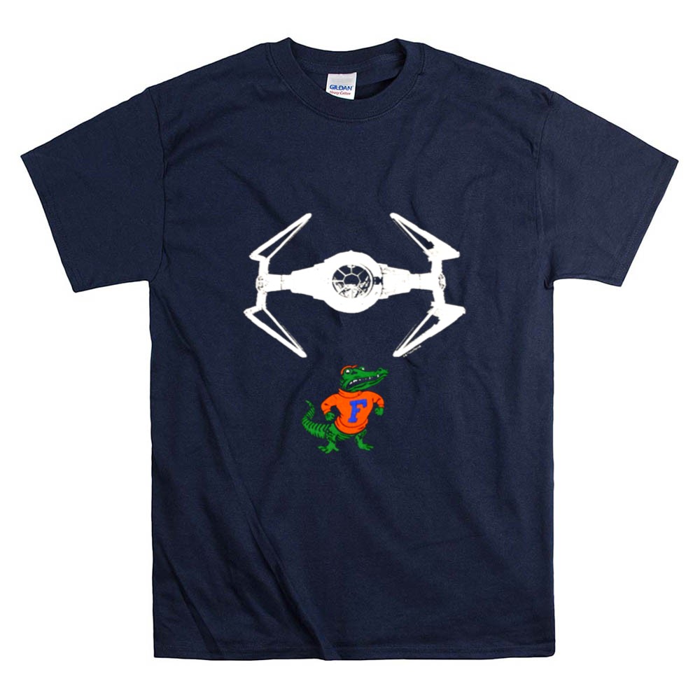 This design embodies the spirit of Gainesville sports culture while paying homage to the legendary Darth Vader. The colorful illustration captures the Gator mascot proudly flying beneath a TIE fighter, merging the realms of college pride and sci-fi fantasy. It celebrates the playful essence of college life, inviting fans to revel in their dual passions.