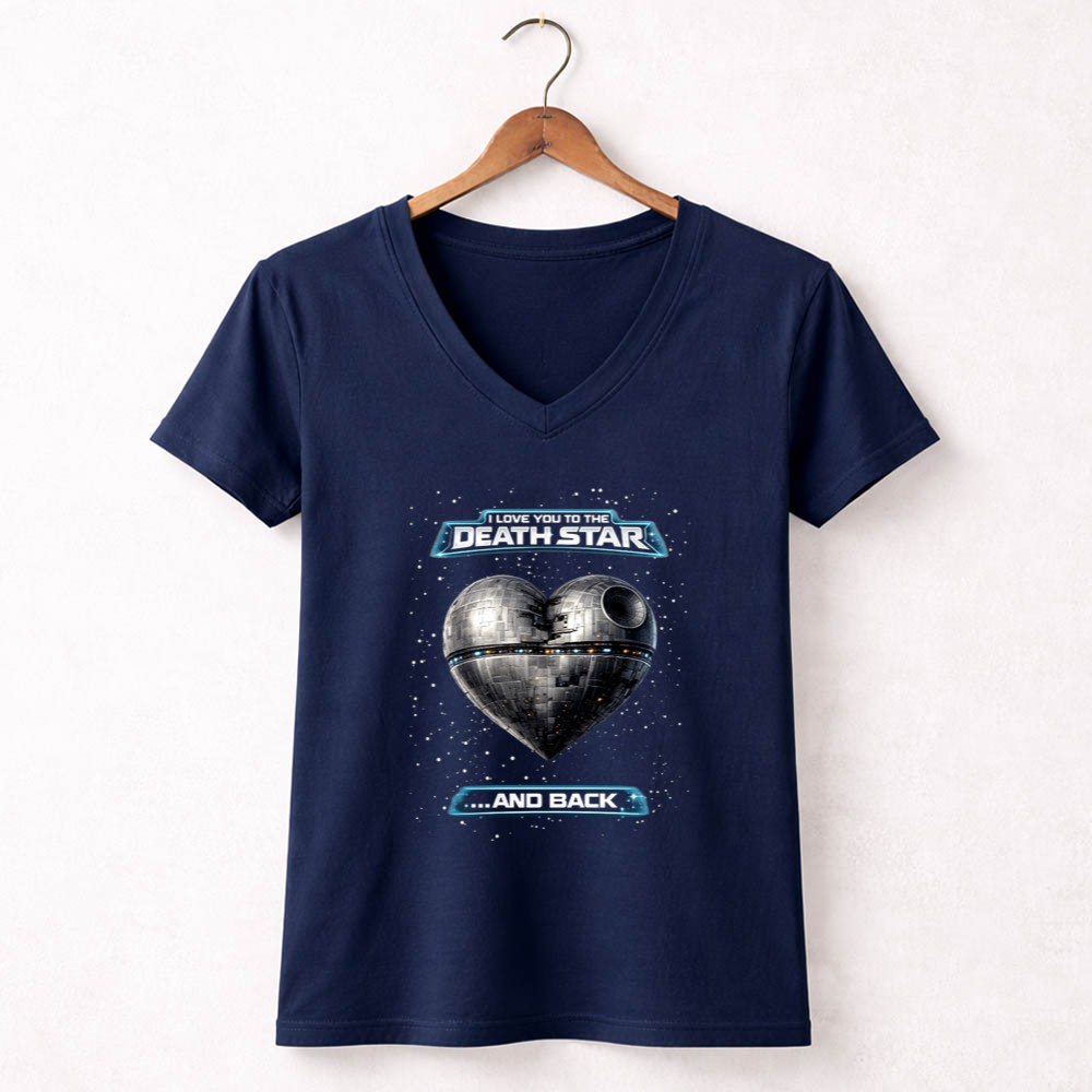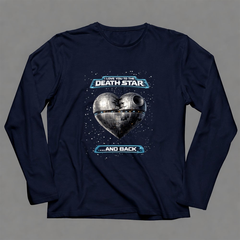Inspired by the timeless bond of love and adventure, this design features the whimsical quote, ‘I LOVE YOU TO THE DEATH STAR and back.’ The minimalist aesthetic, combined with a navy blue vibe, evokes a sense of romantic nostalgia for sci-fi lovers. This piece encapsulates the spirit of exploring love in a galaxy far, far away, blending humor with heartfelt sentiment.