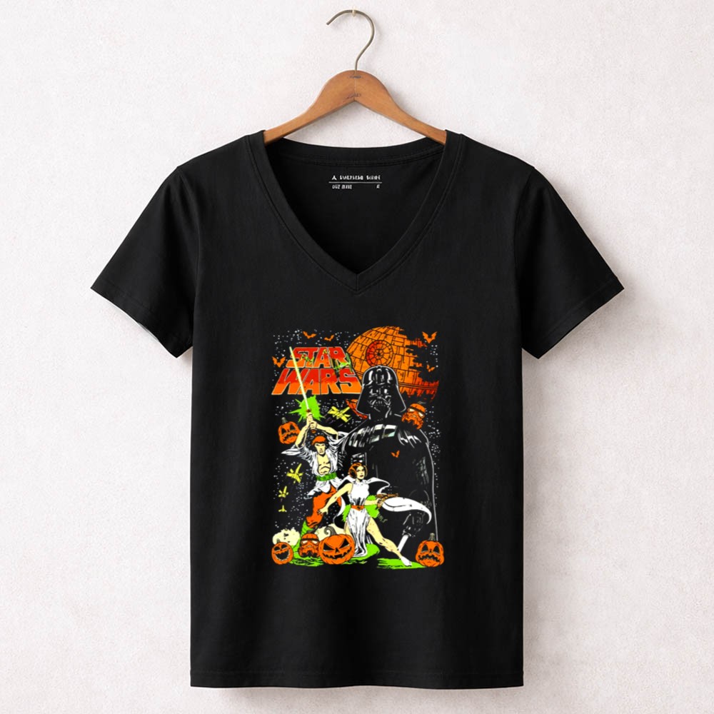 Vintage Star Wars Halloween Leia Han Solo Darth Vader Pumpkin Shirt