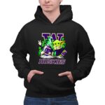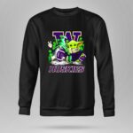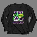 This vibrant design captures the fun spirit of St. Patrick’s Day, featuring the iconic Washington Huskies logo alongside a cheerful gnome and Baby Yoda, both ready for game day. Surrounded by shamrocks, this playful mashup embodies the joy of celebrating sports and holidays together, inviting fans to embrace camaraderie and fun in every moment.
