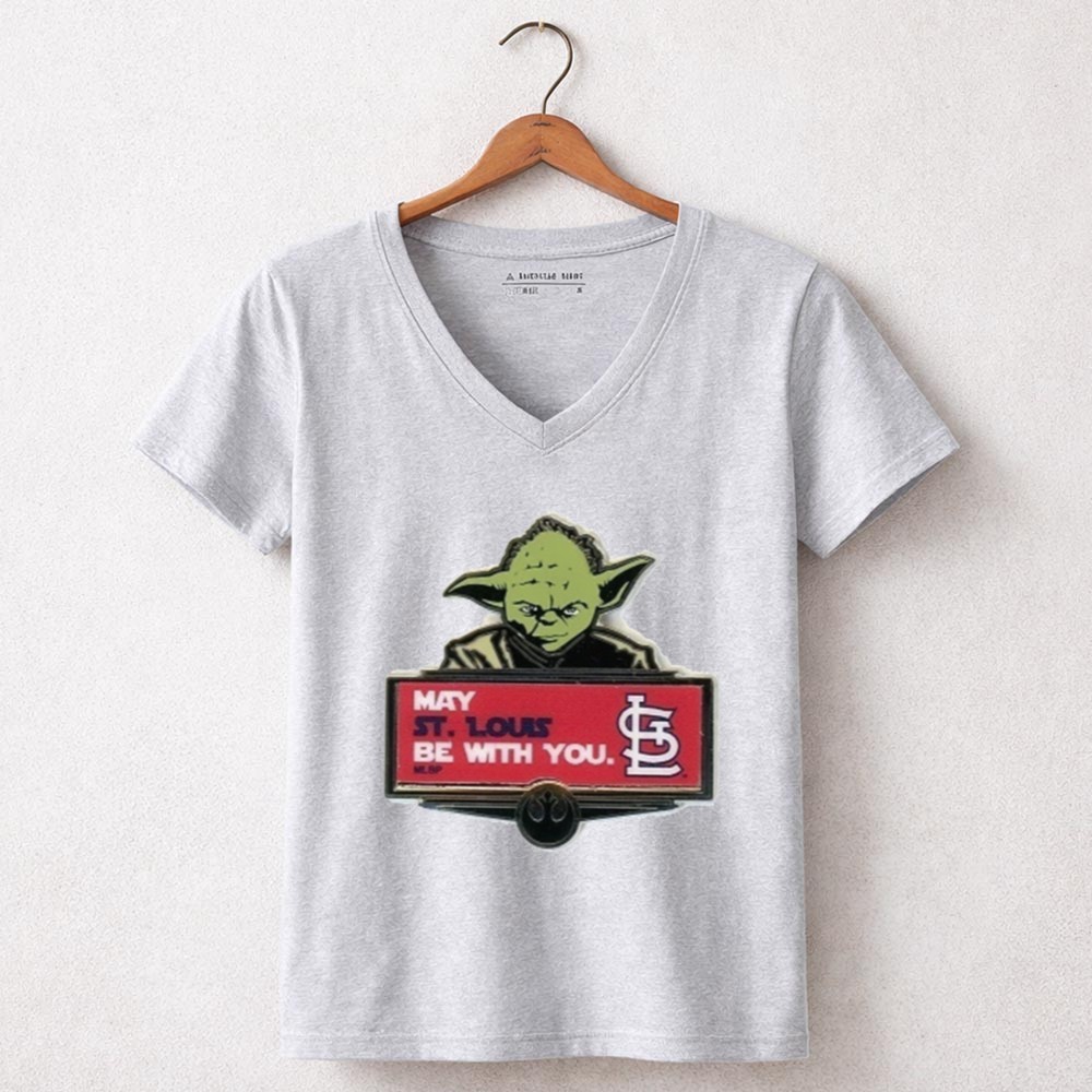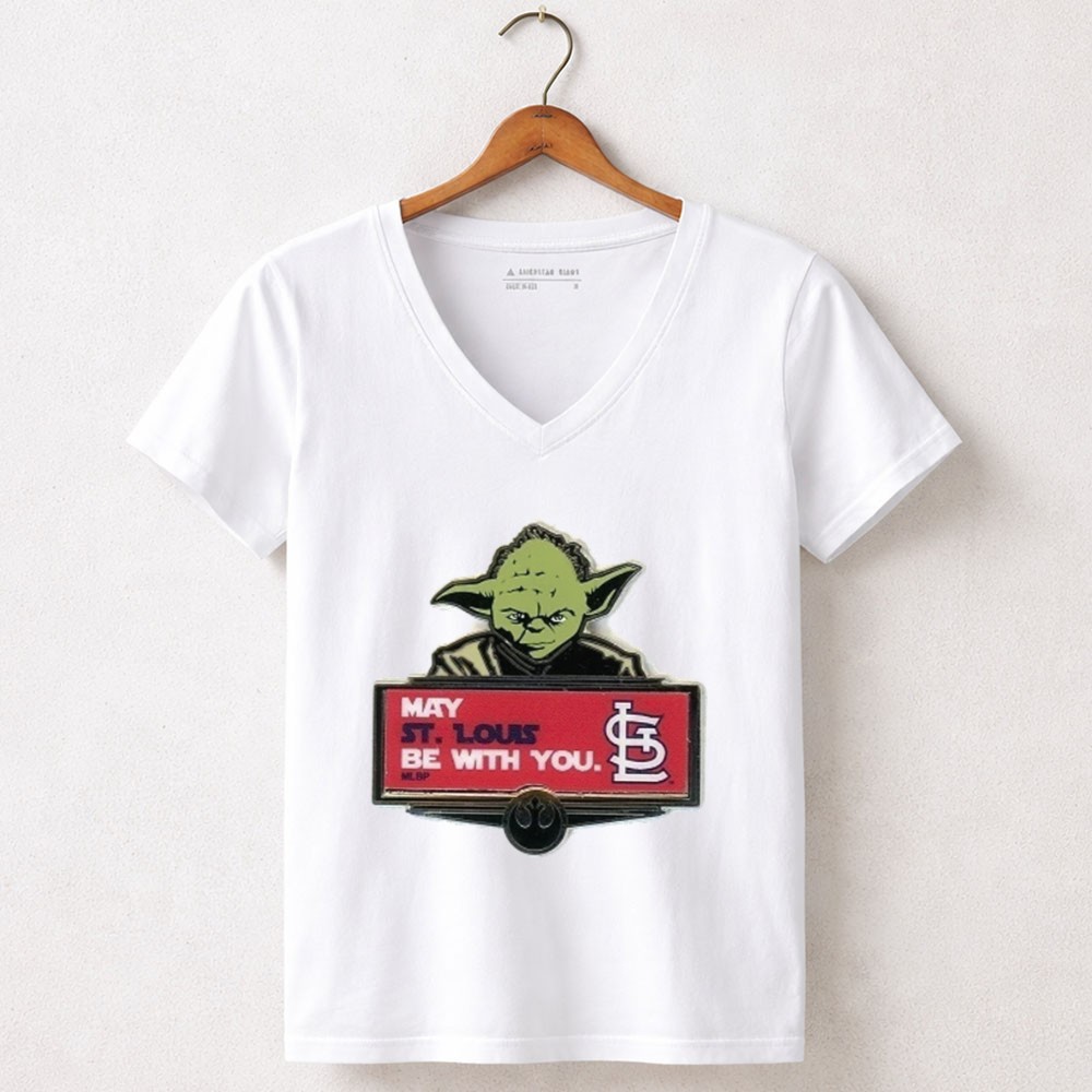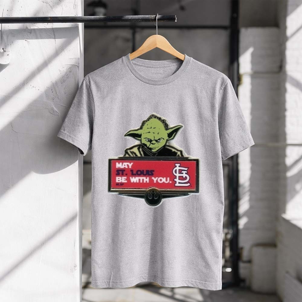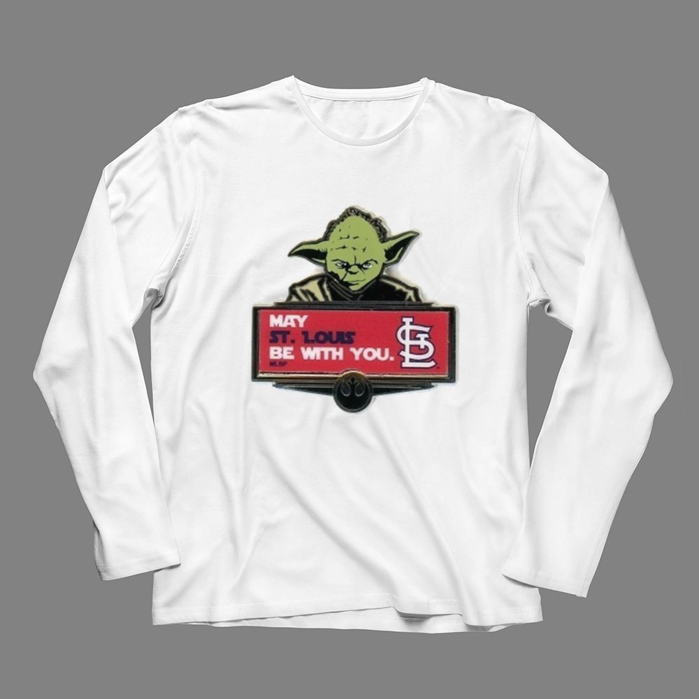 This design captures the spirit of camaraderie among St. Louis Cardinals fans, merging the iconic phrase ‘May the Force be with you’ with the beloved Yoda character. It serves as a lighthearted tribute to both baseball and the Star Wars saga, allowing fans to express their pride in a fun and minimalist way.