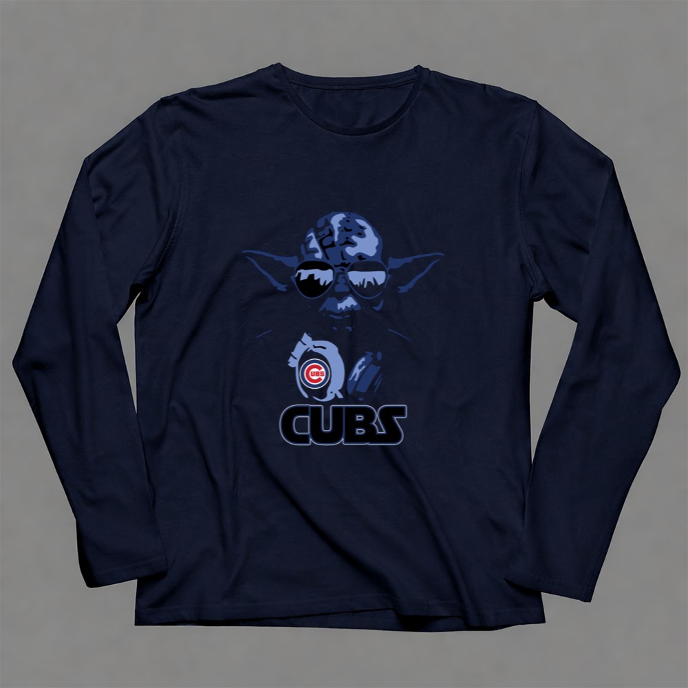 This design brings together the worlds of baseball and fantasy, showcasing Yoda in a playful, cartoon mashup that resonates with both Cubs fans and Star Wars aficionados. The image of Yoda wearing sunglasses, proudly holding the Cubs logo, symbolizes a joyful celebration of legacies and shared passions. It’s not just about fandom; it’s about the connection and pride that comes with being part of Chicago’s vibrant sports culture.