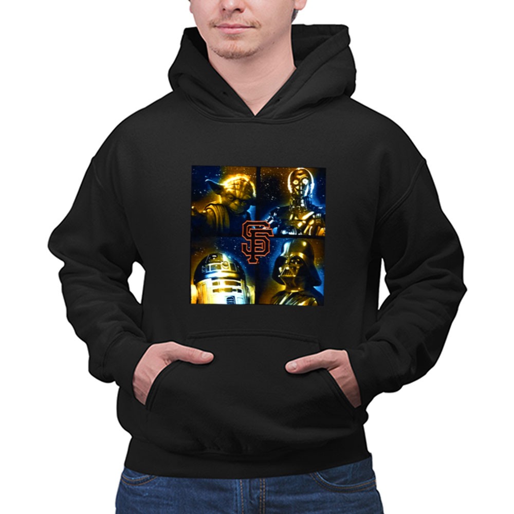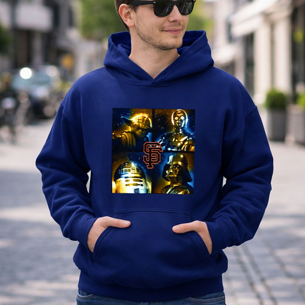 This design captures the fun spirit of two legendary worlds, merging the San Francisco Giants’ pride with the timeless allure of Star Wars. Featuring beloved characters like Yoda, Darth Vader, R2-D2, and C-3PO against a cosmic backdrop, it embodies a sense of unity and celebration for fans. It’s a playful tribute to game day excitement and the shared joy of fandom.