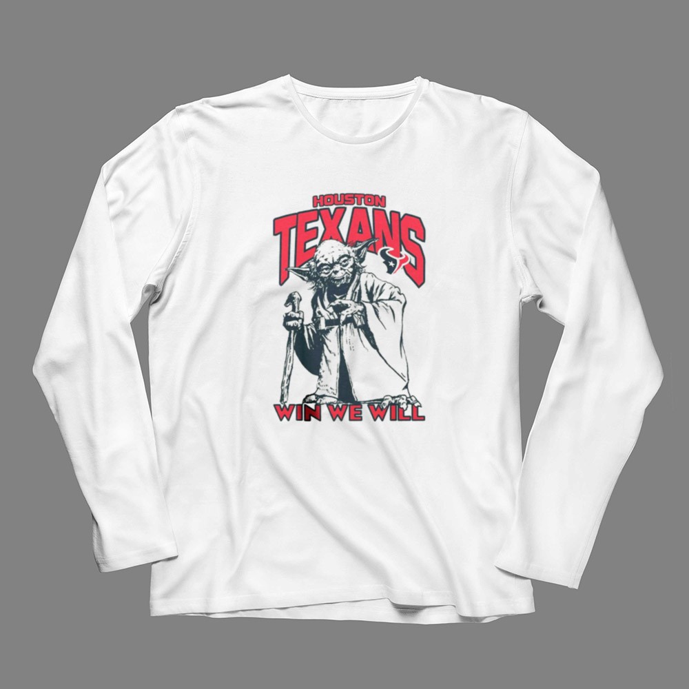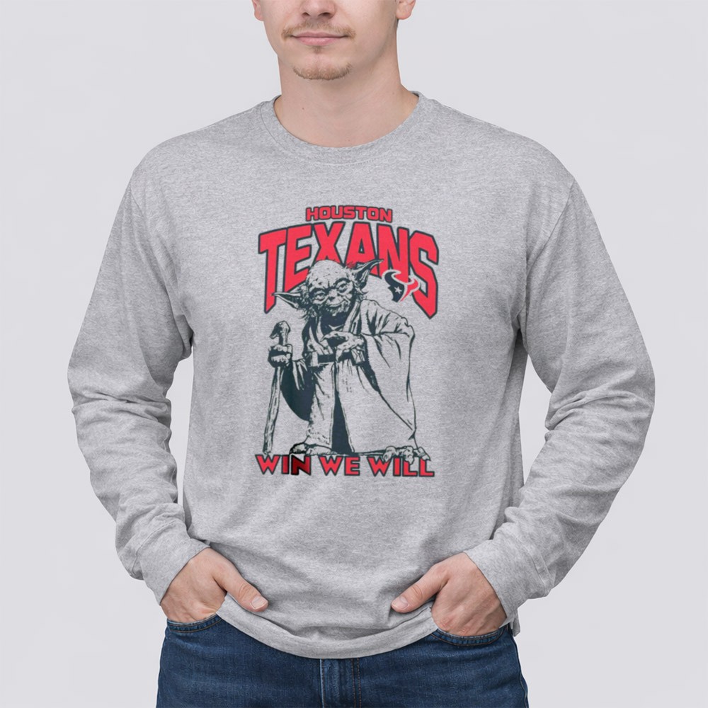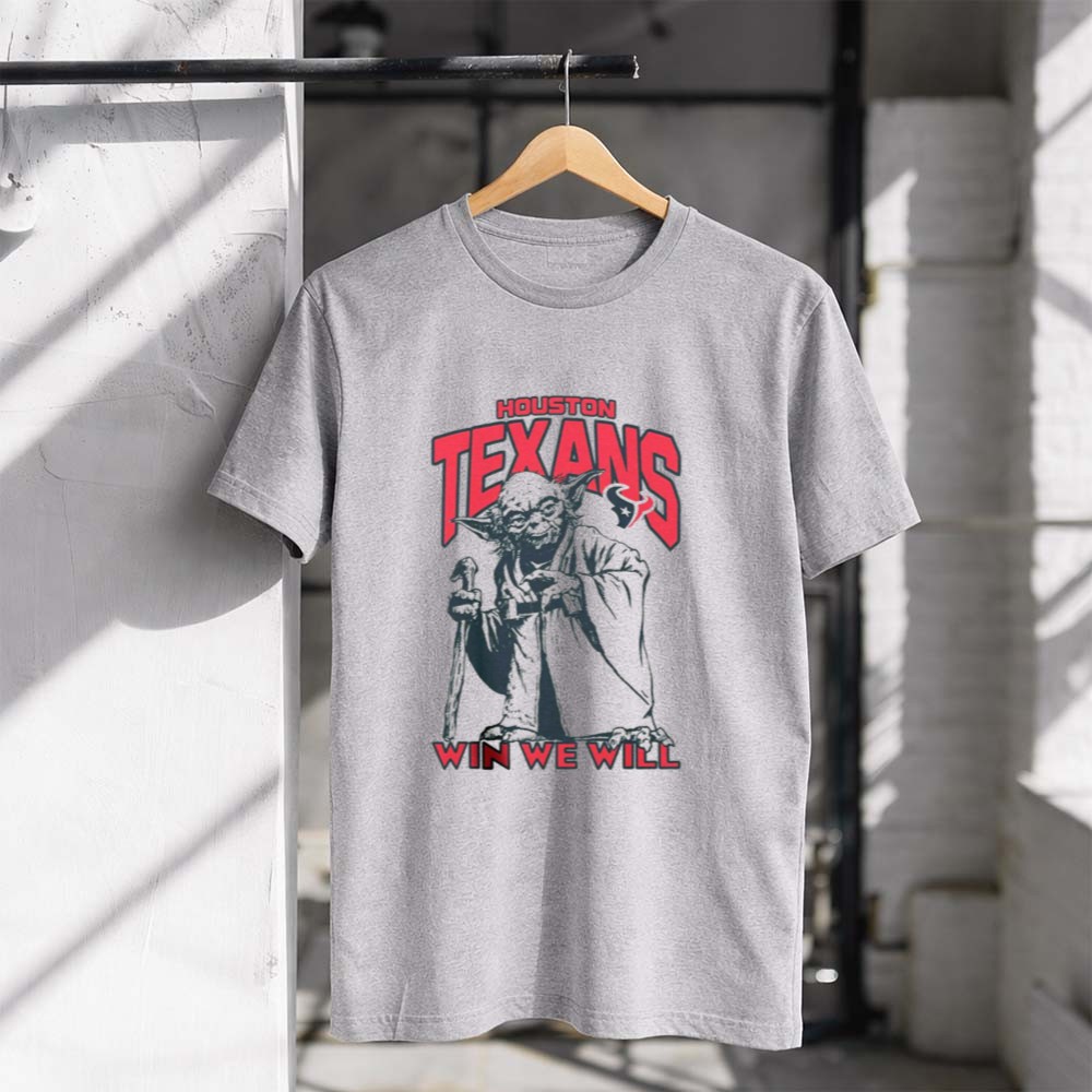 This design honors the enduring spirit of both the Houston Texans and the Star Wars universe. Featuring Yoda, the emblem of hope and determination, it invites fans to channel that Jedi spirit on game days. The bold typography and sporty graphic design reflect the passion of Texas football culture, creating a nostalgic connection for all supporters.
