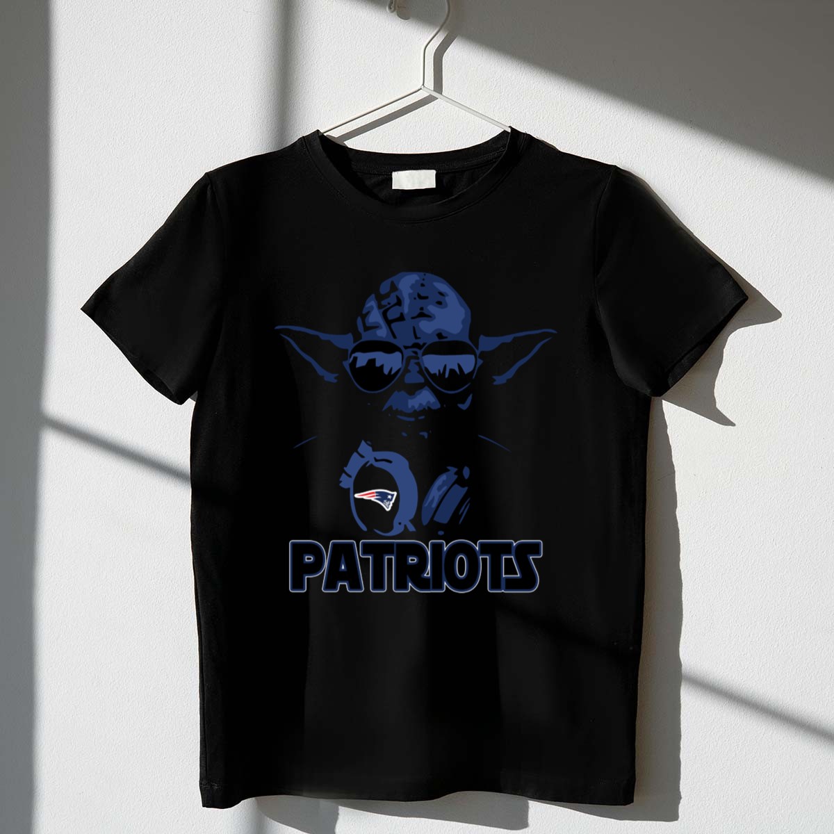 New England Patriots fandom, Yoda Star Wars crossover, game day t-shirt, pop culture sports apparel, Boston sports pride, premium cotton tee, Jedi fan gear, iconic team spirit